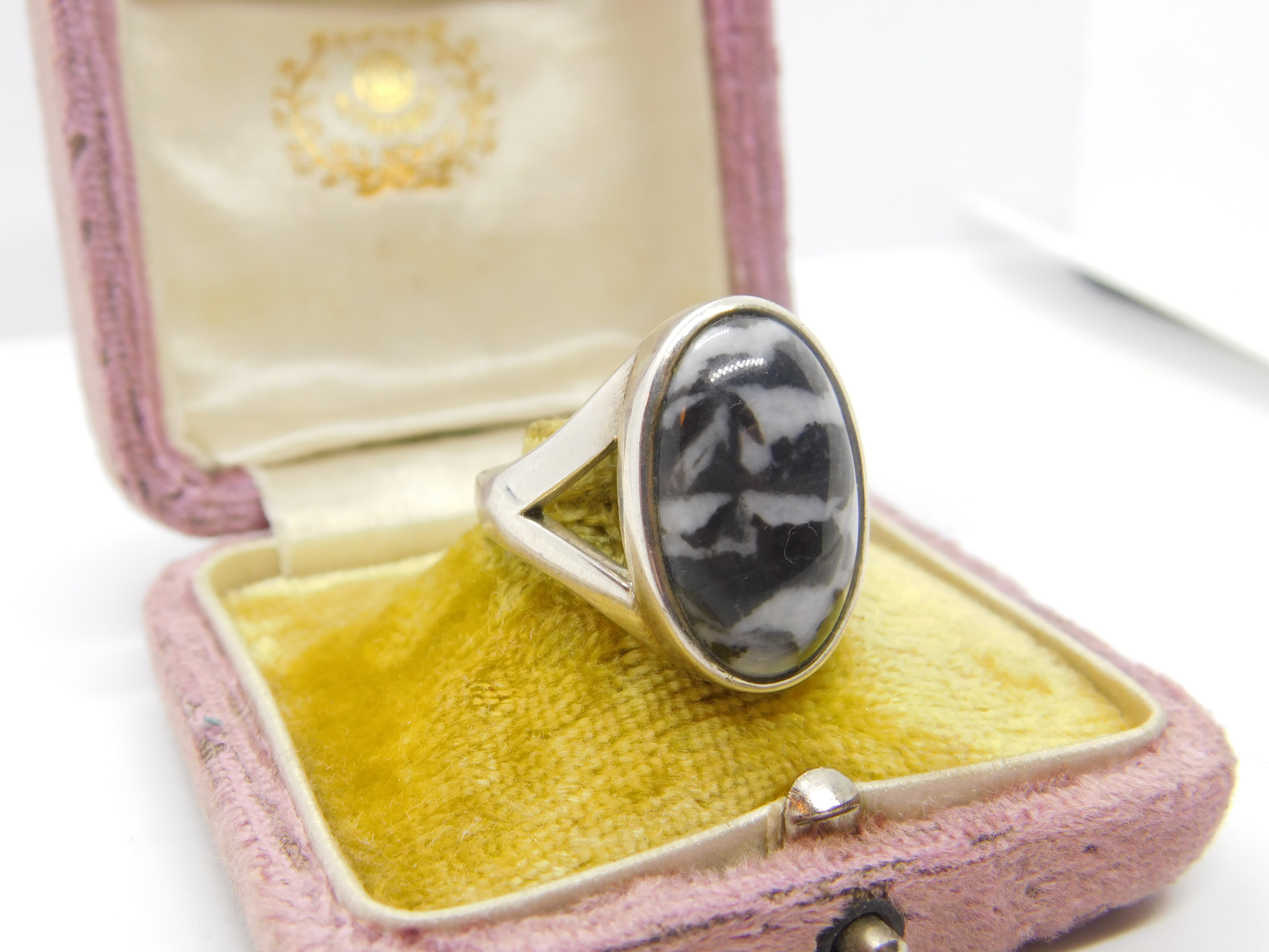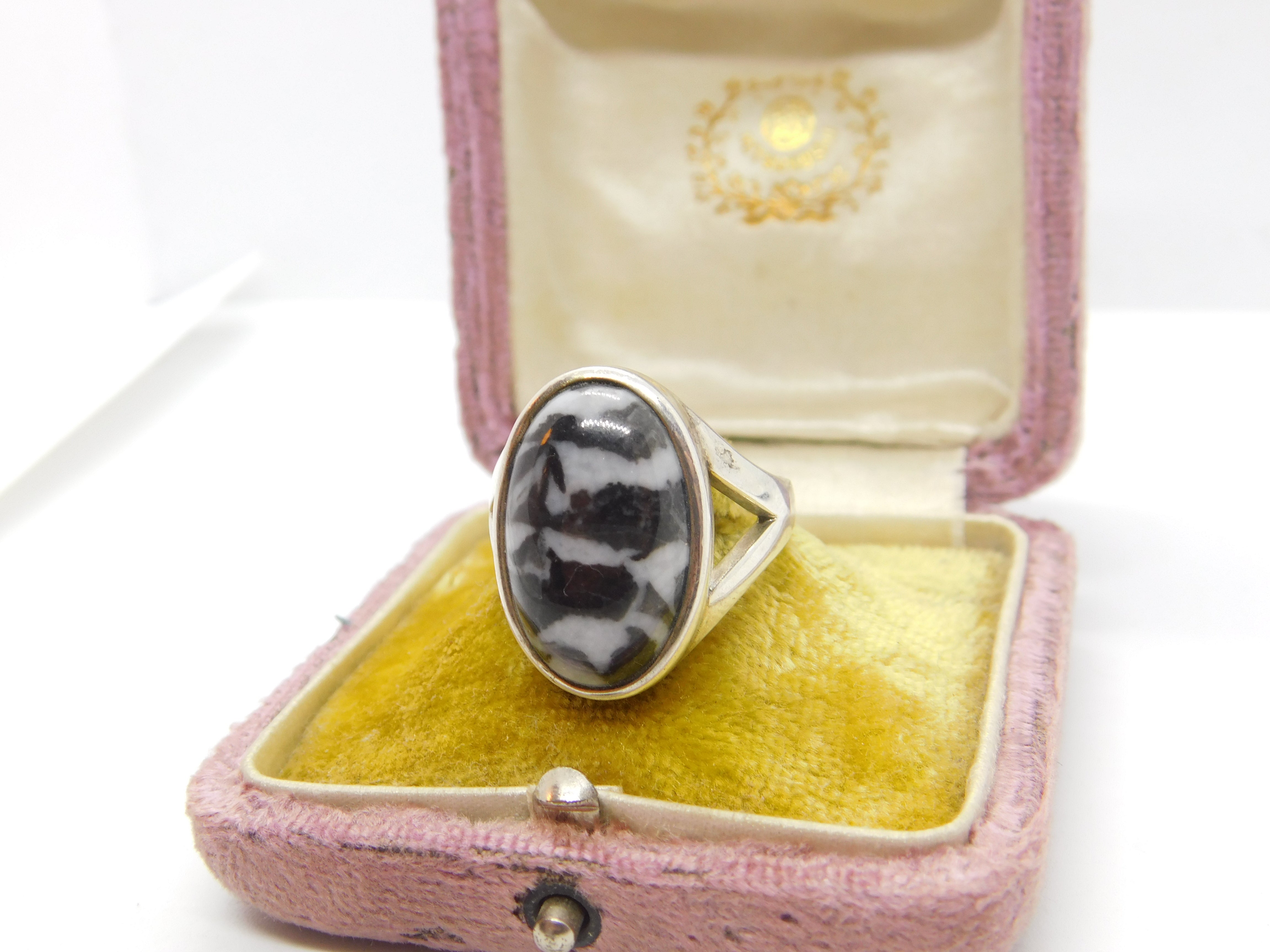 Sterling Silver & Cabochon Zebra Marble Signet Ring Vintage 2007 Birmingham