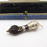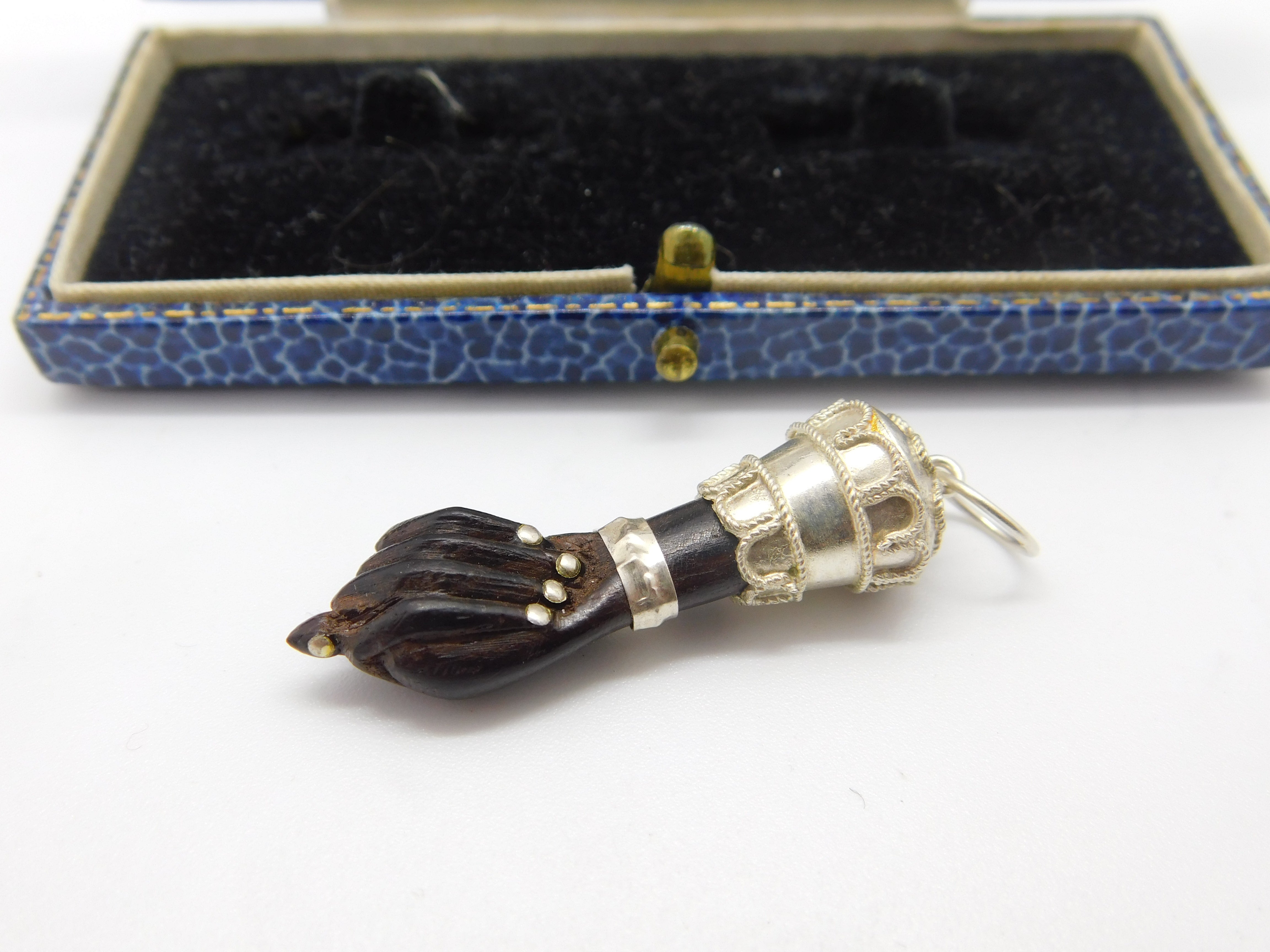 Sterling Silver & Carved Ebony Wood 'Figa' Hand Pendant Antique c1920 Deco