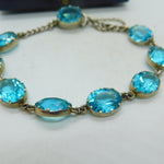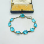 Sterling Silver & Faceted Blue Zircon Bracelet Antique c1920 Art Deco