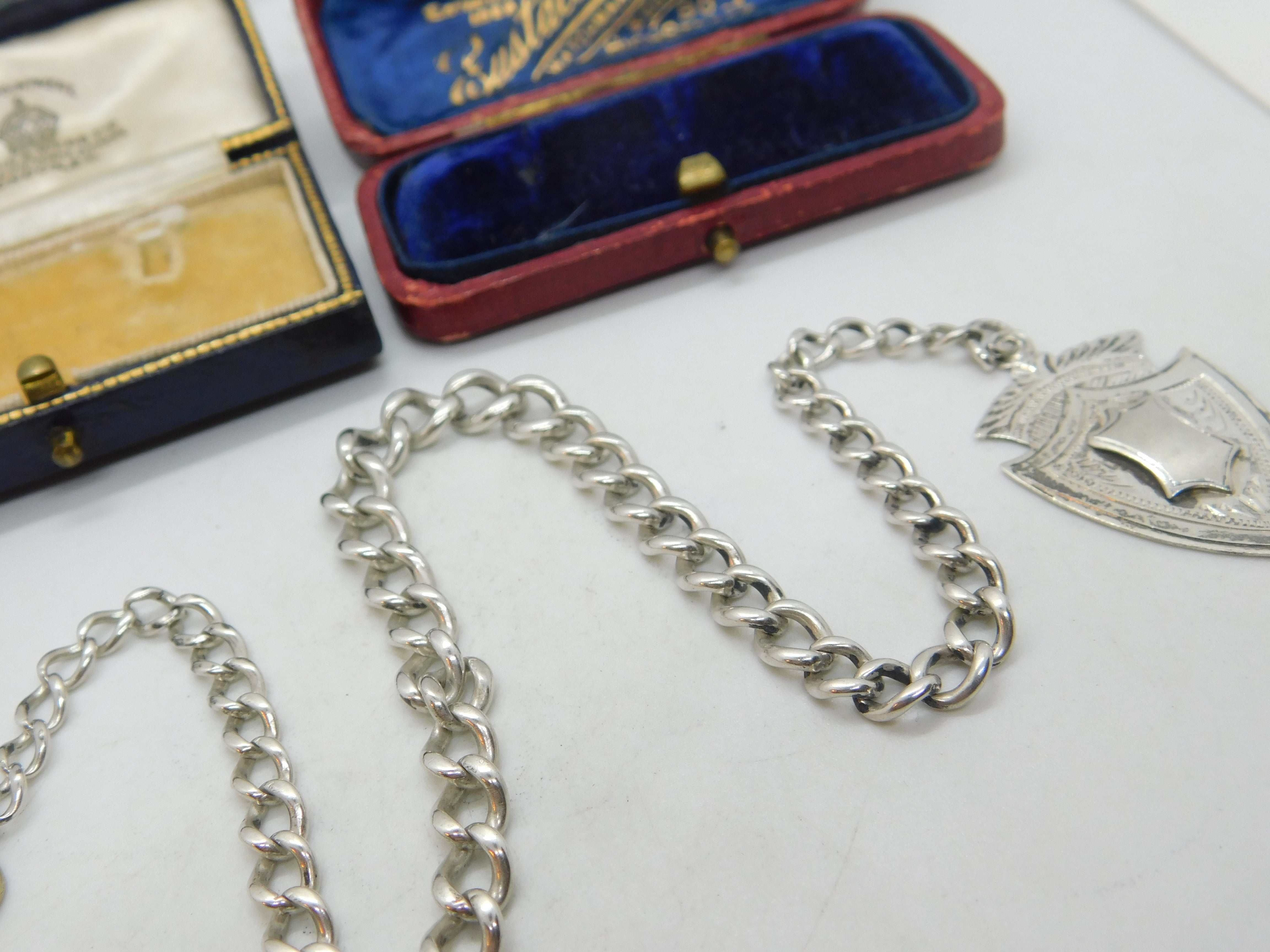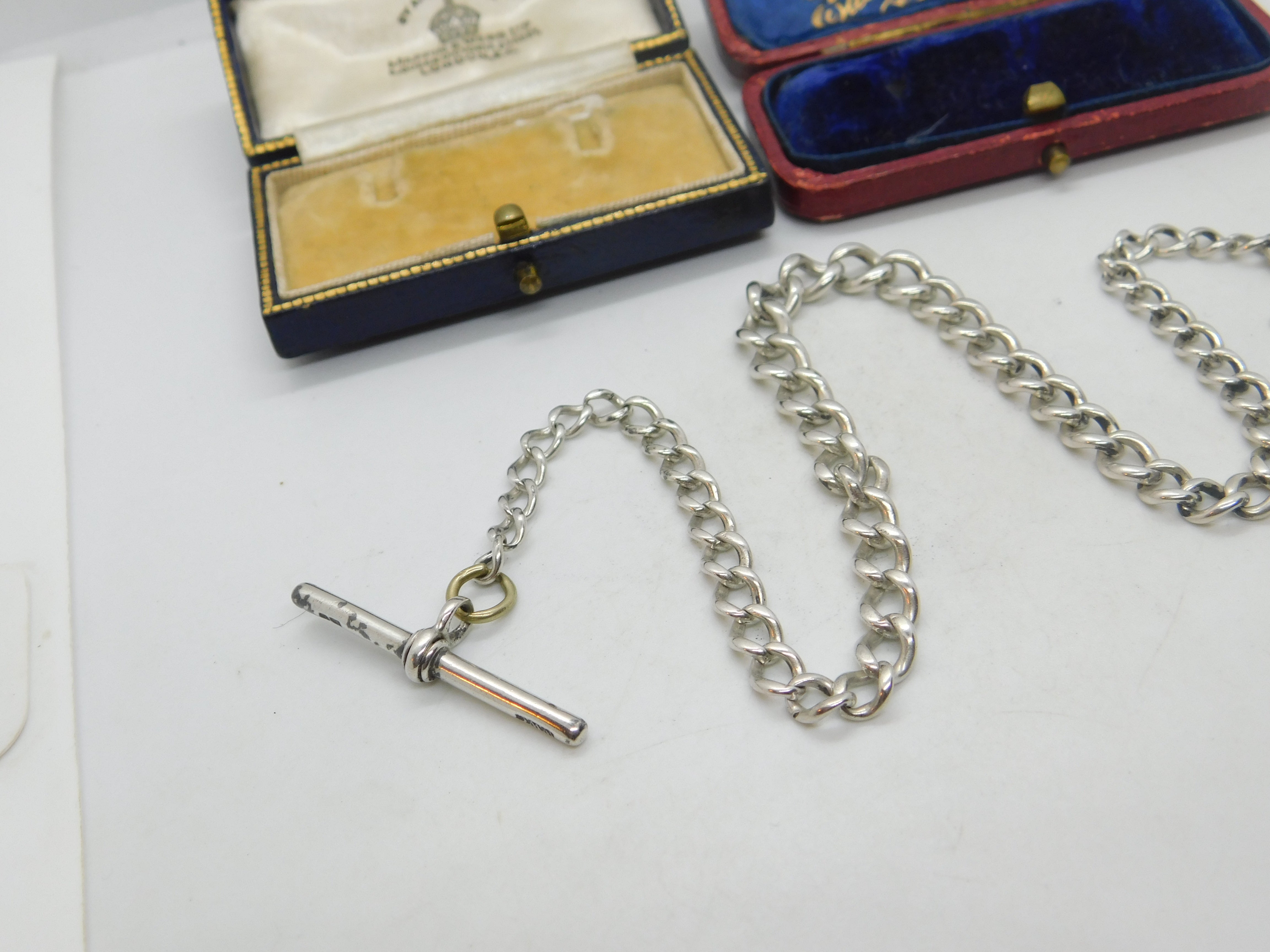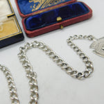 Details: A fantastic and well designed antique Victorian sterling silver graduating Albert watch chain with fob and t-bar hallmarked Birmingham 1897 to the t-bar with a later fob attached hallmarked Birmingham 1930.This is a wonderful item that would make a perfect gift or addition to any collection. The BOX pictured is for PRESENTATION ONLY and is NOT included in the listings but used to frame the pictures unless specifically stated otherwise.