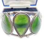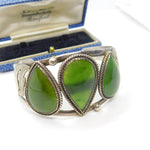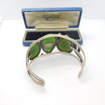 Sterling Silver & Large Nephrite Jade Panel Bangle Bracelet Antique c1920