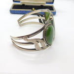 Details: A fantastic and wonderfully designed antique art deco sterling silver large cuff bangle set with nephrite jade panel c1920 - the silver has been XRF tested. This is a wonderful item that would make a perfect gift or addition to any collection. The BOX pictured is for PRESENTATION ONLY and is NOT included in the listings but used to frame the pictures unless specifically stated otherwise.