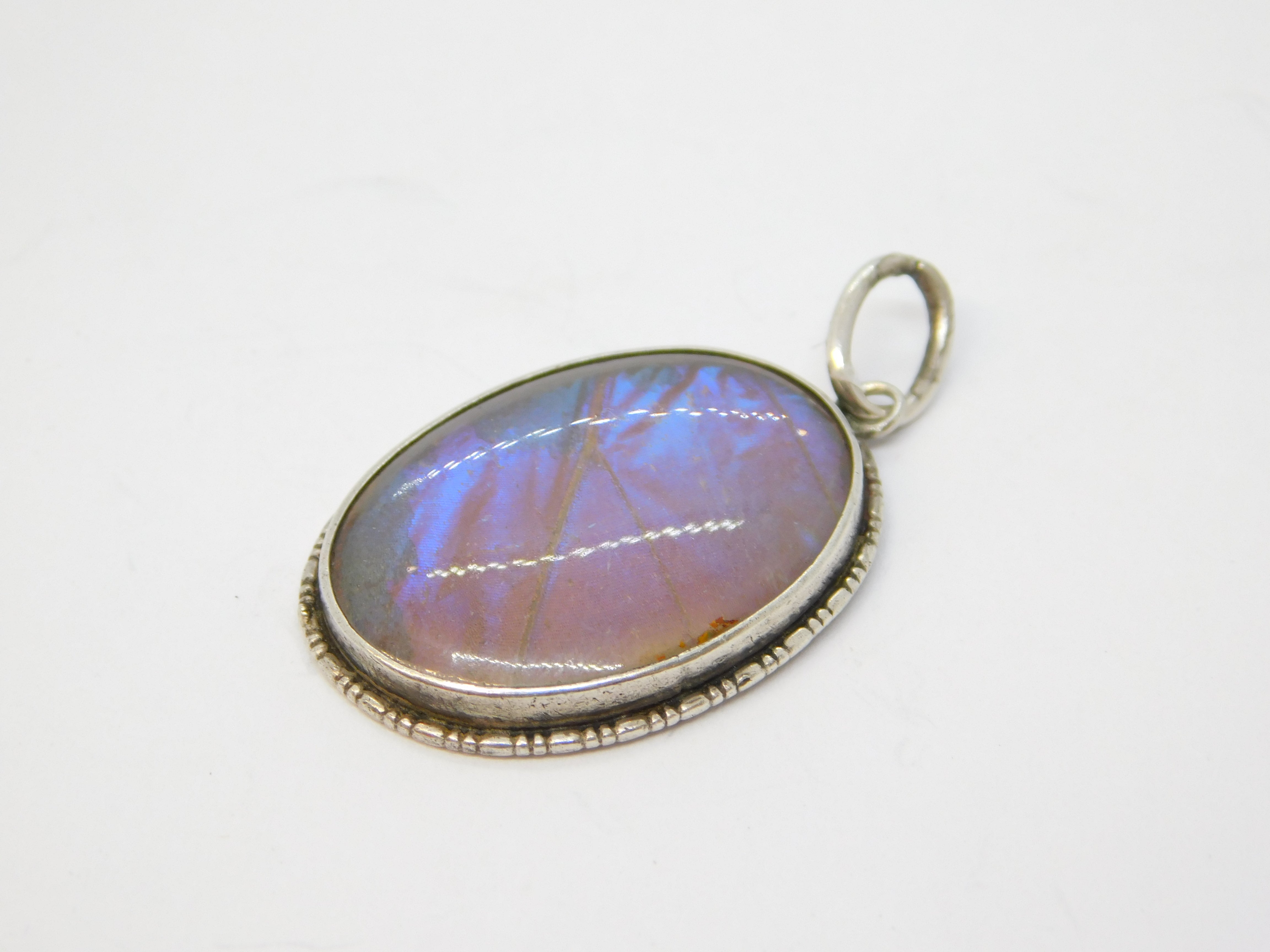 Details: A fantastic and wonderfully designed antique art deco sterling silver morpho butterfly wing drop pendant with lovely detailing hallmarked Birmingham 1921. This is a wonderful item that would make a perfect gift or addition to any collection. We are more than happy to provide XRF reports for items upon request.