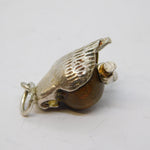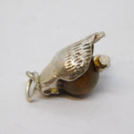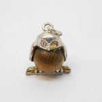 Sterling Silver & Oak Wood Set Perched Owl Charm Pendant Vintage c1950