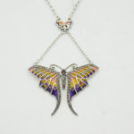 Sterling Silver Plique-à-Jour Enamel, Garnet Set Butterfly Necklace Vintage