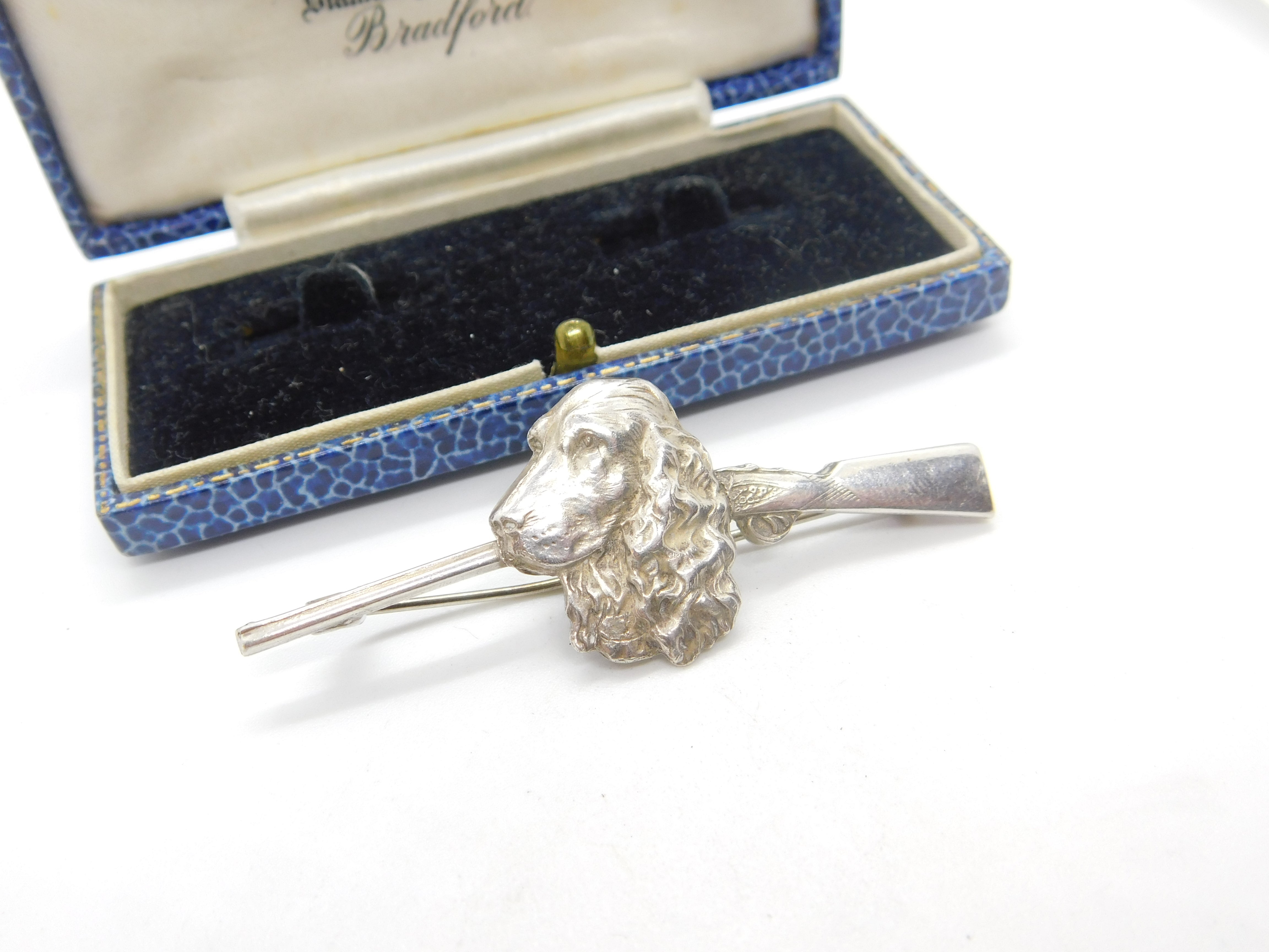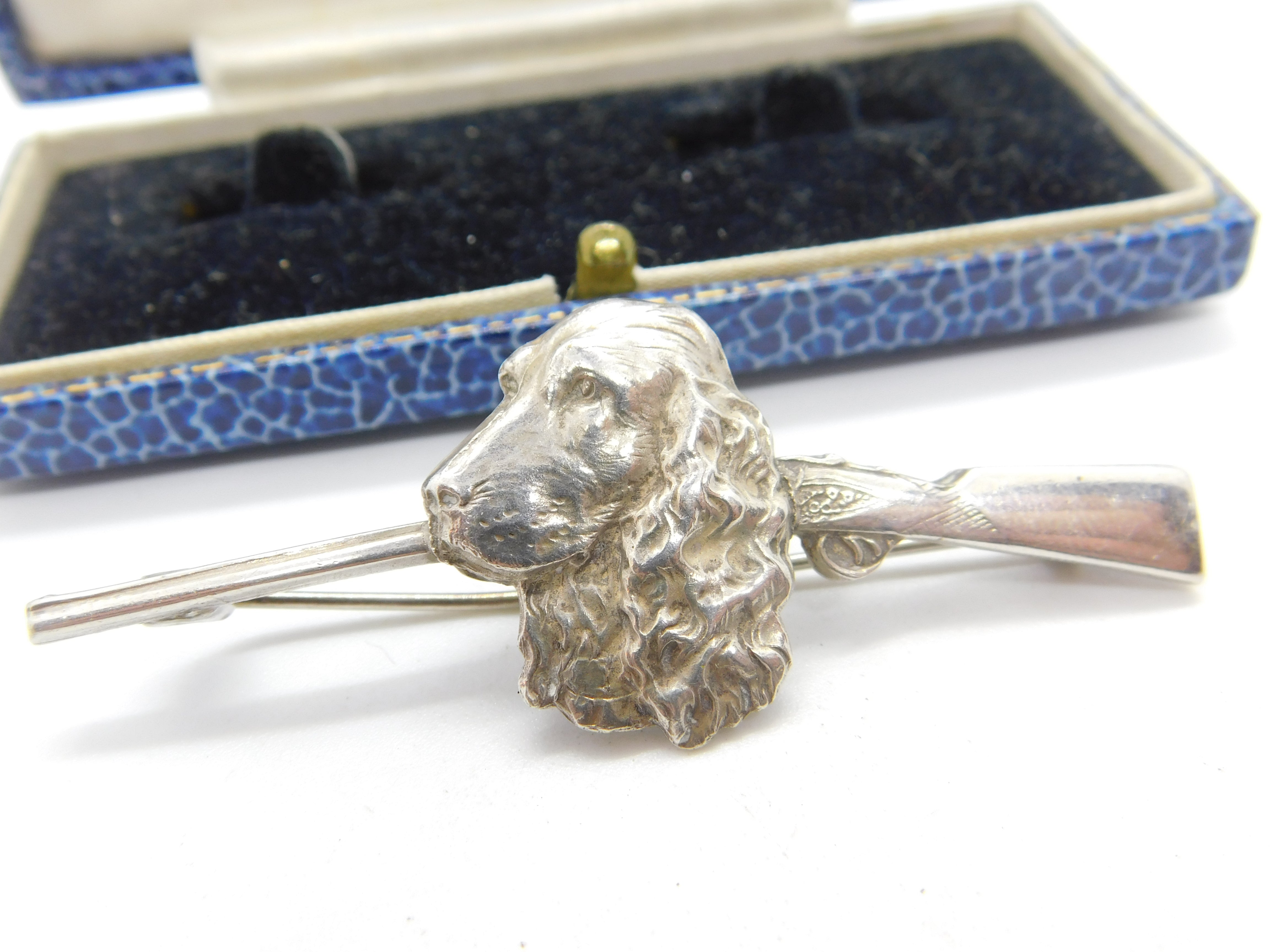 Sterling Silver Retriever Dog & Gun Shooting Interest Brooch Antique c1930 Deco