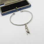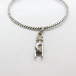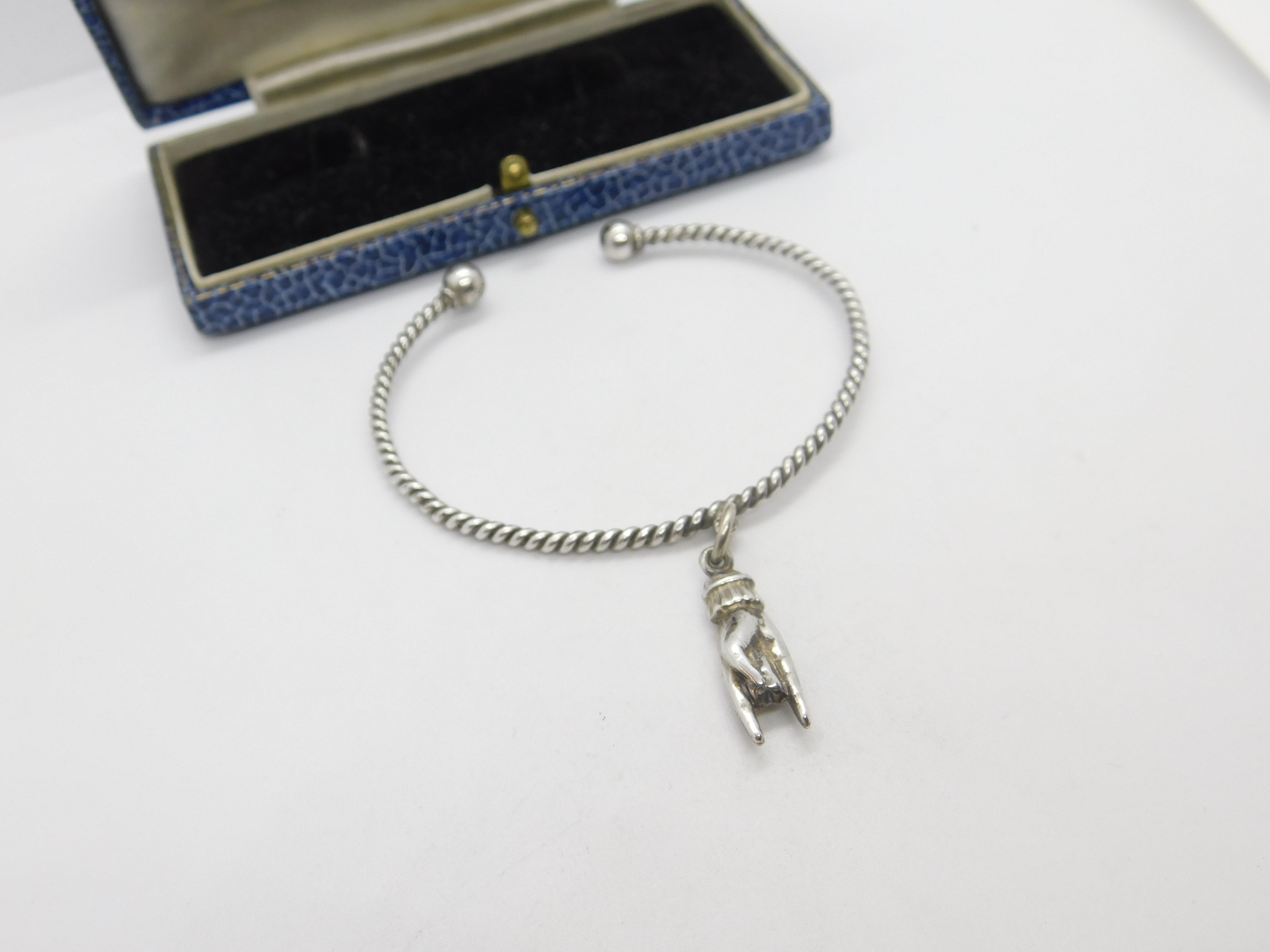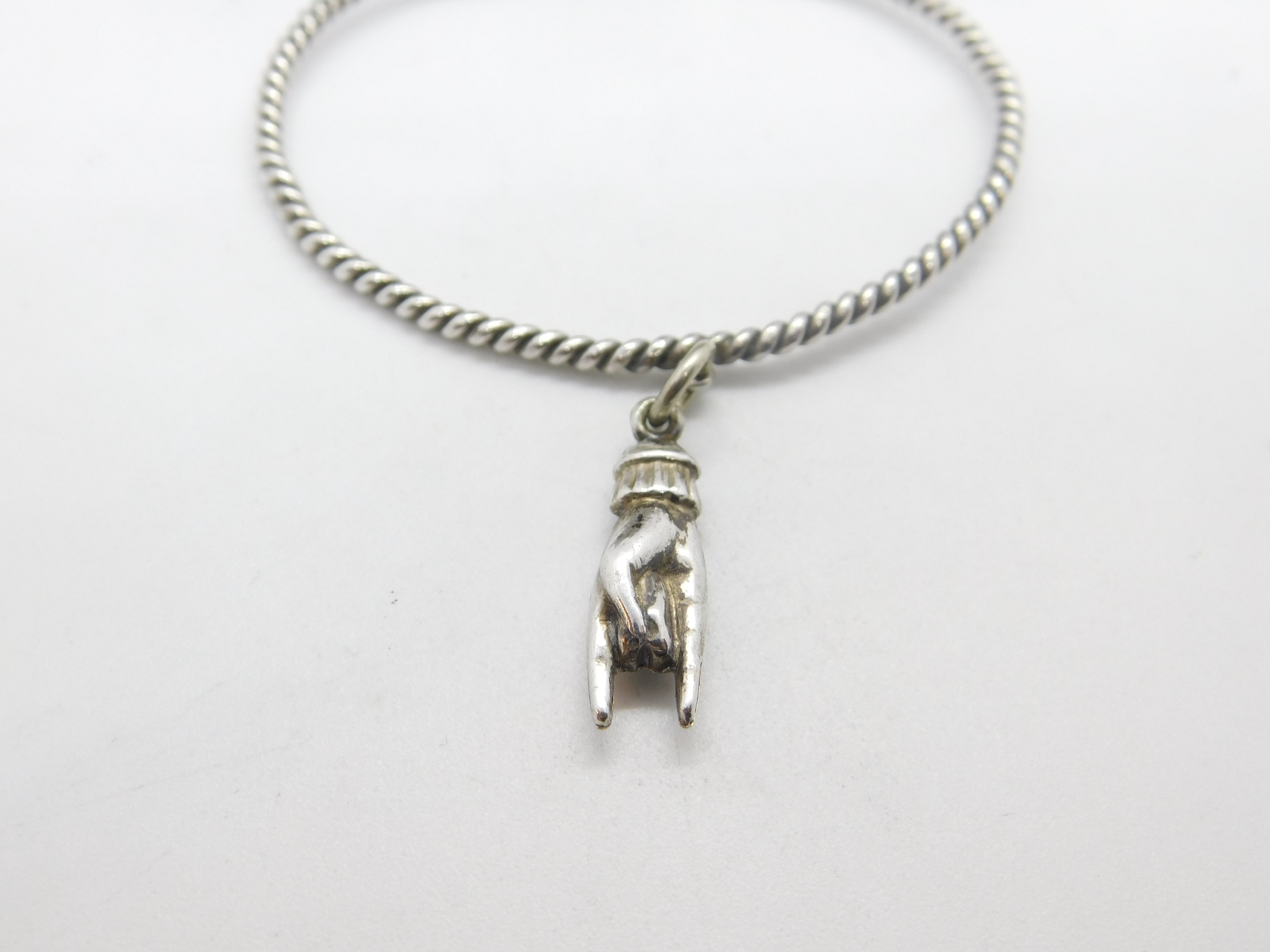 Sterling Silver Rope Twist Figa Hand Bangle Bracelet Antique c1920 Art Deco