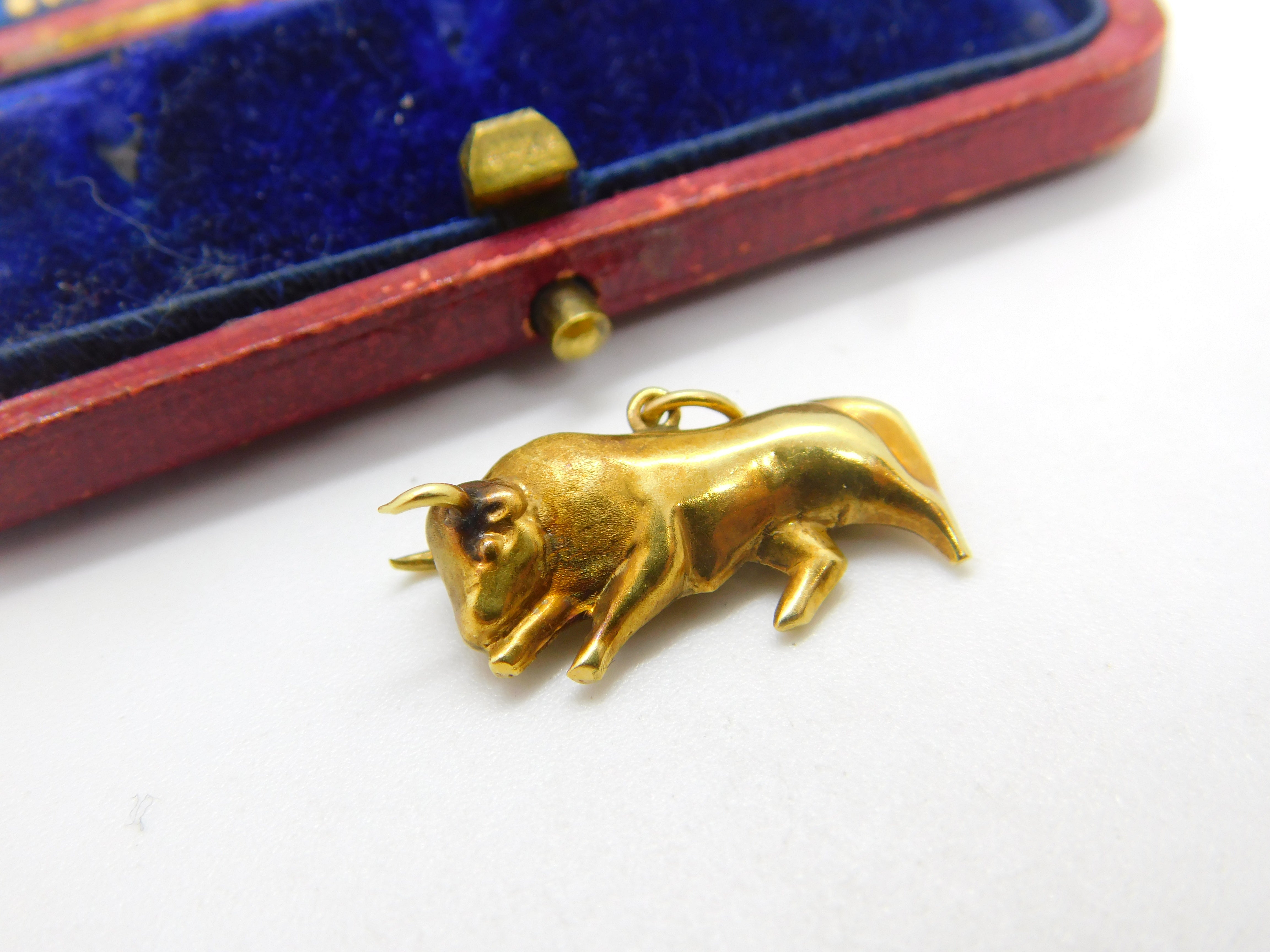 Taurus the Bull 9ct Yellow Gold Zodiac Charm Pendant Vintage c1970