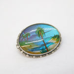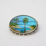 TLM Sterling Silver Morpho Butterfly Wing Island Scene Brooch Antique c1920 Deco