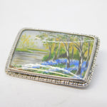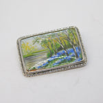 TLM Sterling Silver Mounted Painting Spring Woodland Brooch Antique c1920
