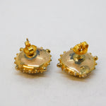 Victorian 10ct Gold, Ruby, Seed Pearl Etruscan Style Stud Earrings Antique c1890