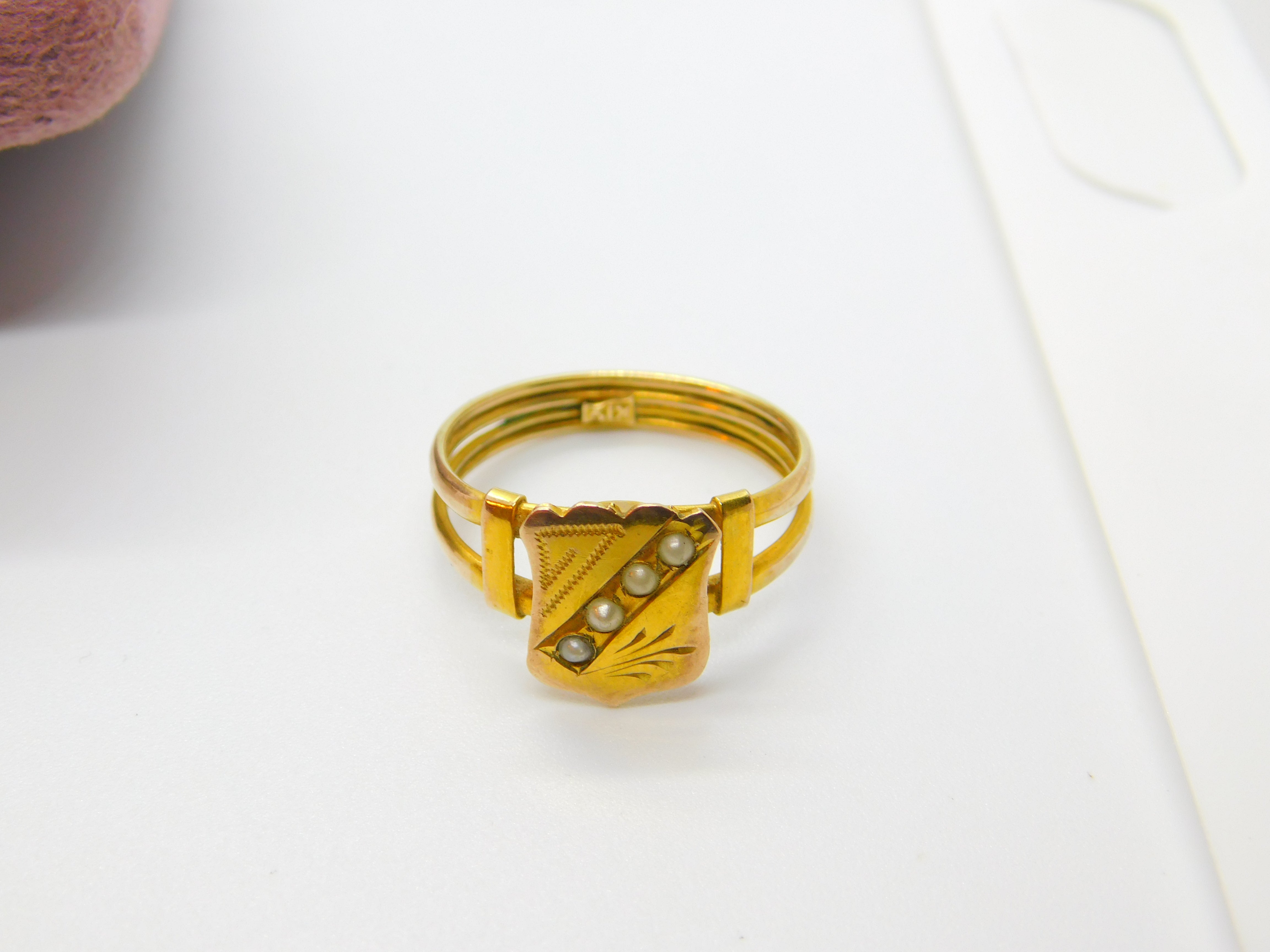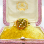 Victorian 12ct Yellow Gold & Seed Pearl Set Shield Ring Antique c1880