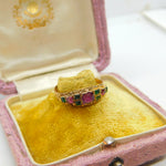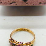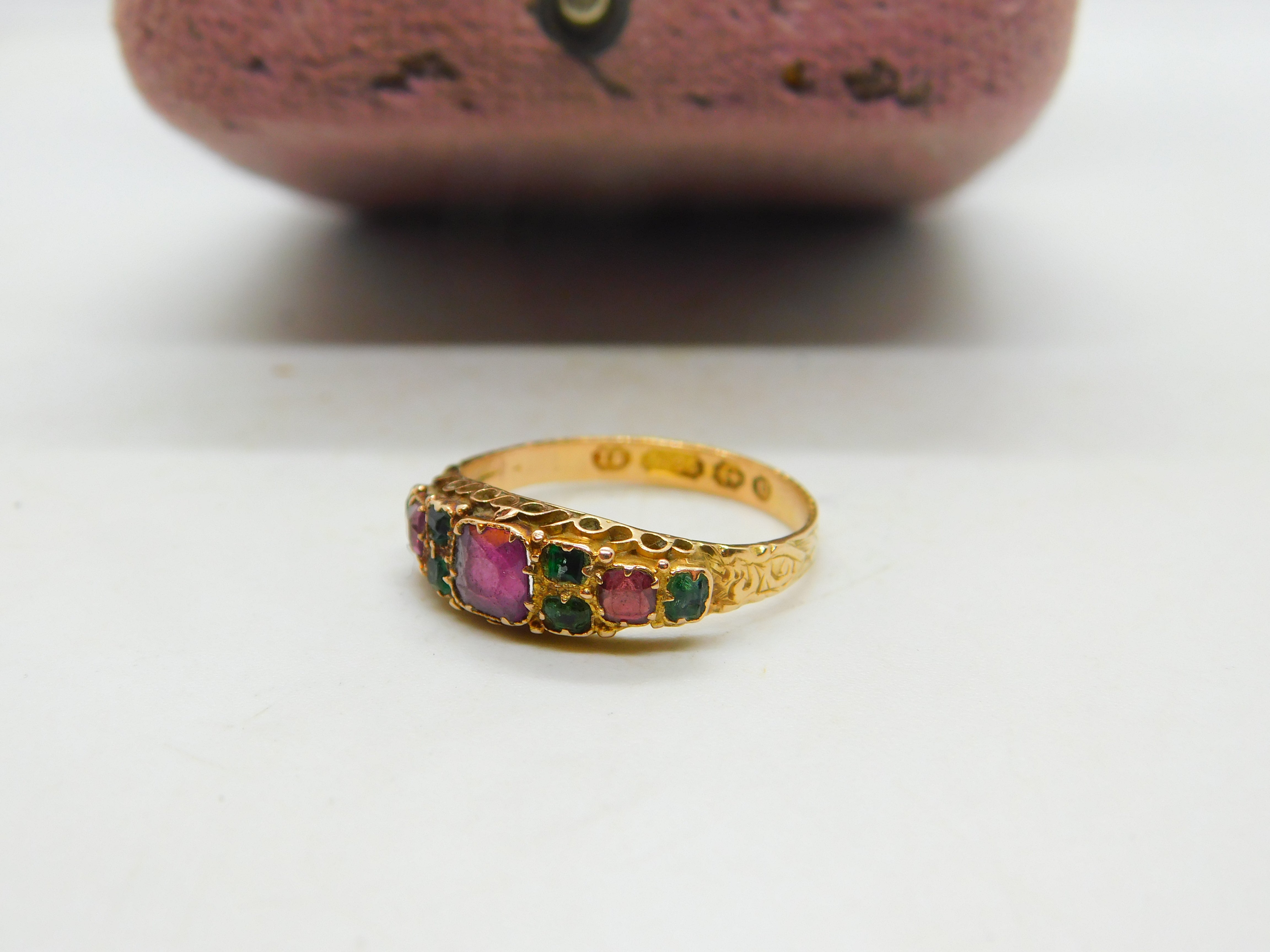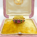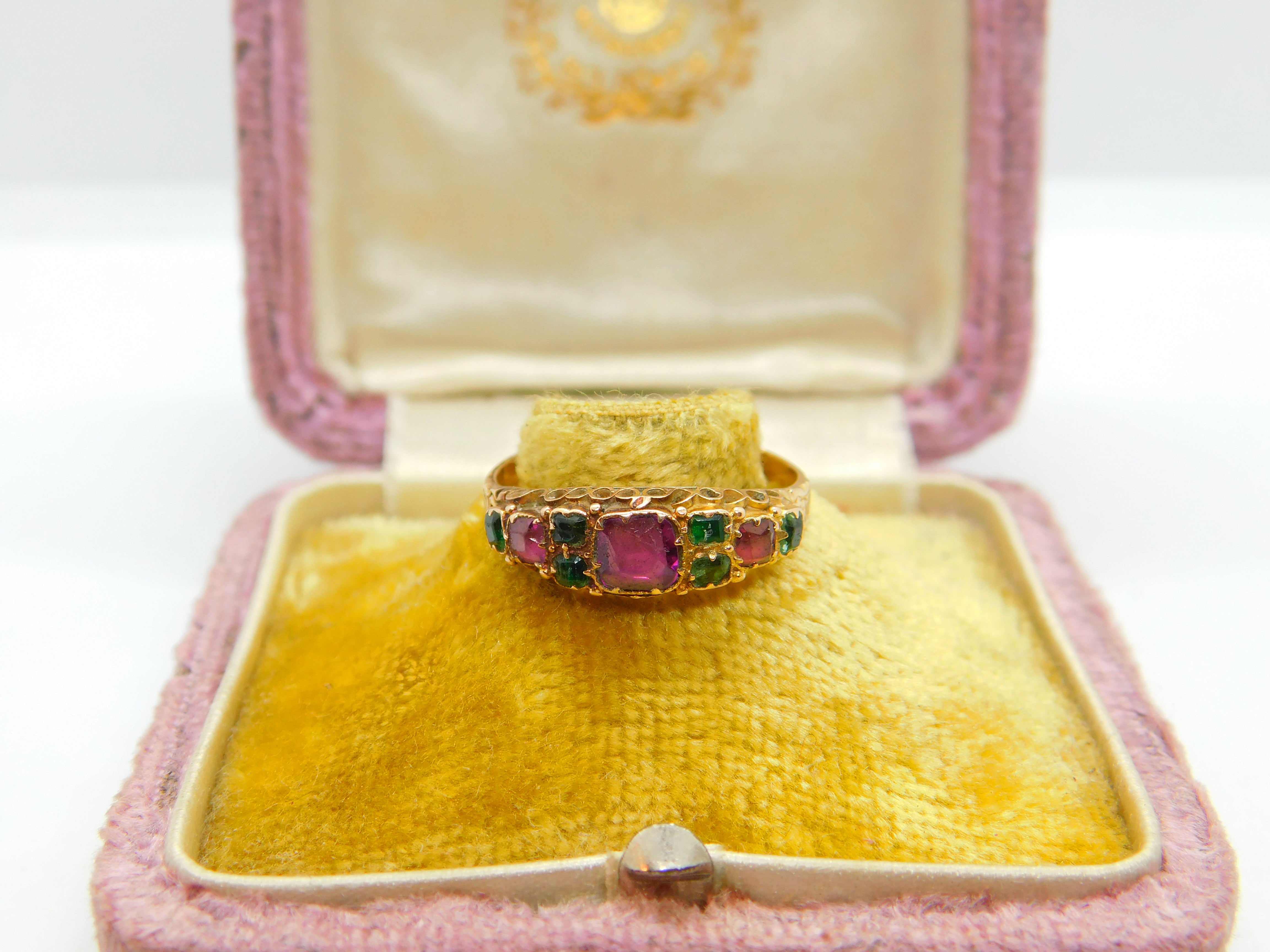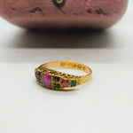 Victorian 15ct Gold, Tourmaline & Emerald Boat Ring Antique 1869 Floral Band