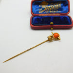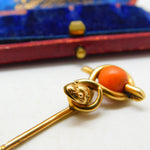Victorian 15ct Yellow Gold & Coral Snake Serpent Stick Pin Antique c1880