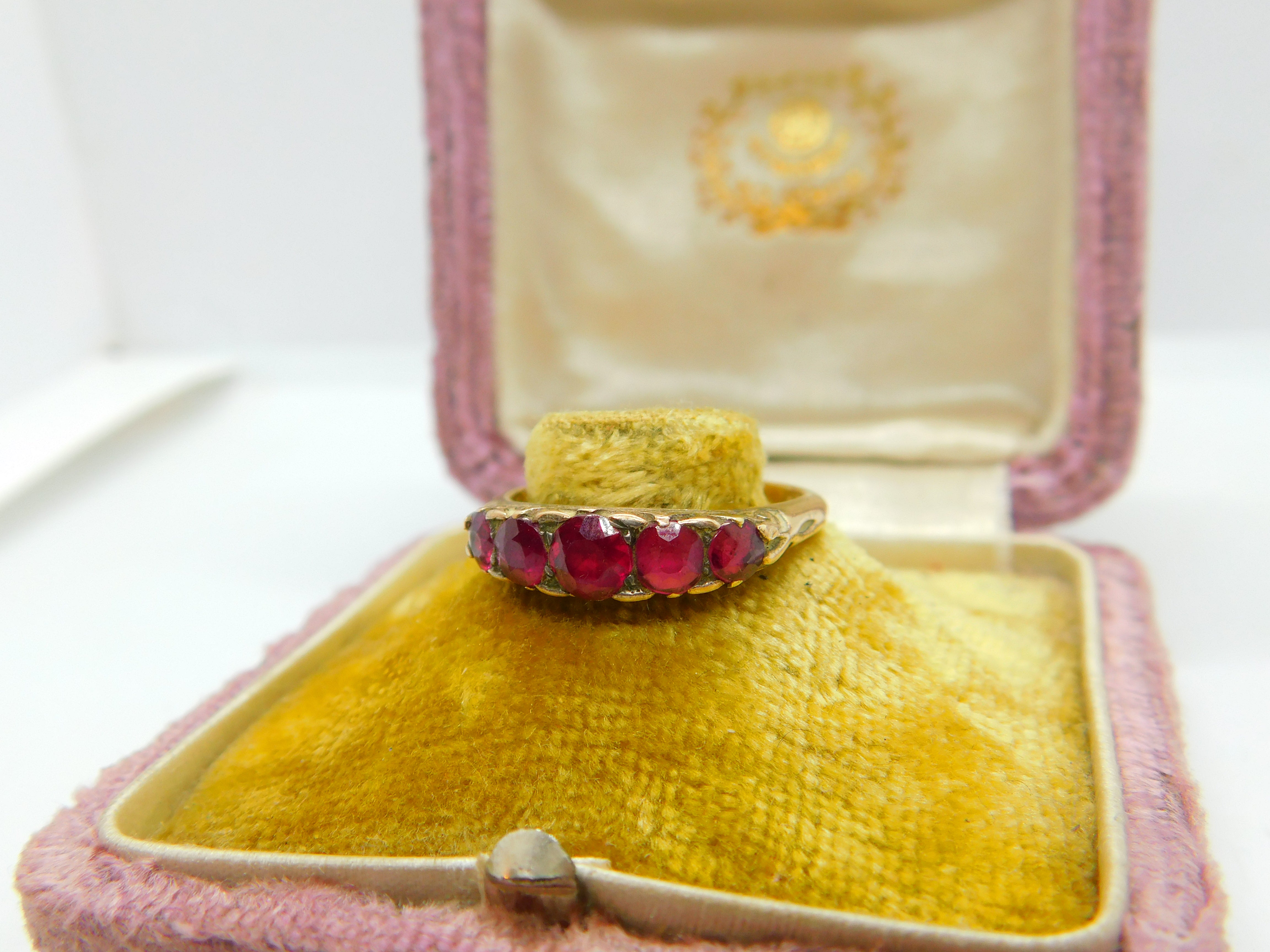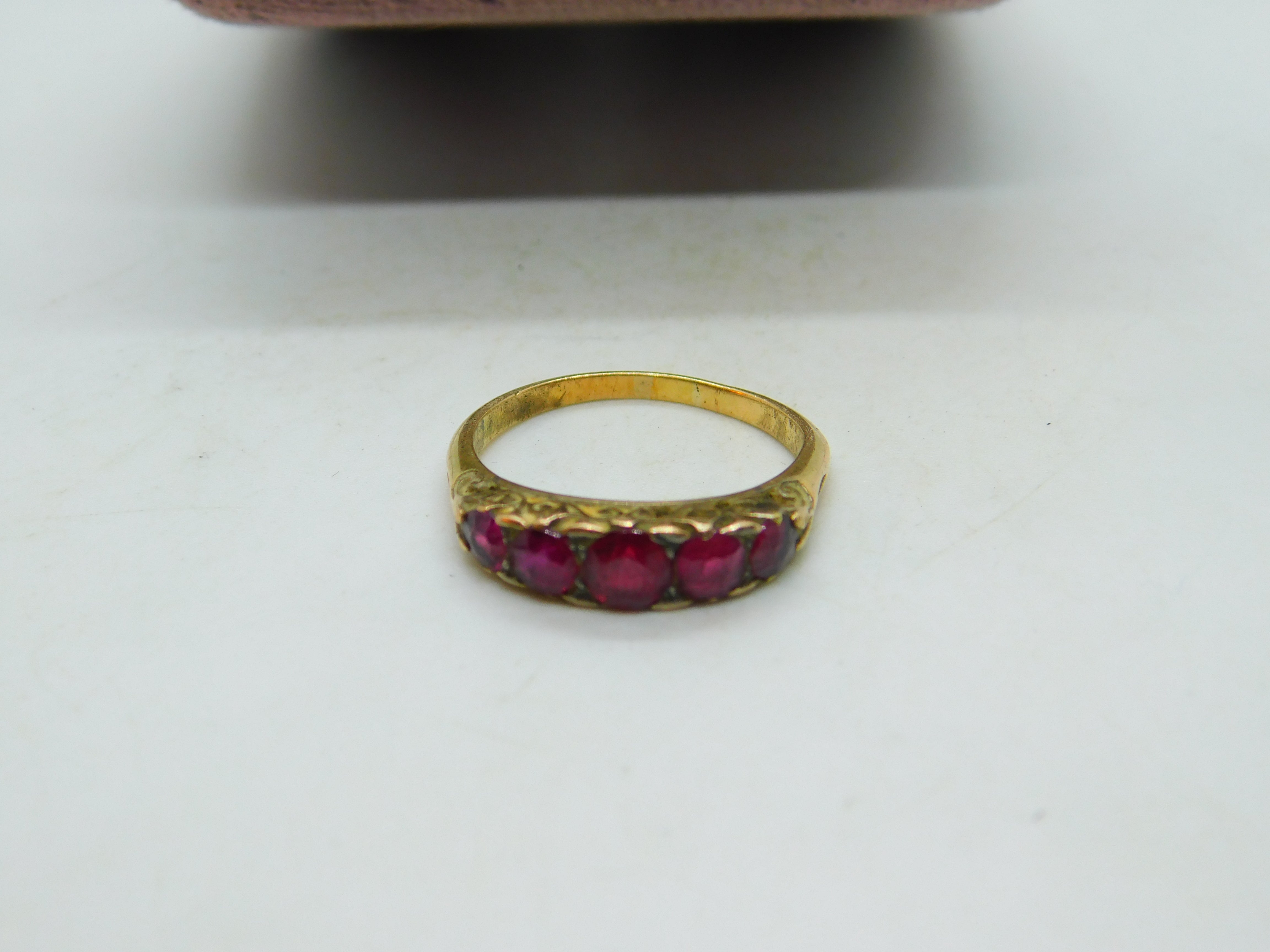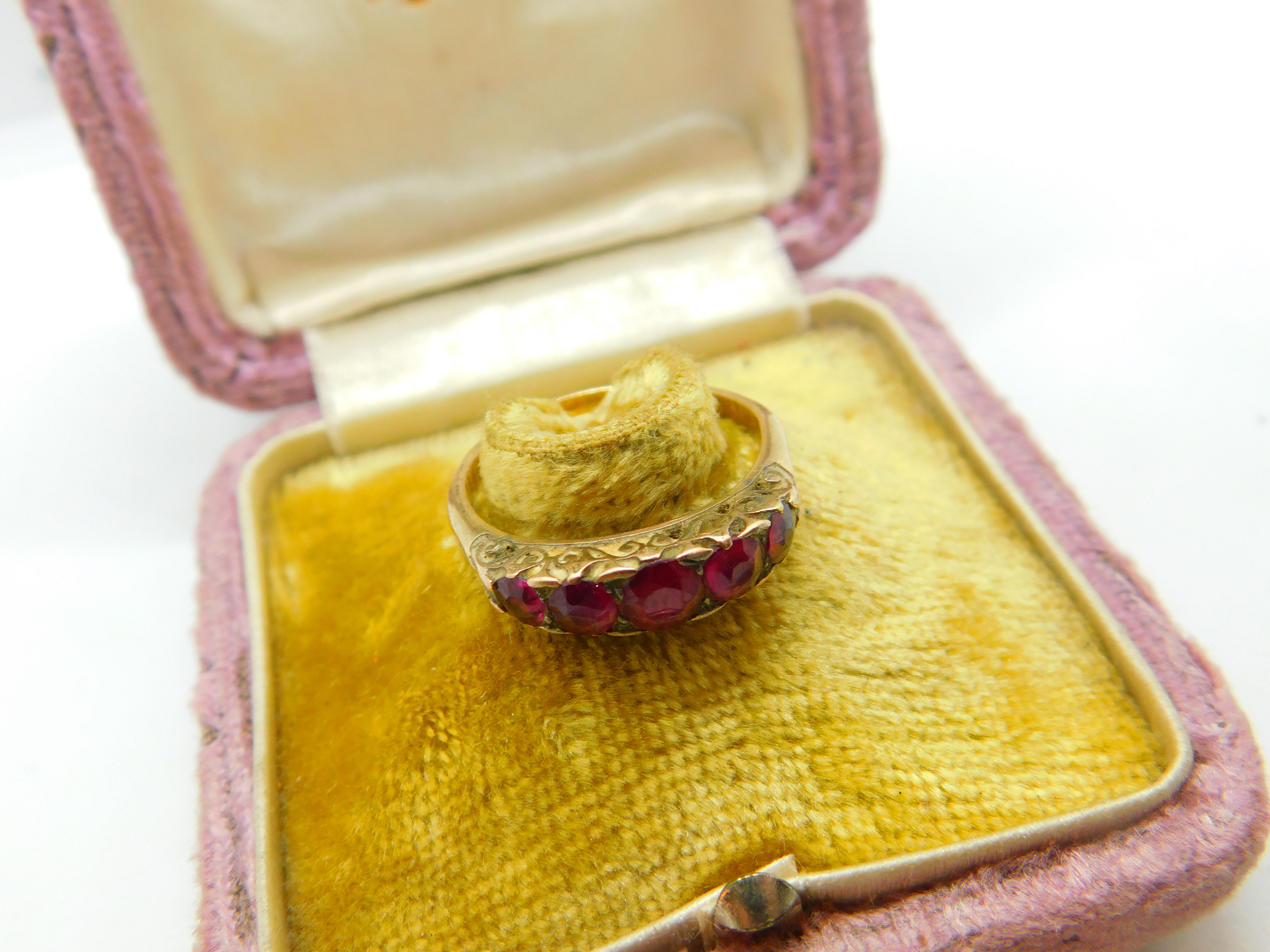 Victorian 15ct Yellow Gold & Five Stone Ruby Band Ring Antique c1890