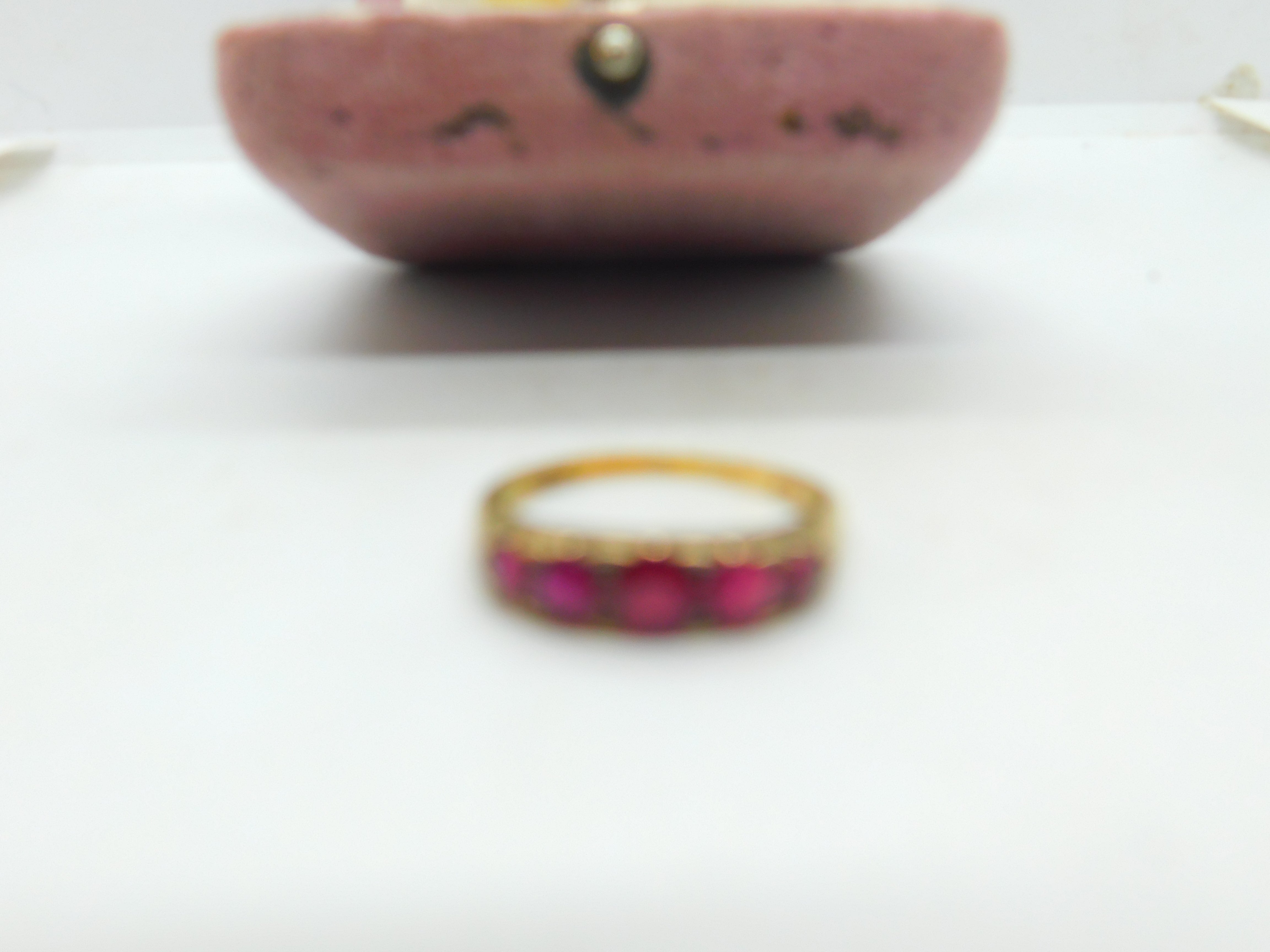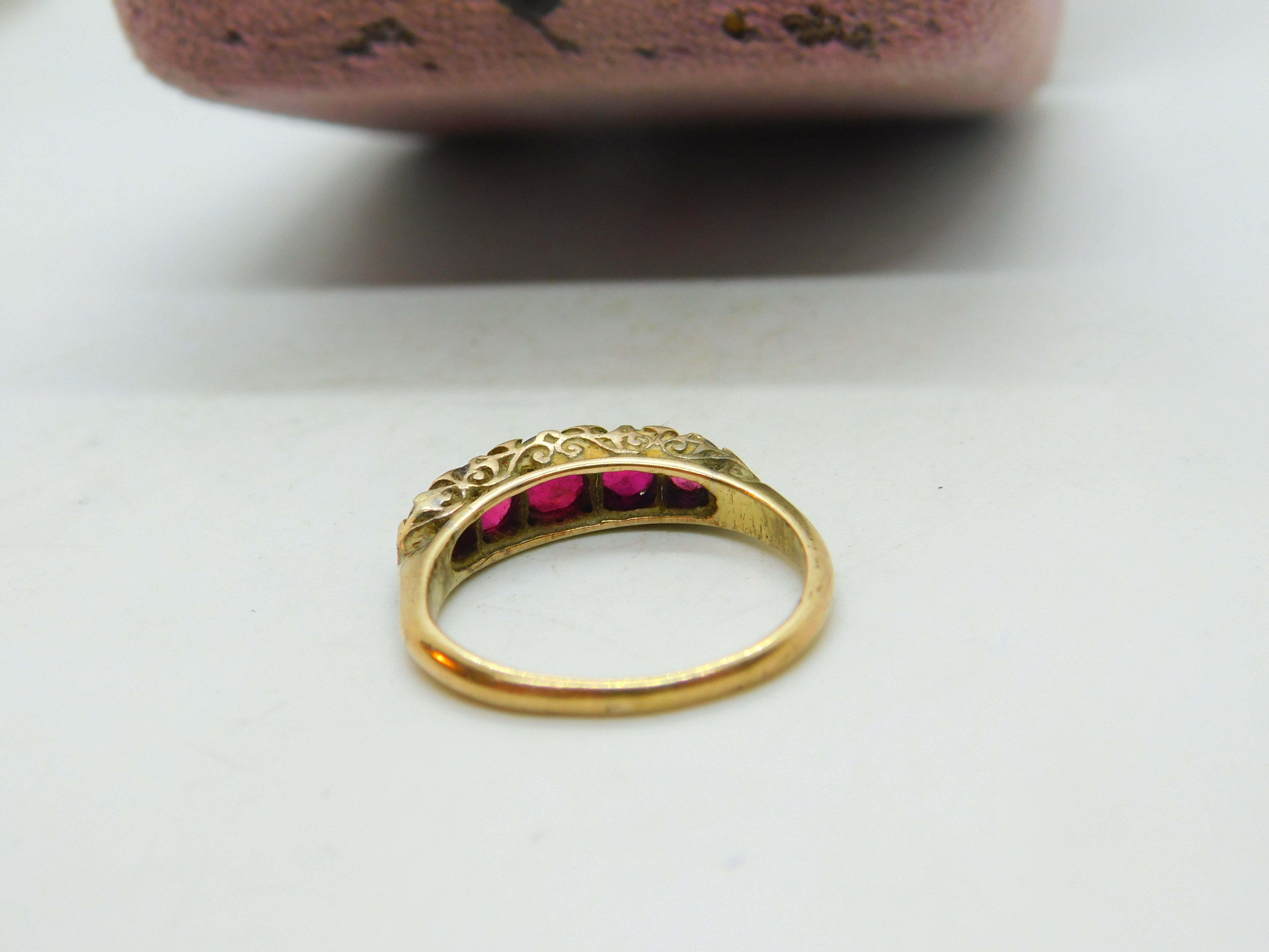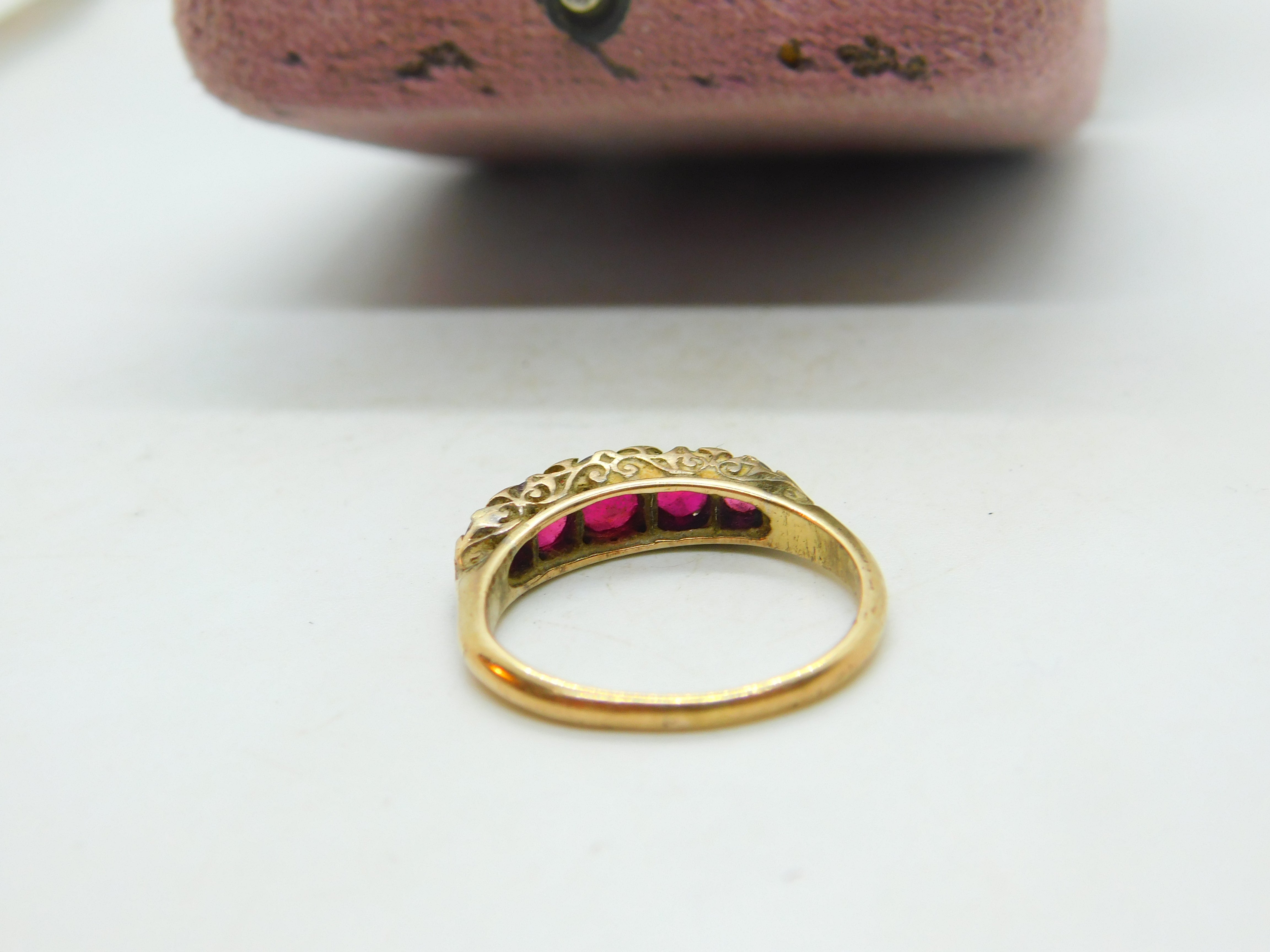 Victorian 15ct Yellow Gold & Five Stone Ruby Band Ring Antique c1890