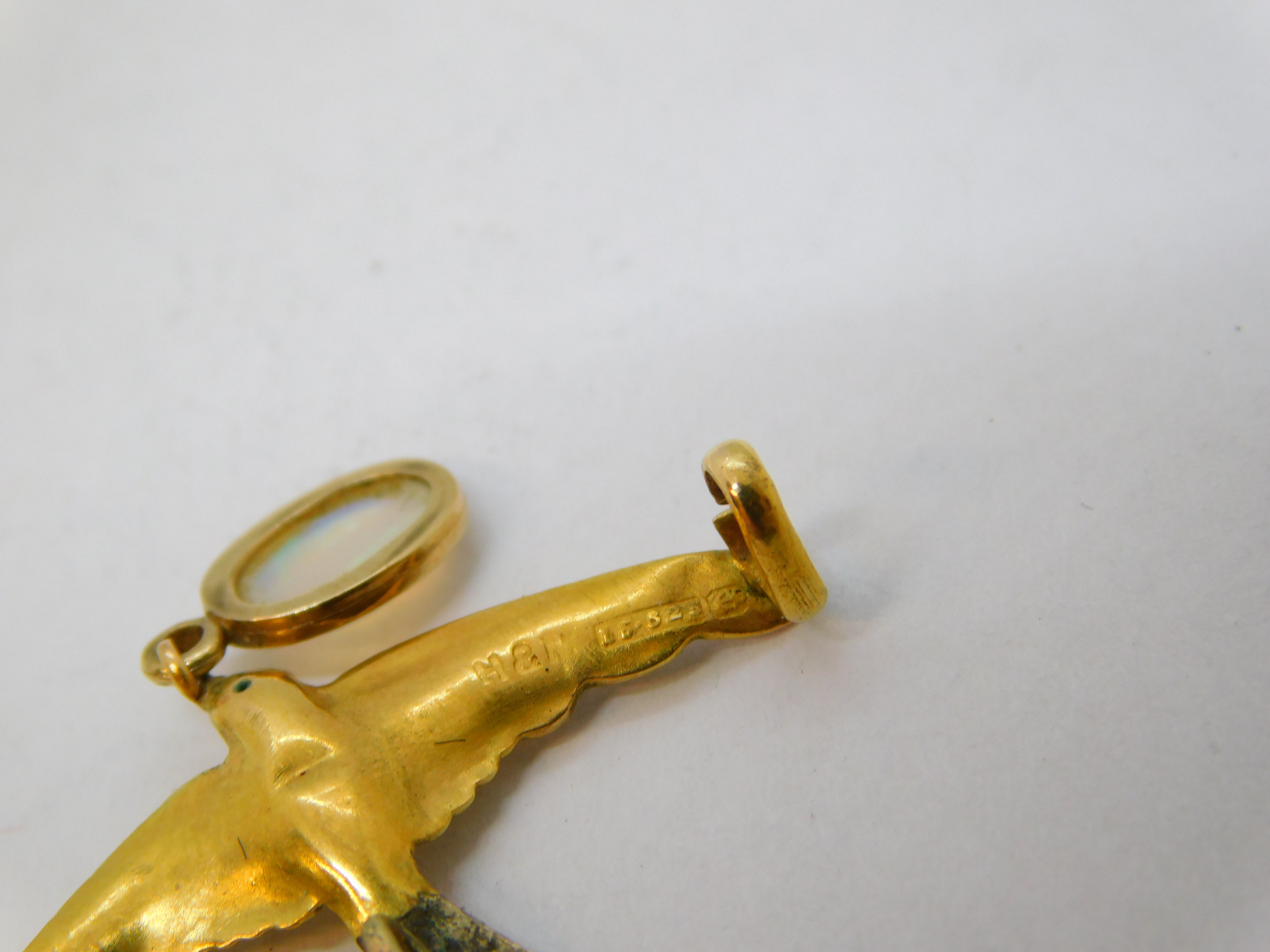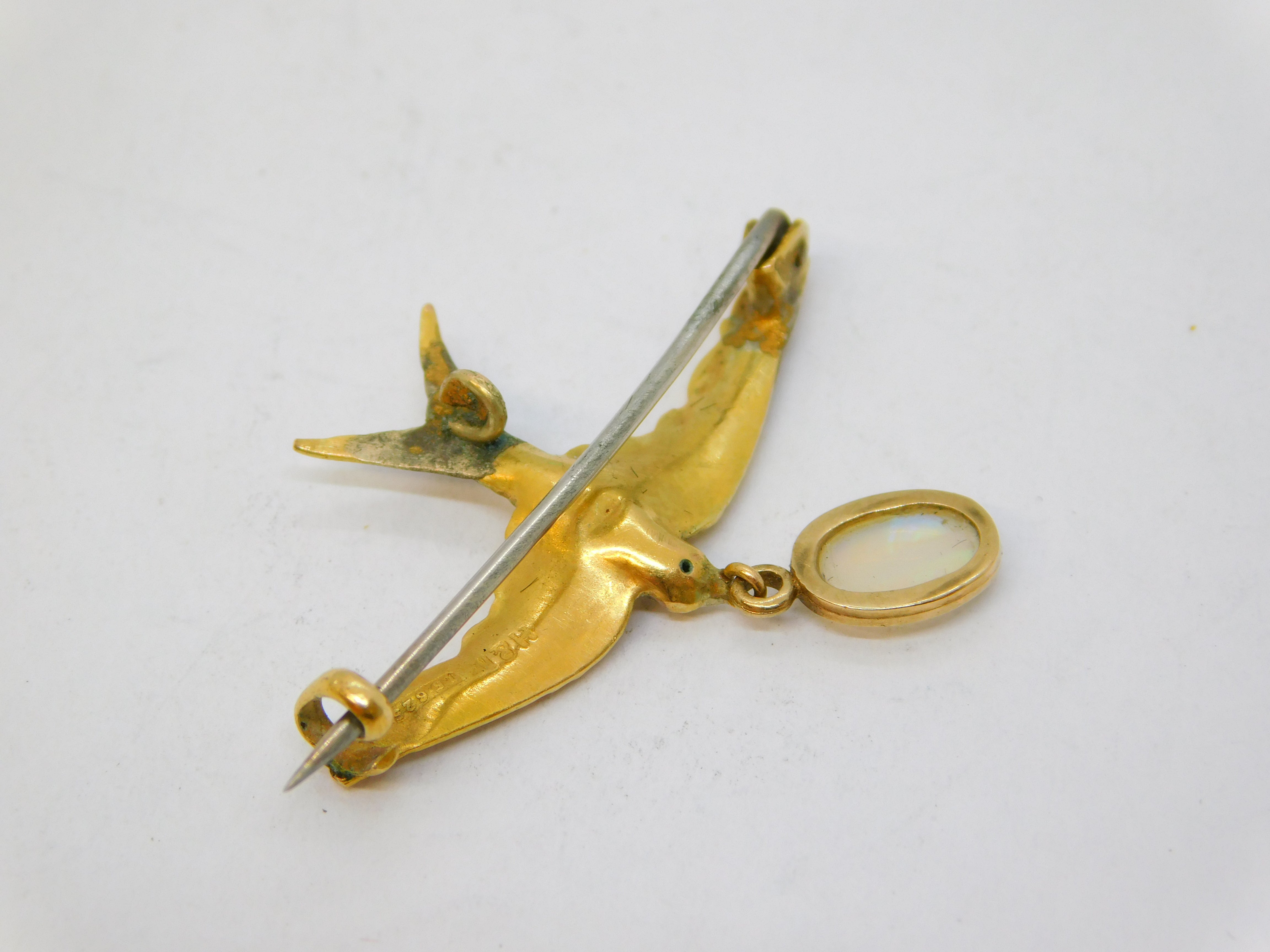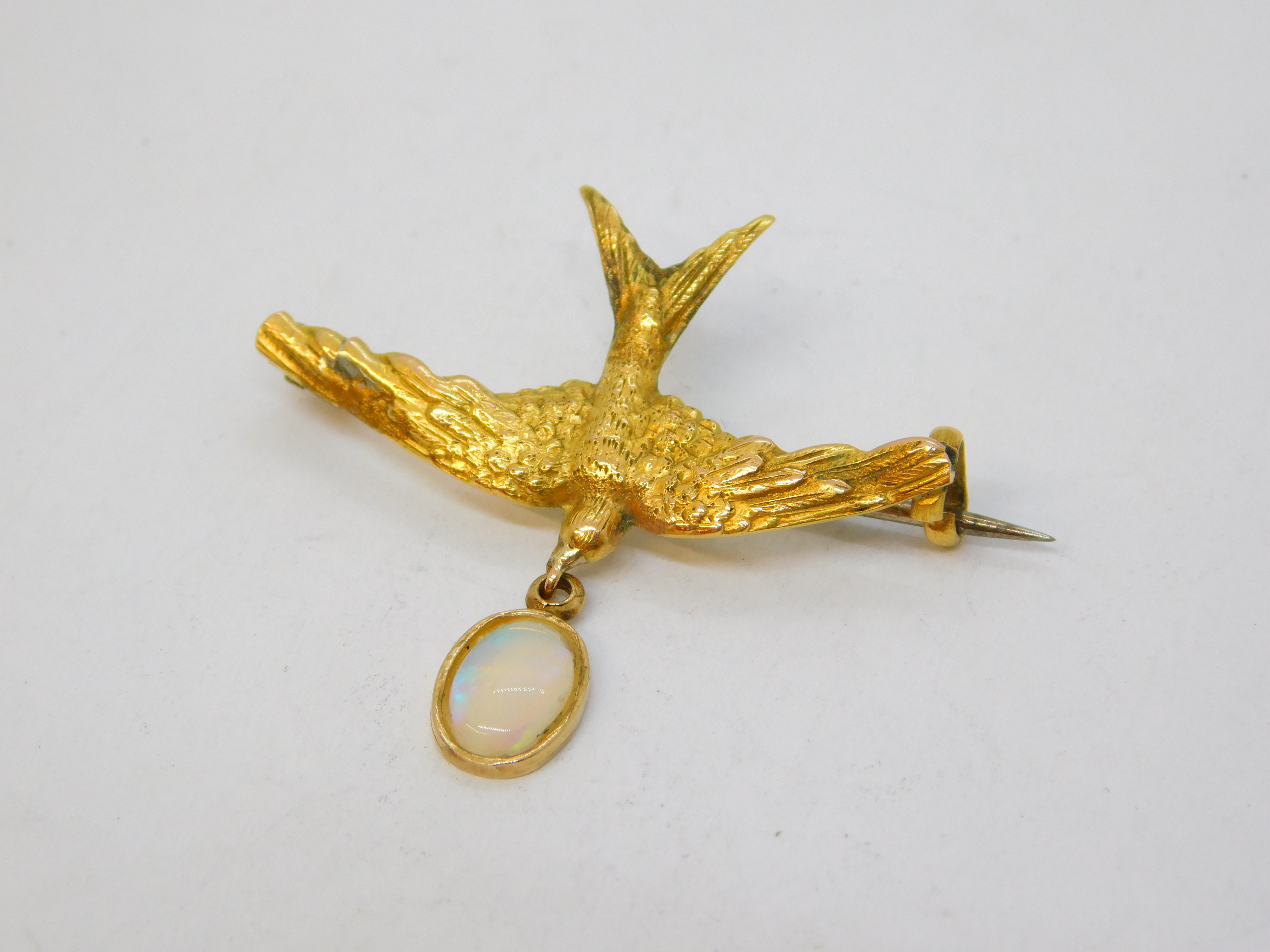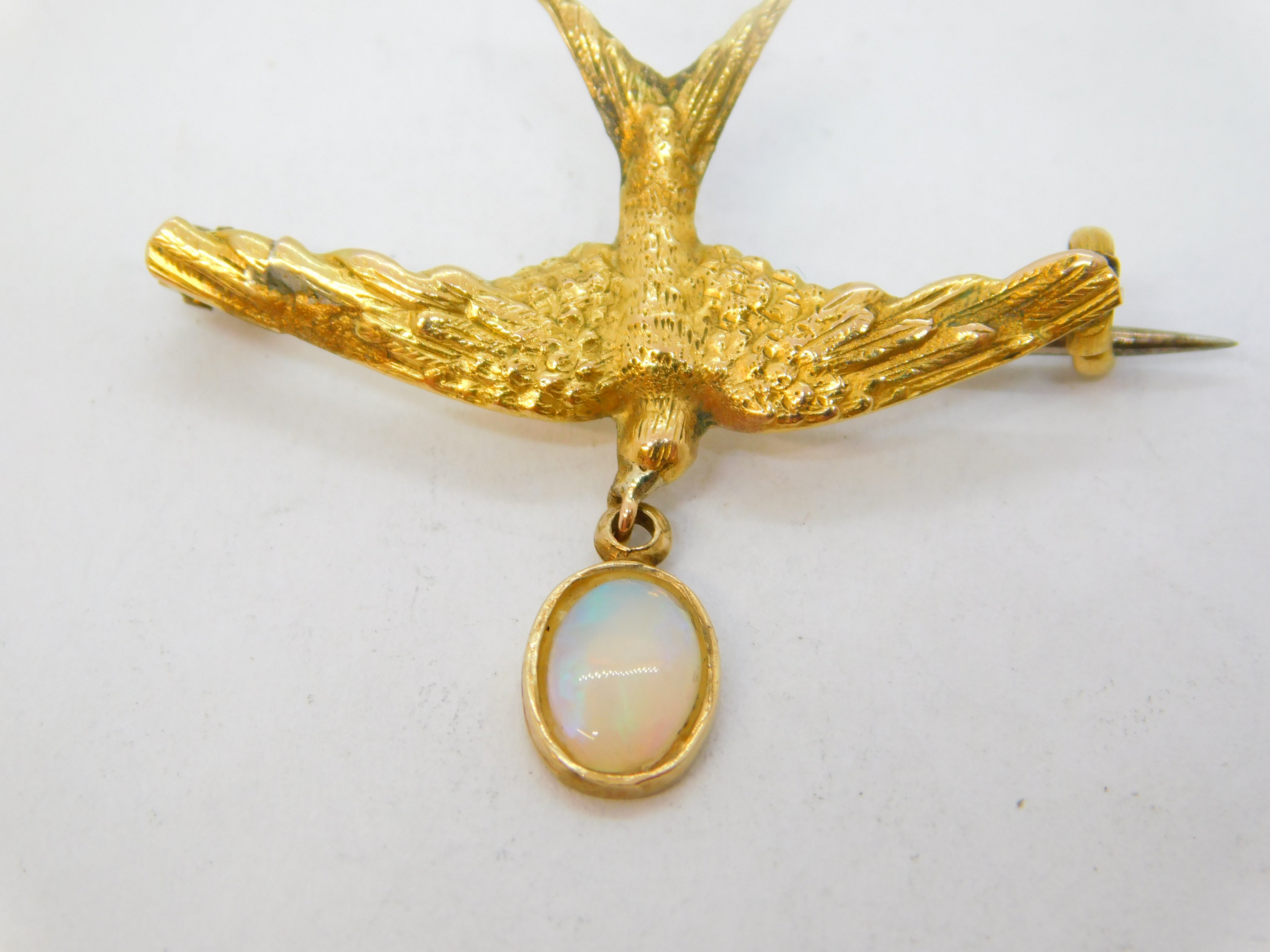 Victorian 15ct Yellow Gold Opal Drop Swallow Brooch Antique c1890 Birmingham