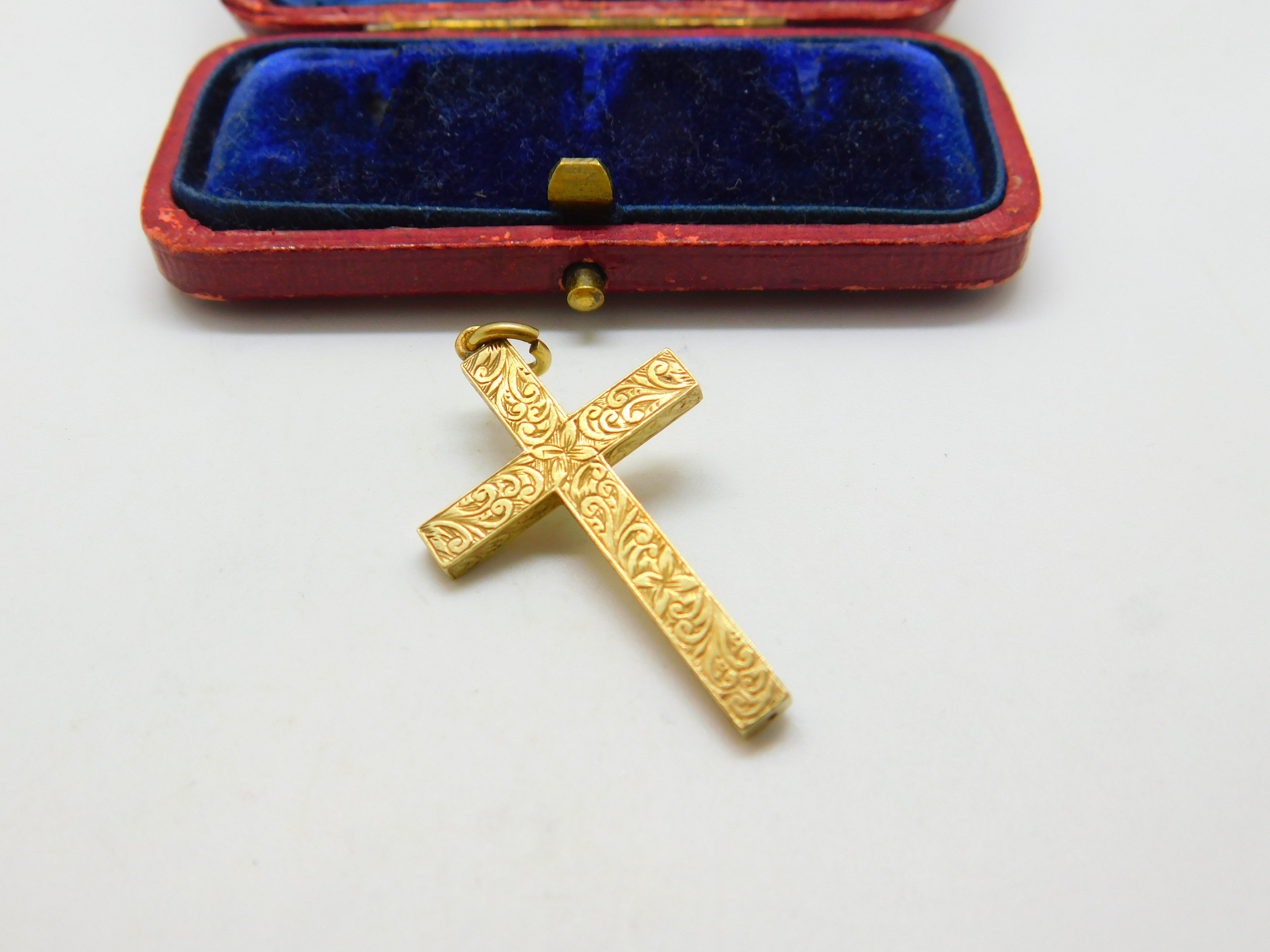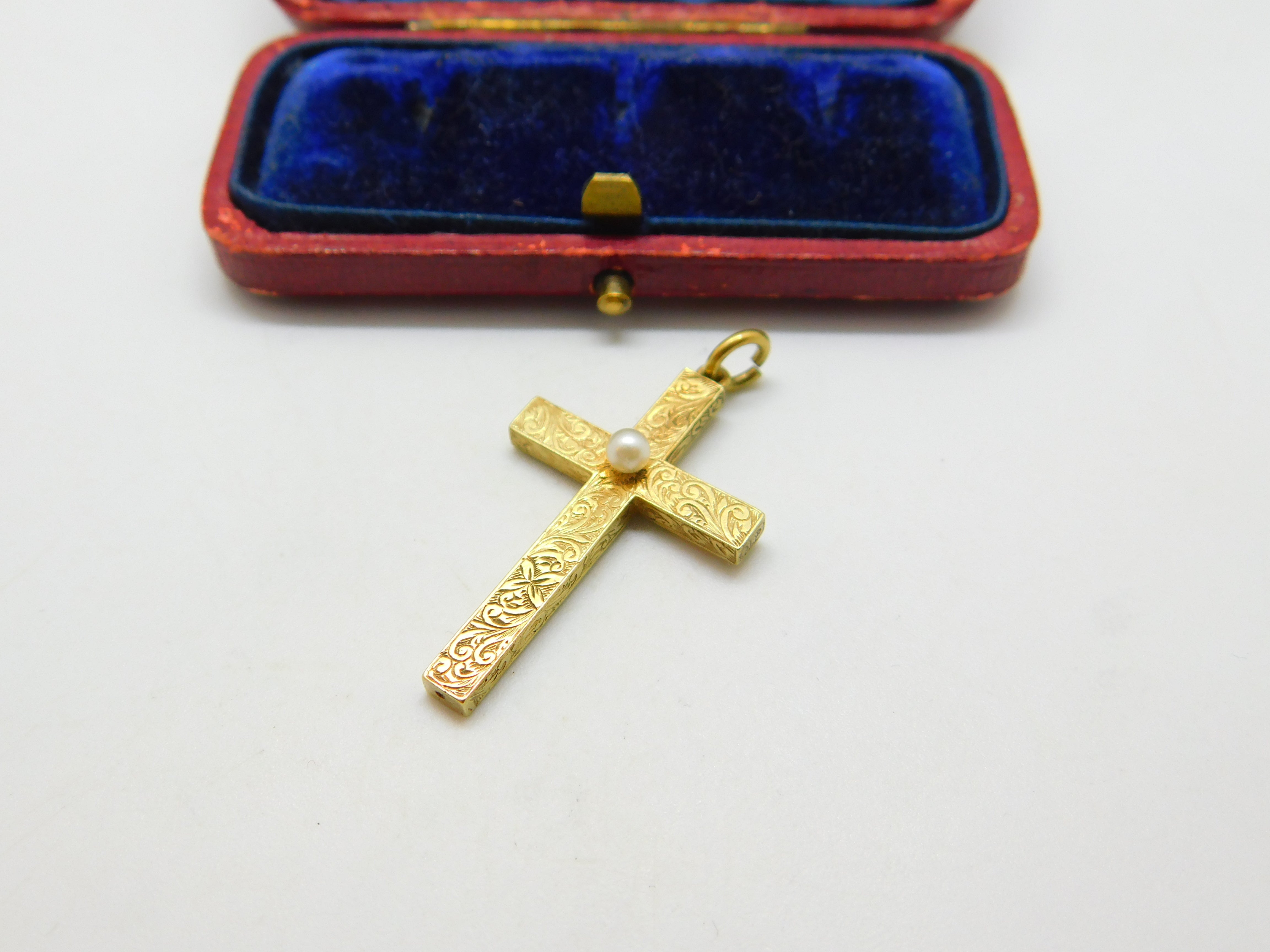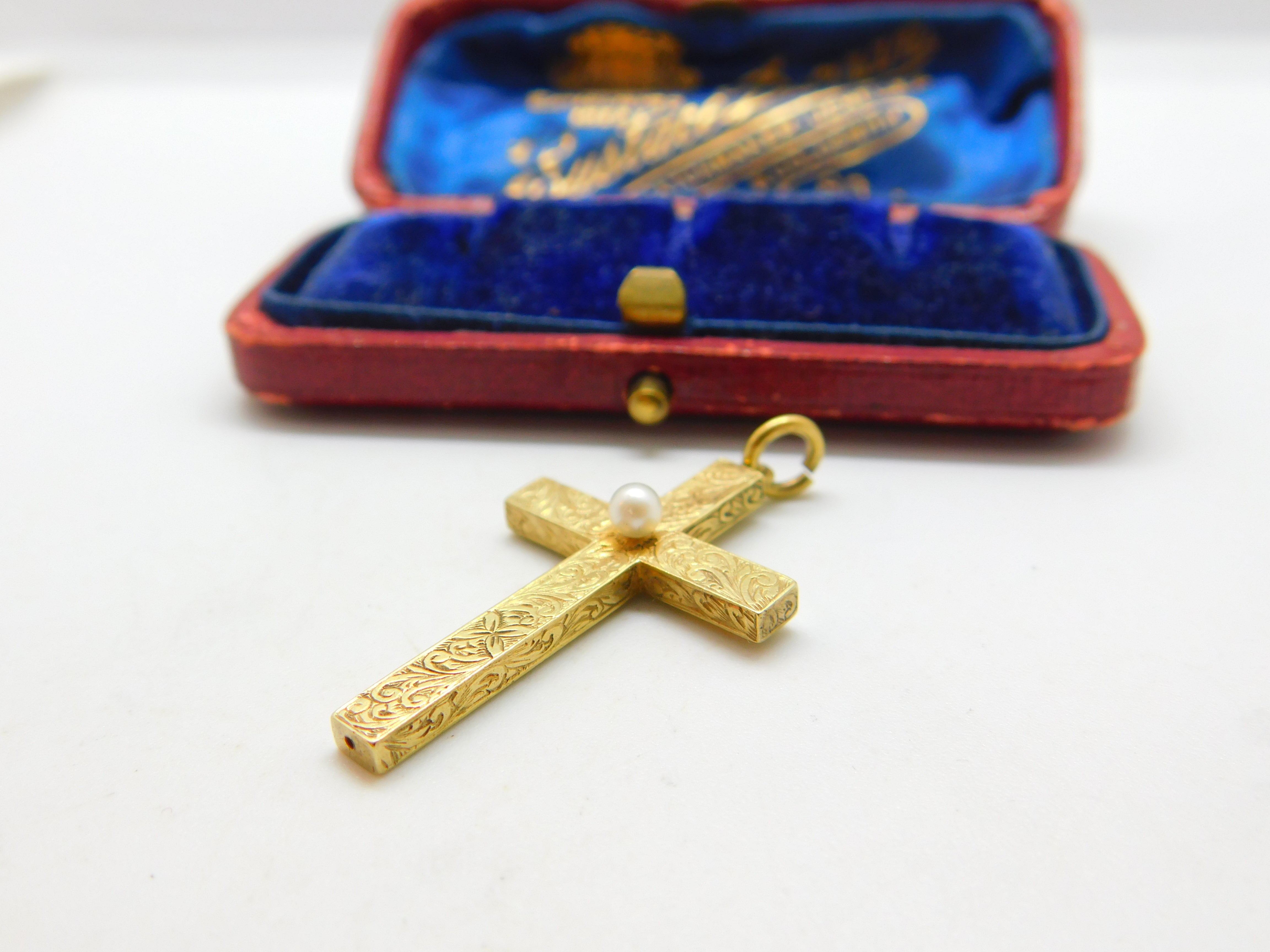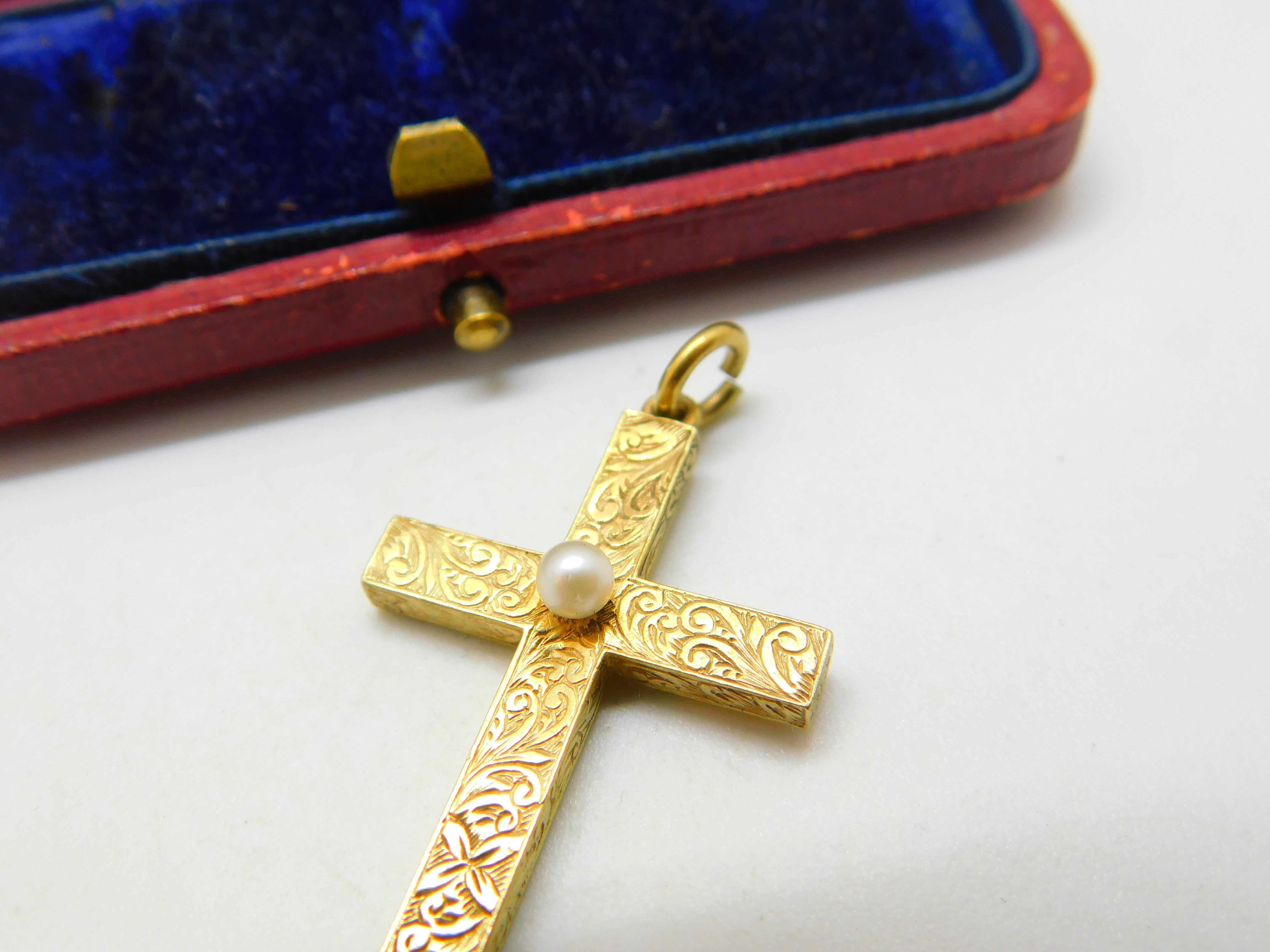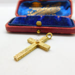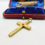 Victorian 15ct Yellow Gold & Seed Pearl Floral Cross Pendant Antique c1860