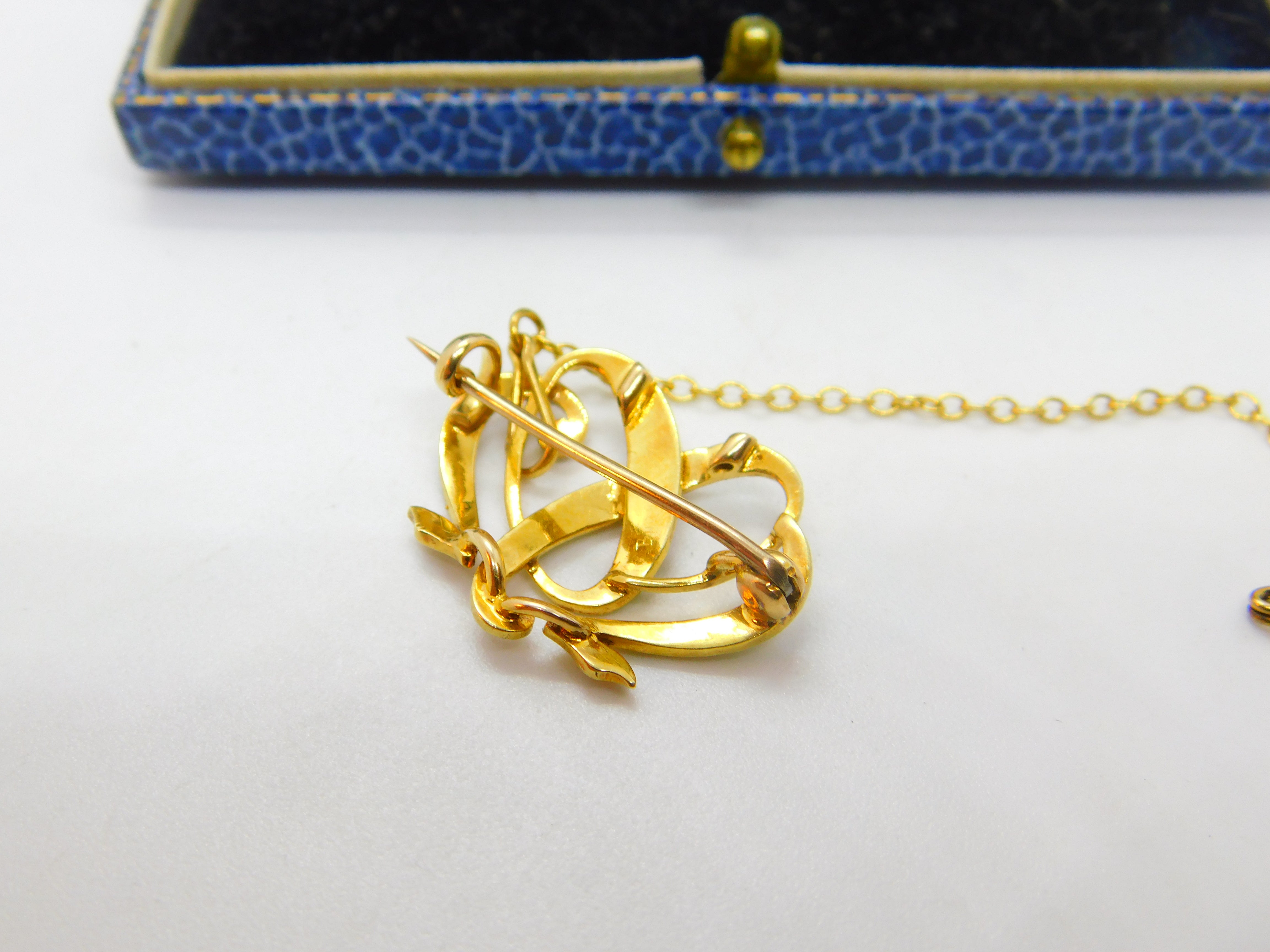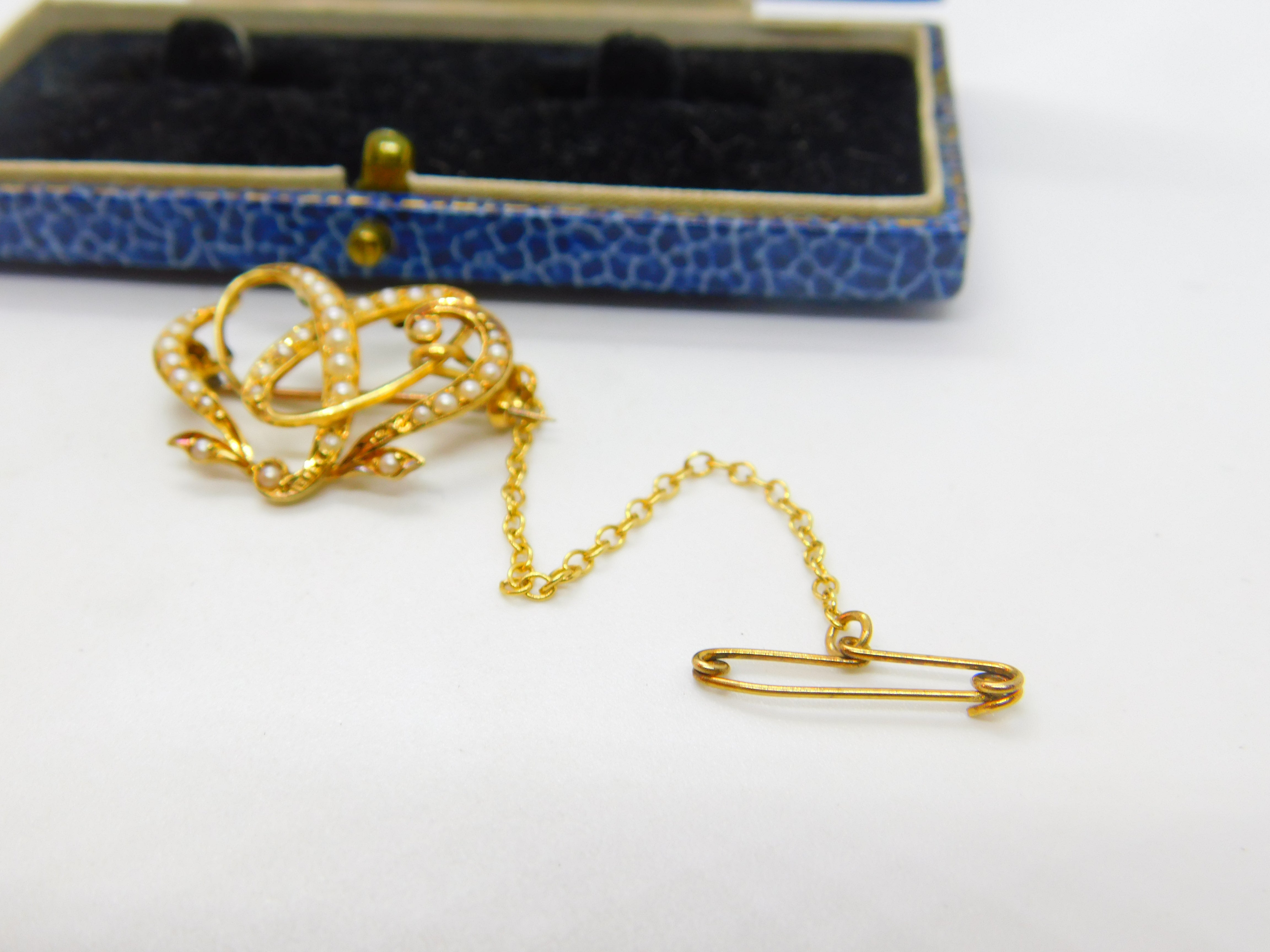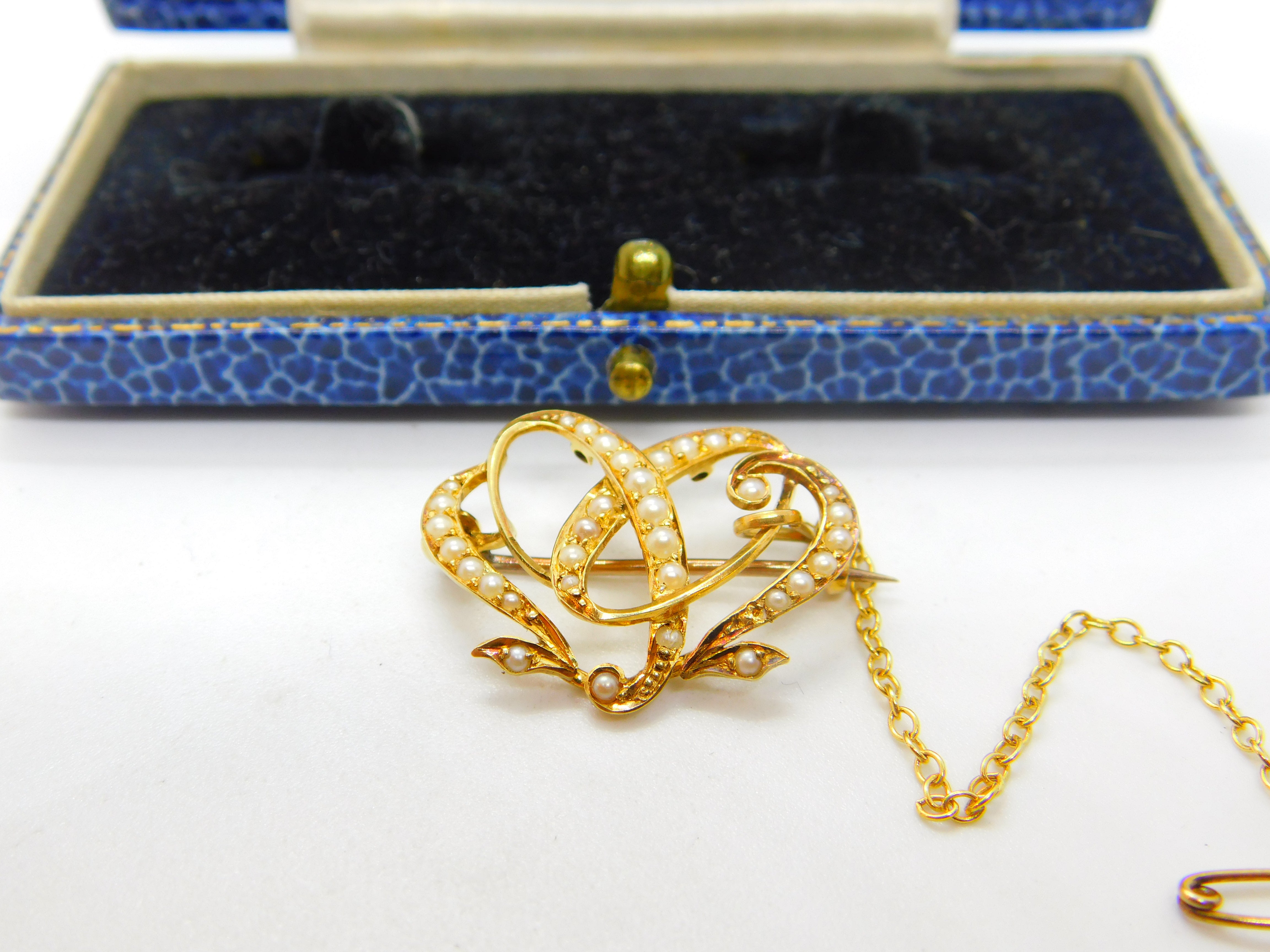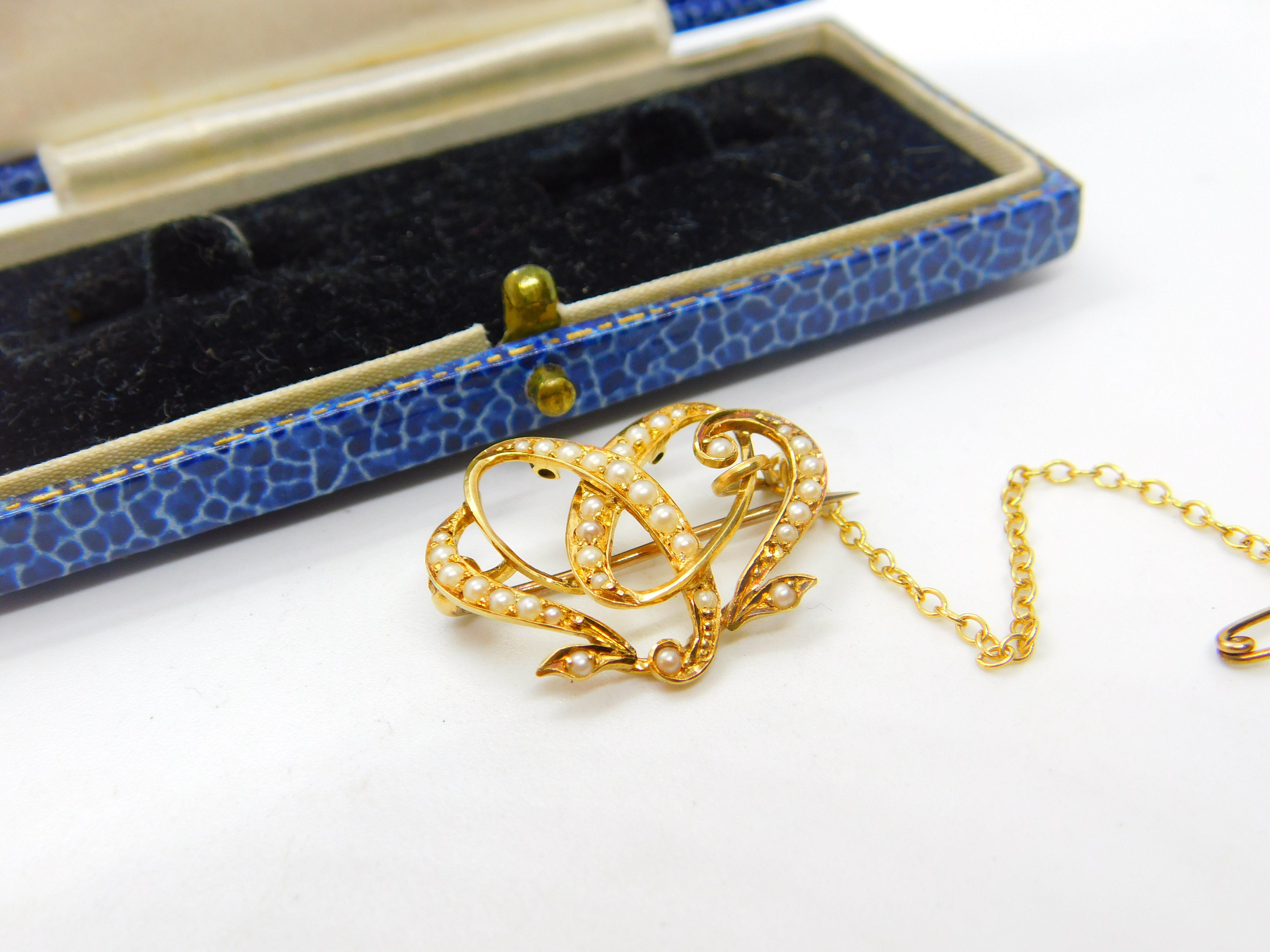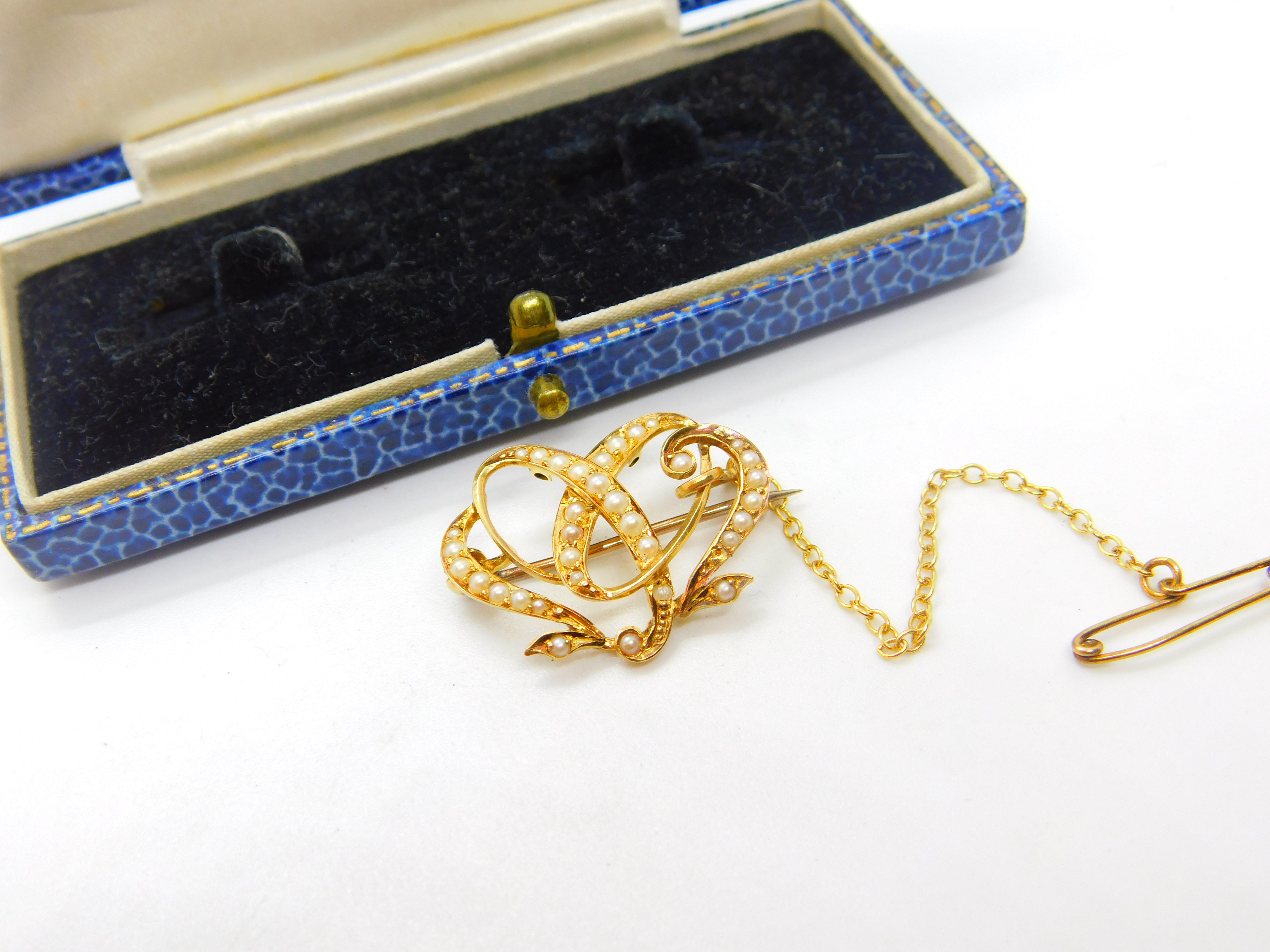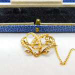 Victorian 15ct Yellow Gold & Seed Pearl Sweetheart Brooch Antique c1880 Art Nouveau