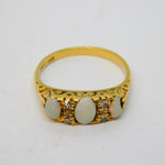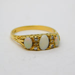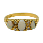 Victorian 18ct Gold, Three-Stone Opal & Diamond Boat Ring Antique c1880