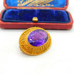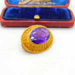 Victorian 18ct Yellow Gold & Amethyst Set Etruscan Style Brooch Antique c1880