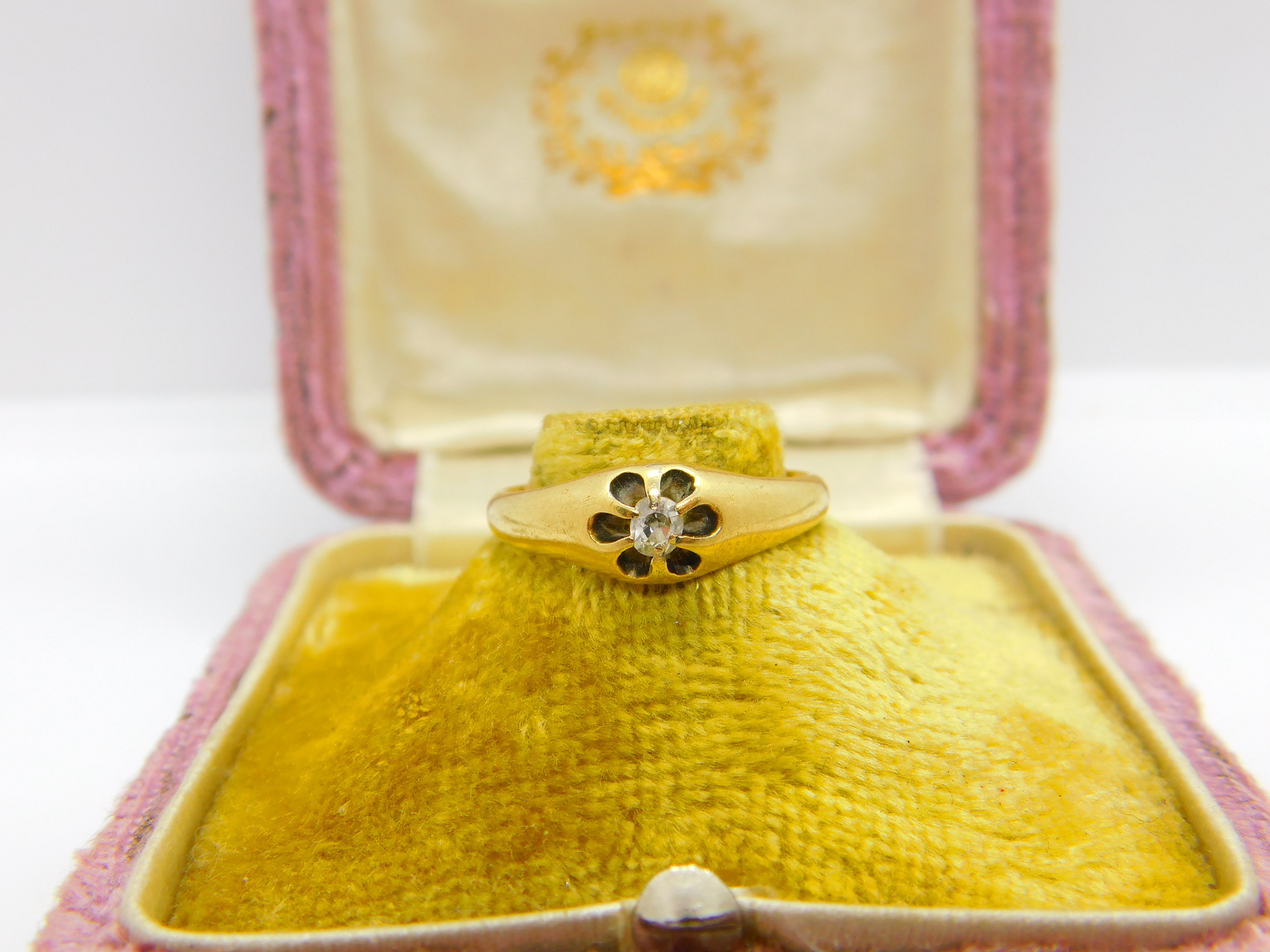 Details: A fantastic and wonderfully designed antique Victorian 18ct yellow gold and 0.1ct claw set diamond ring marked 18ct to the interior c1900. This is a wonderful item that would make a perfect gift or addition to any collection. The BOX pictured is for PRESENTATION ONLY and is NOT included in the listings but used to frame the pictures unless specifically stated otherwise.