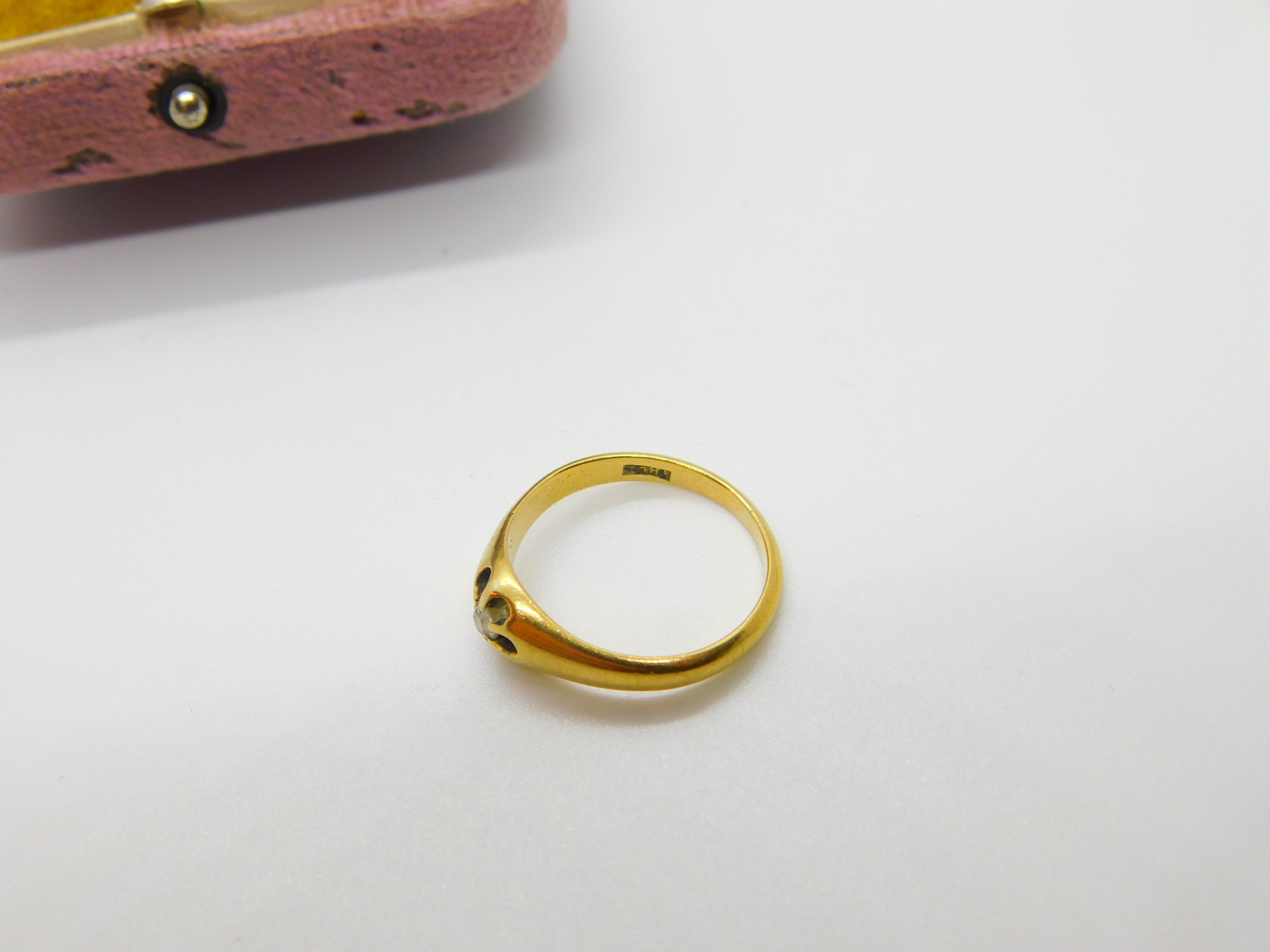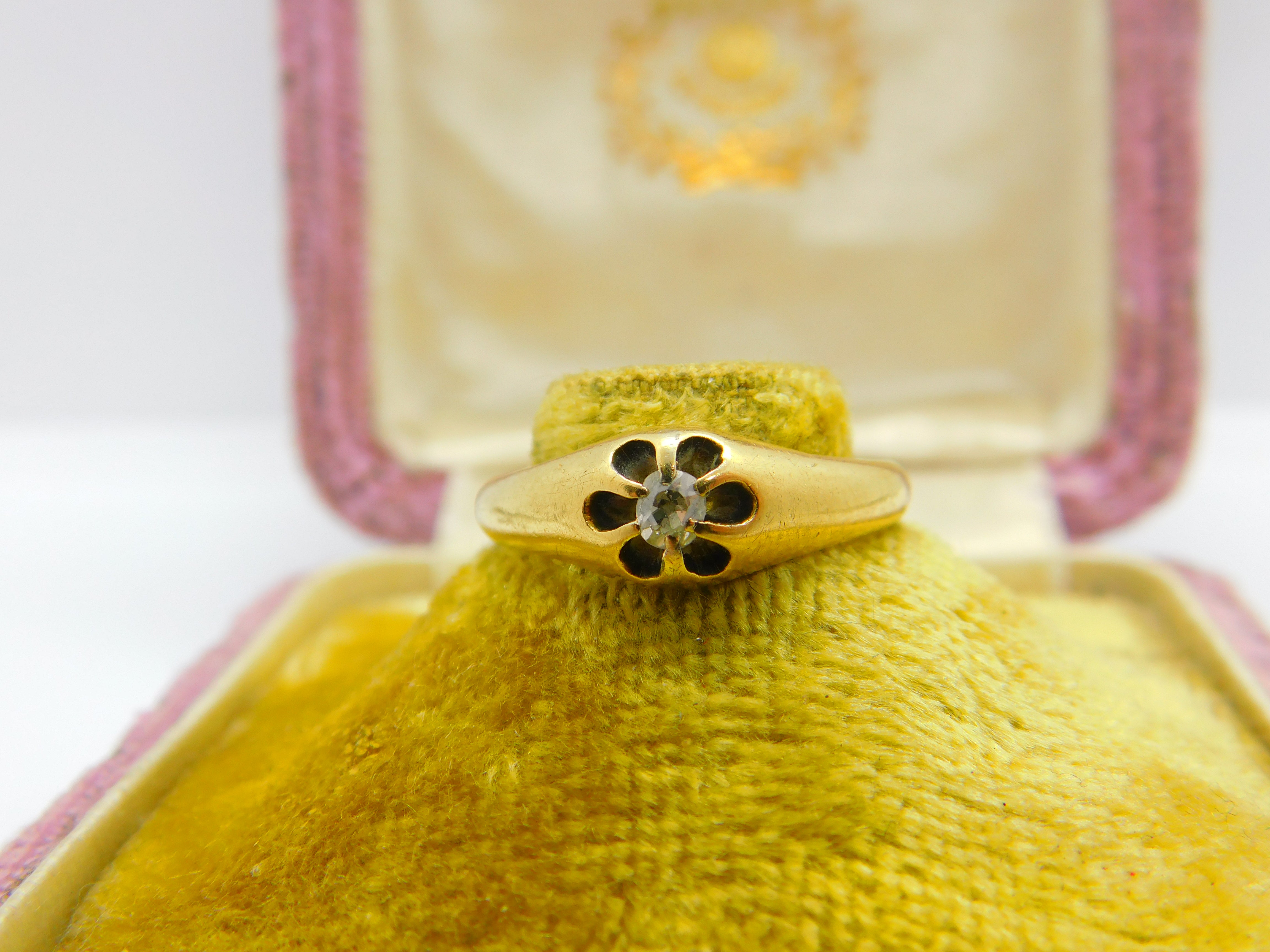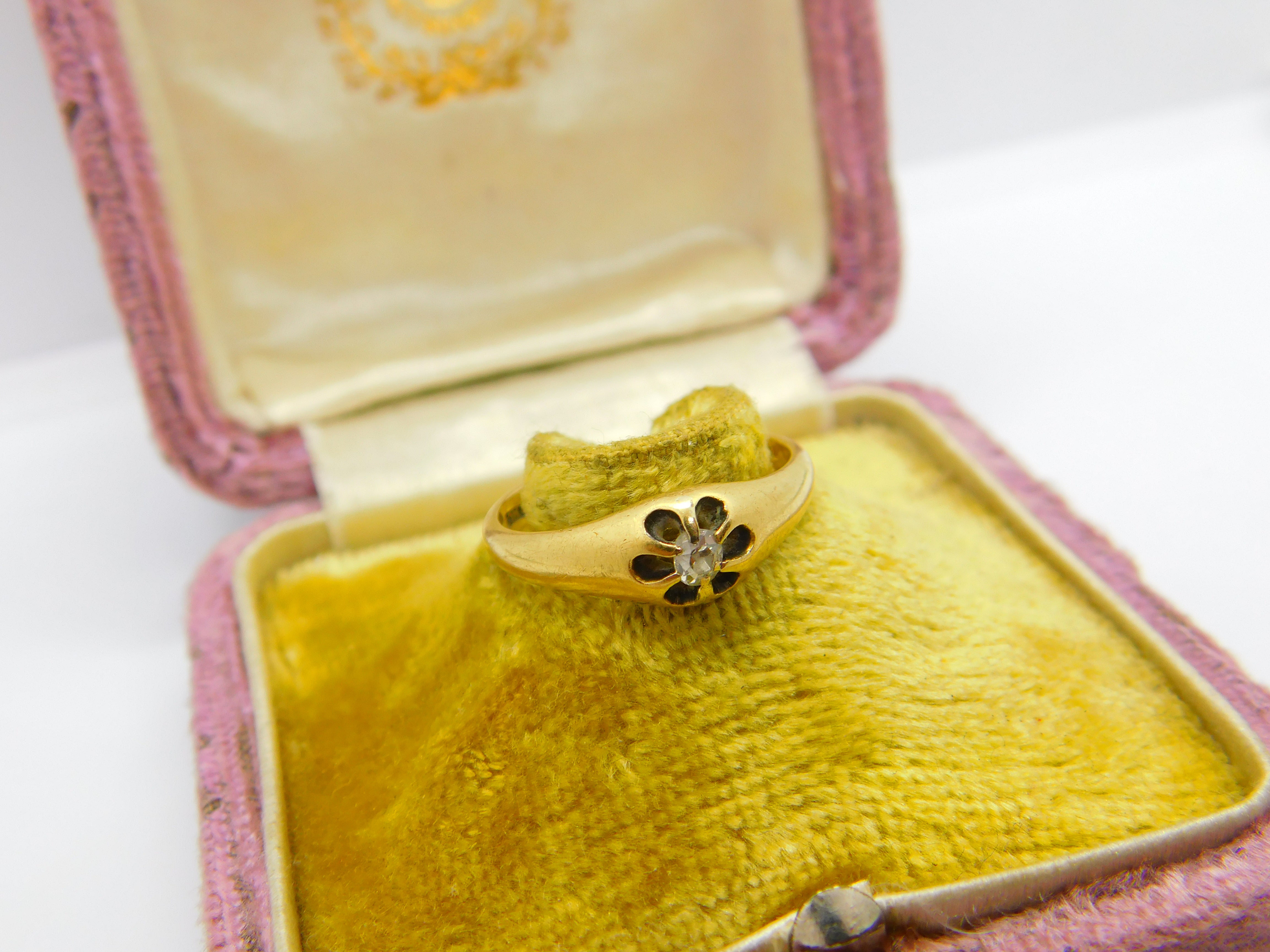 Victorian 18ct Yellow Gold & Claw Set 0.1ct Diamond Band Ring Antique c1900