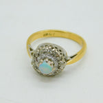 Victorian 18ct Yellow Gold, Opal & Diamond Floral Cluster Ring Antique c1890