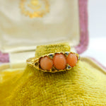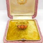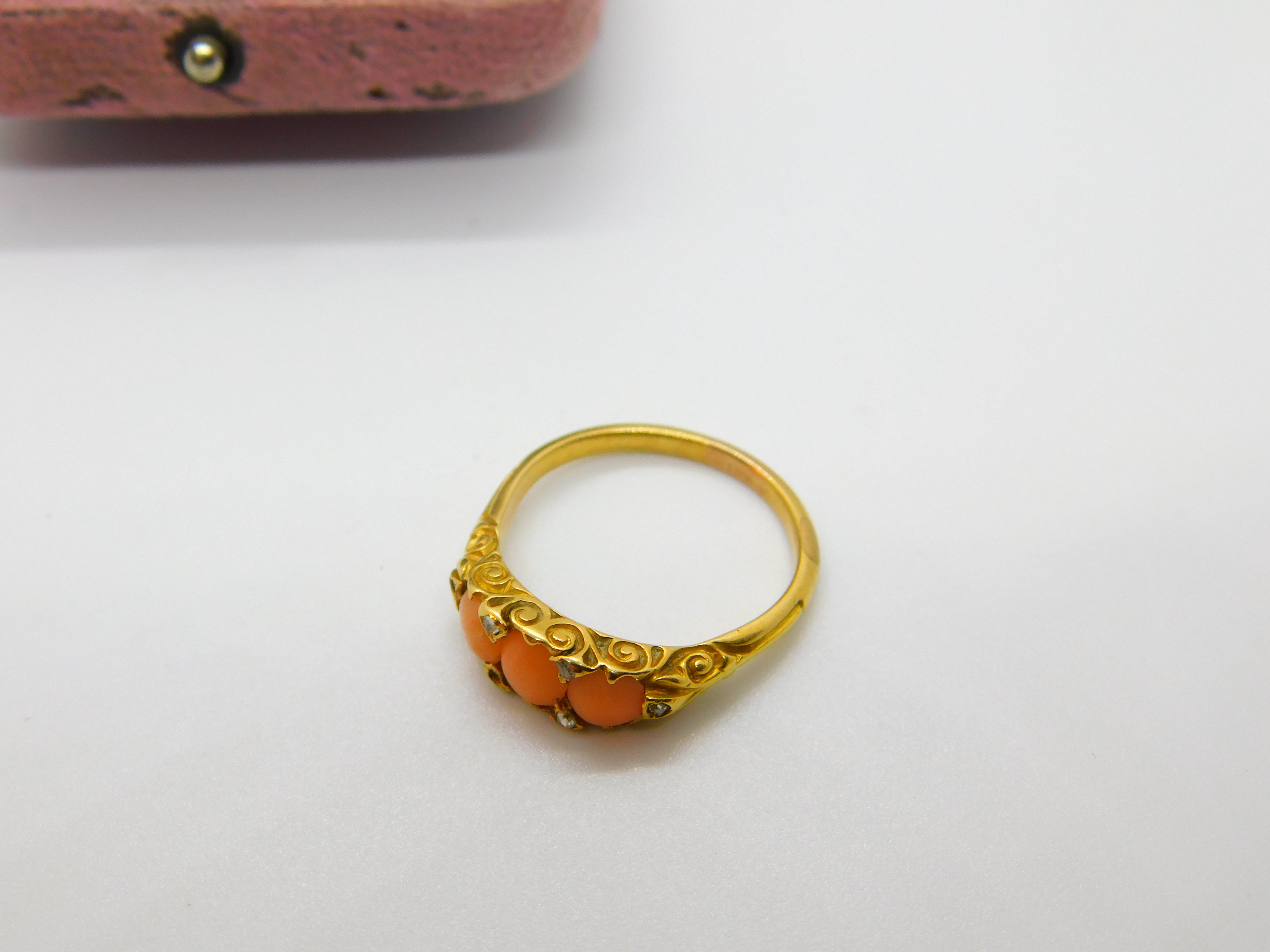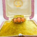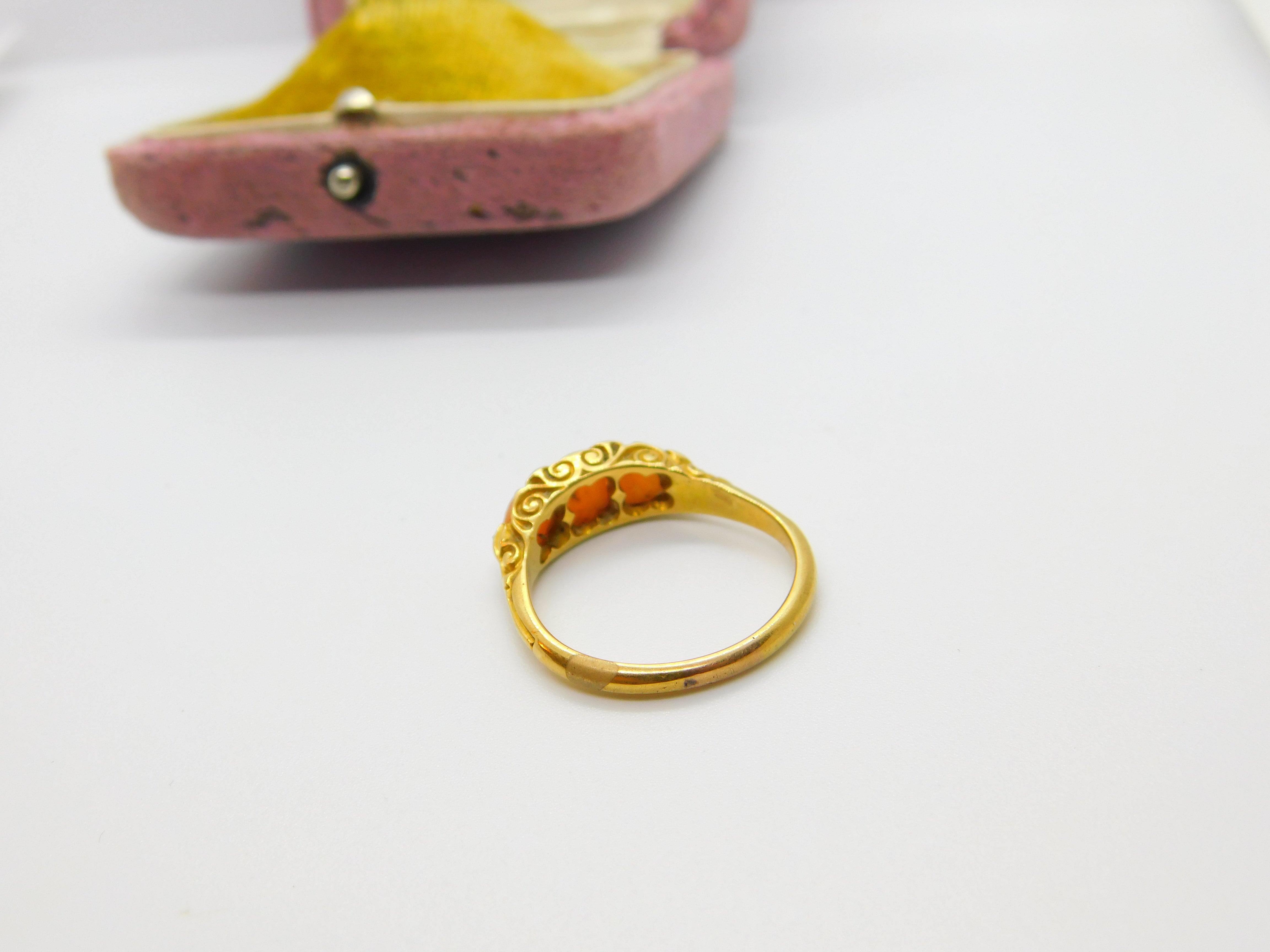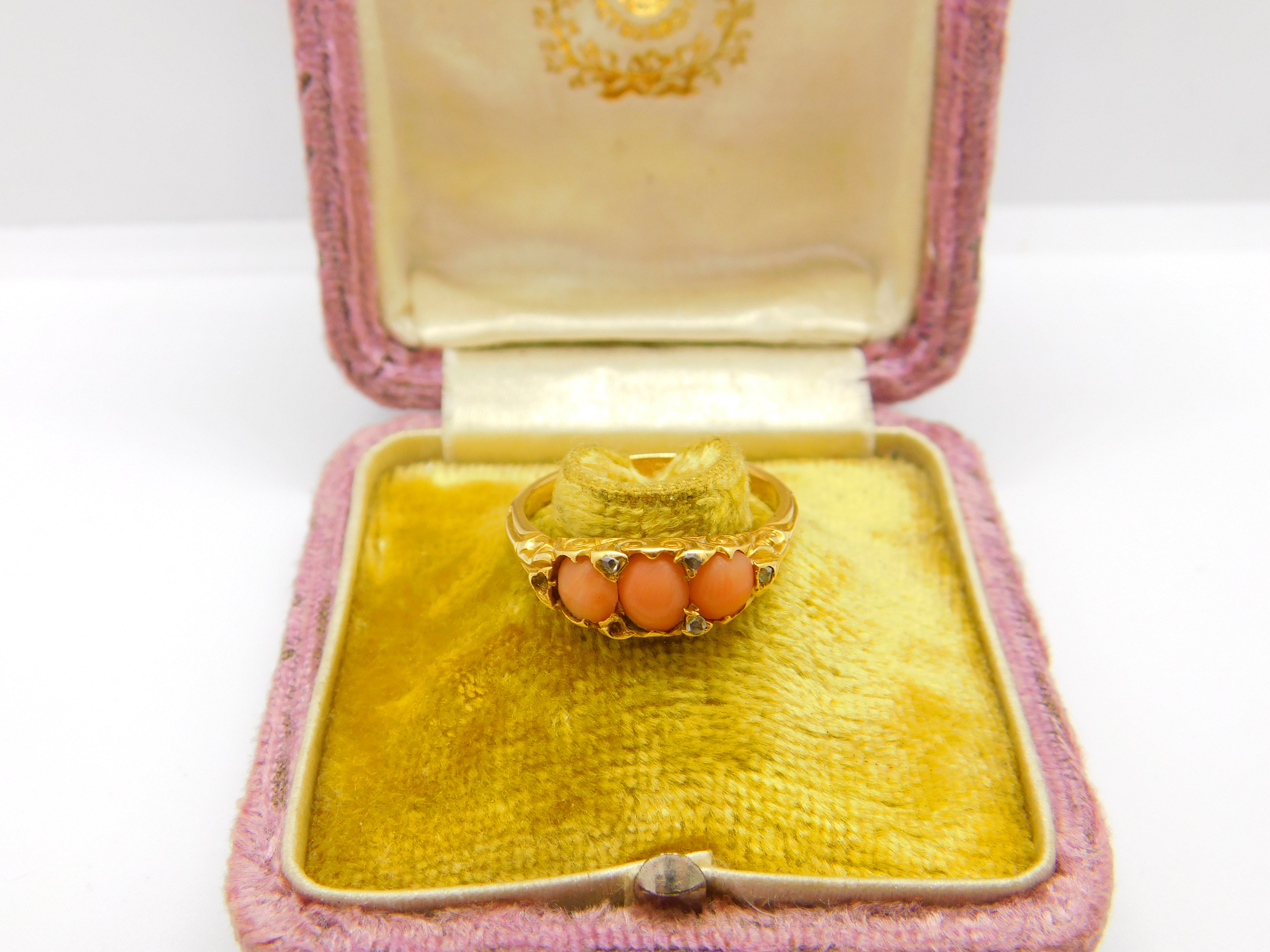 Victorian 18ct Yellow Gold, Red Coral & Diamond Band Ring Antique c1890