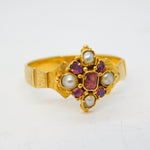 Victorian 18ct Yellow Gold, Ruby & Pearl Set Floral Dress Ring Antique c1860