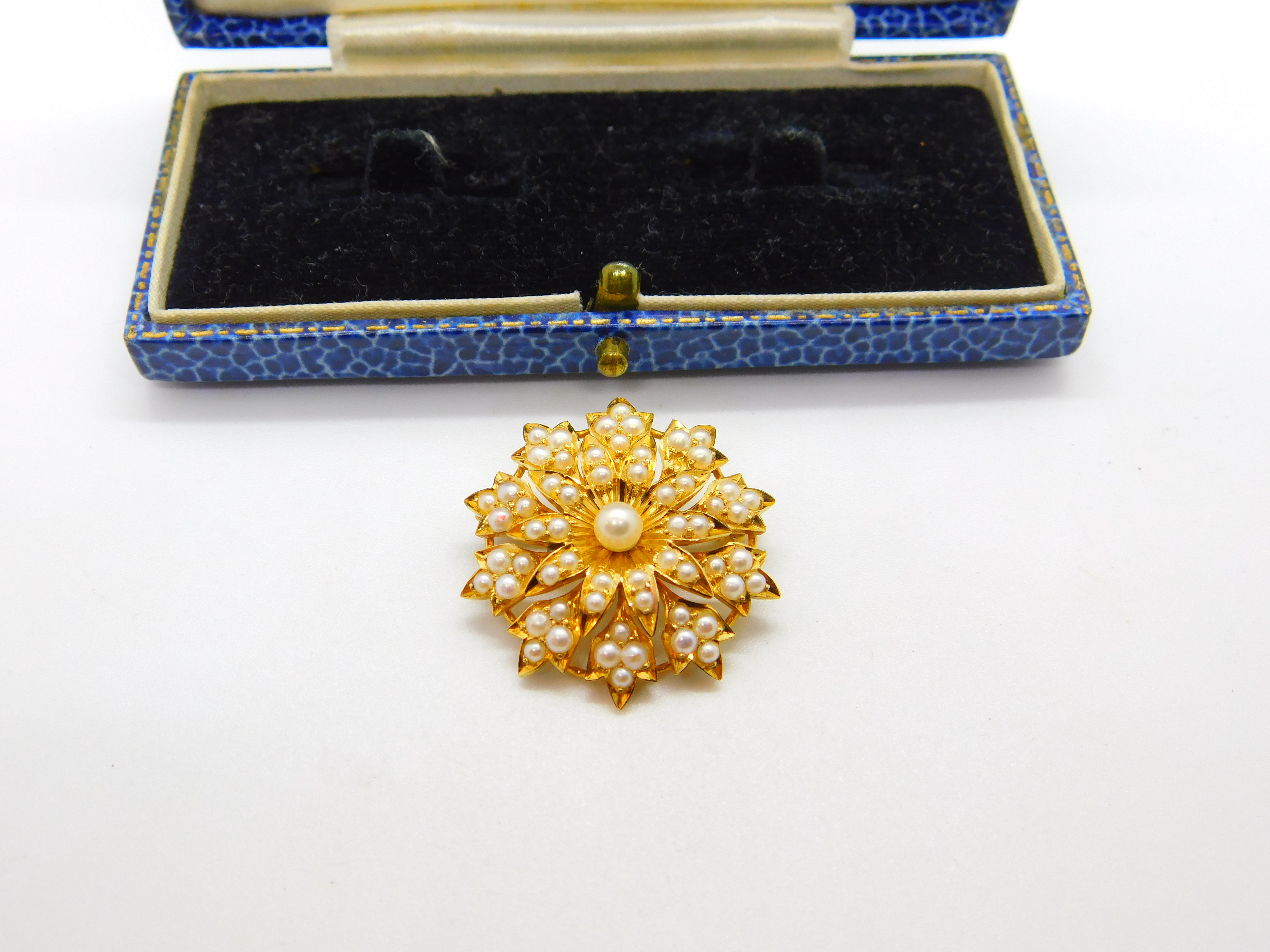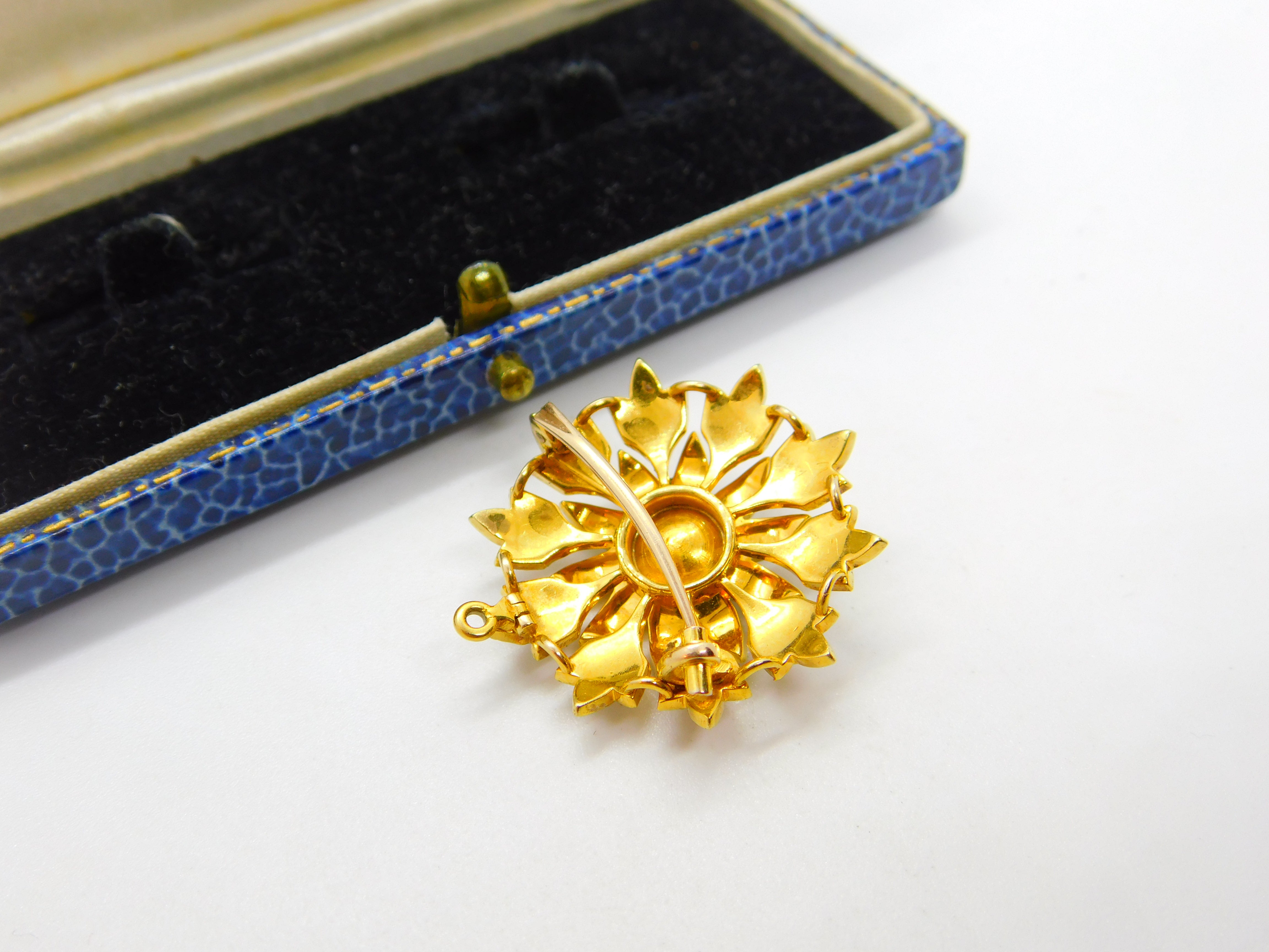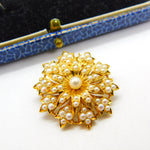 Victorian 18ct Yellow Gold & Seed Pearl Spring Flower Pendant or Brooch Antique c1880