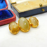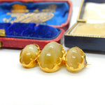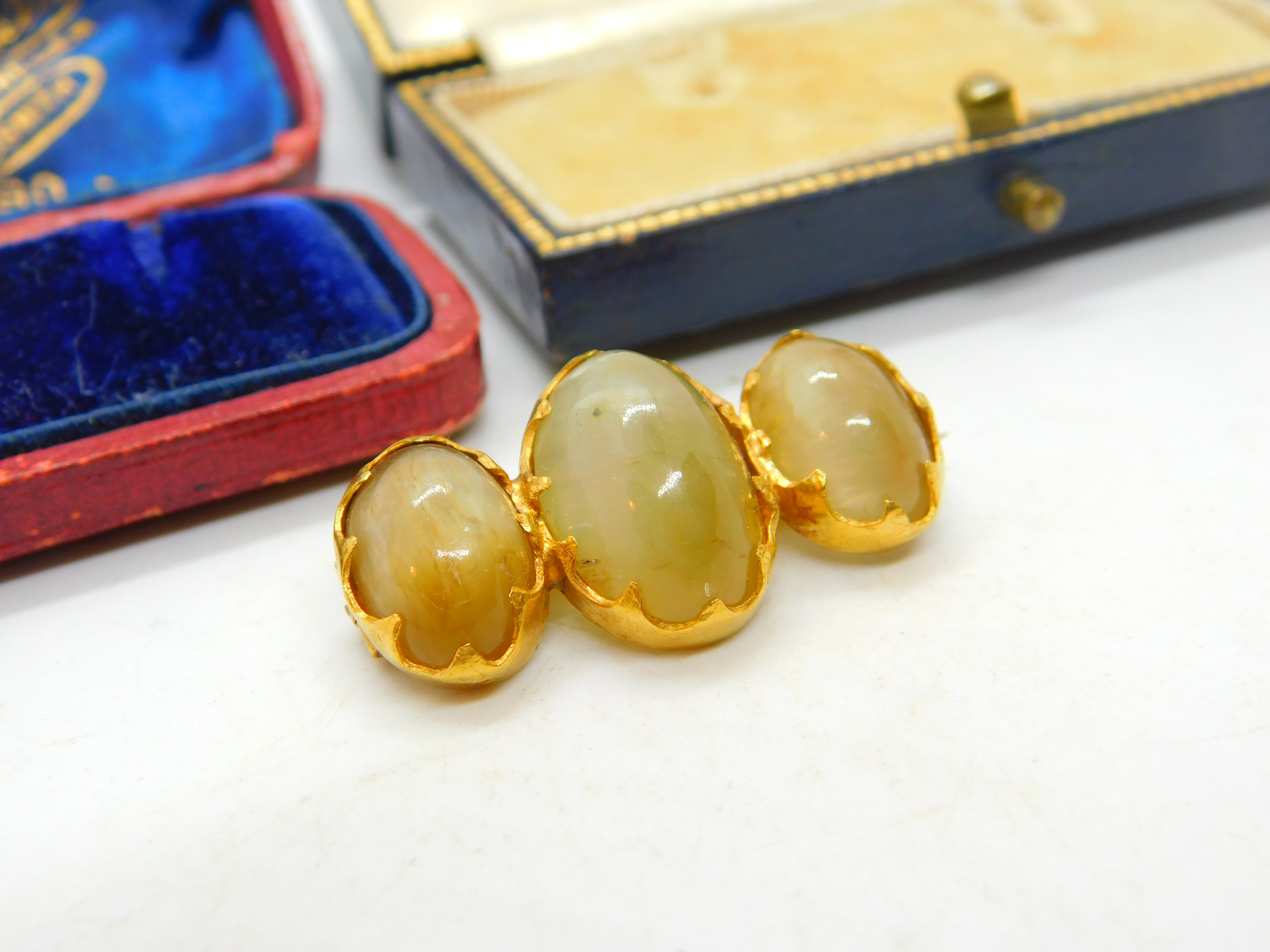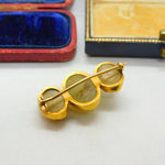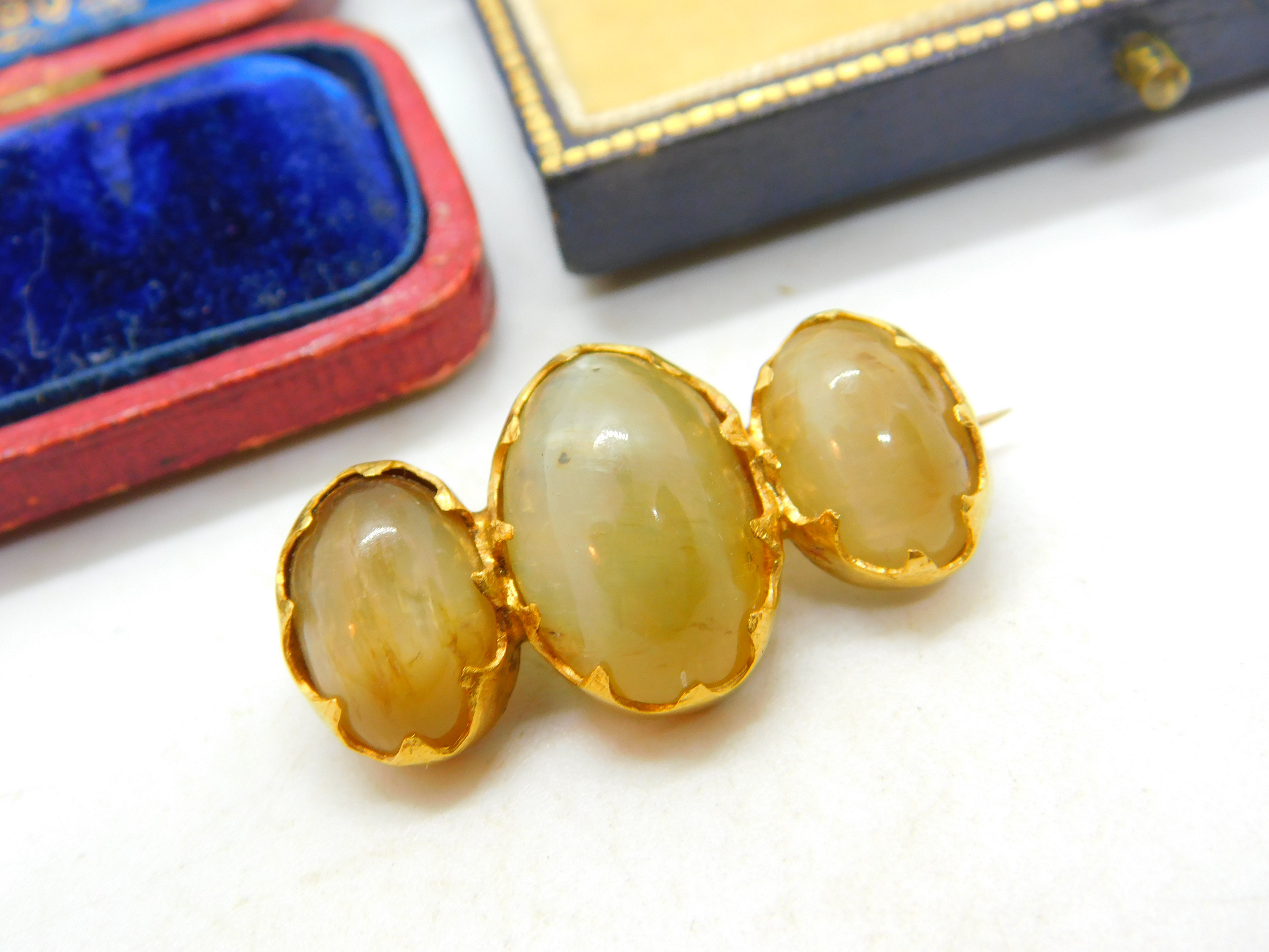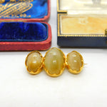 Victorian 18ct Yellow Gold & Triple Cabochon Cats Eye Brooch Antique c1860