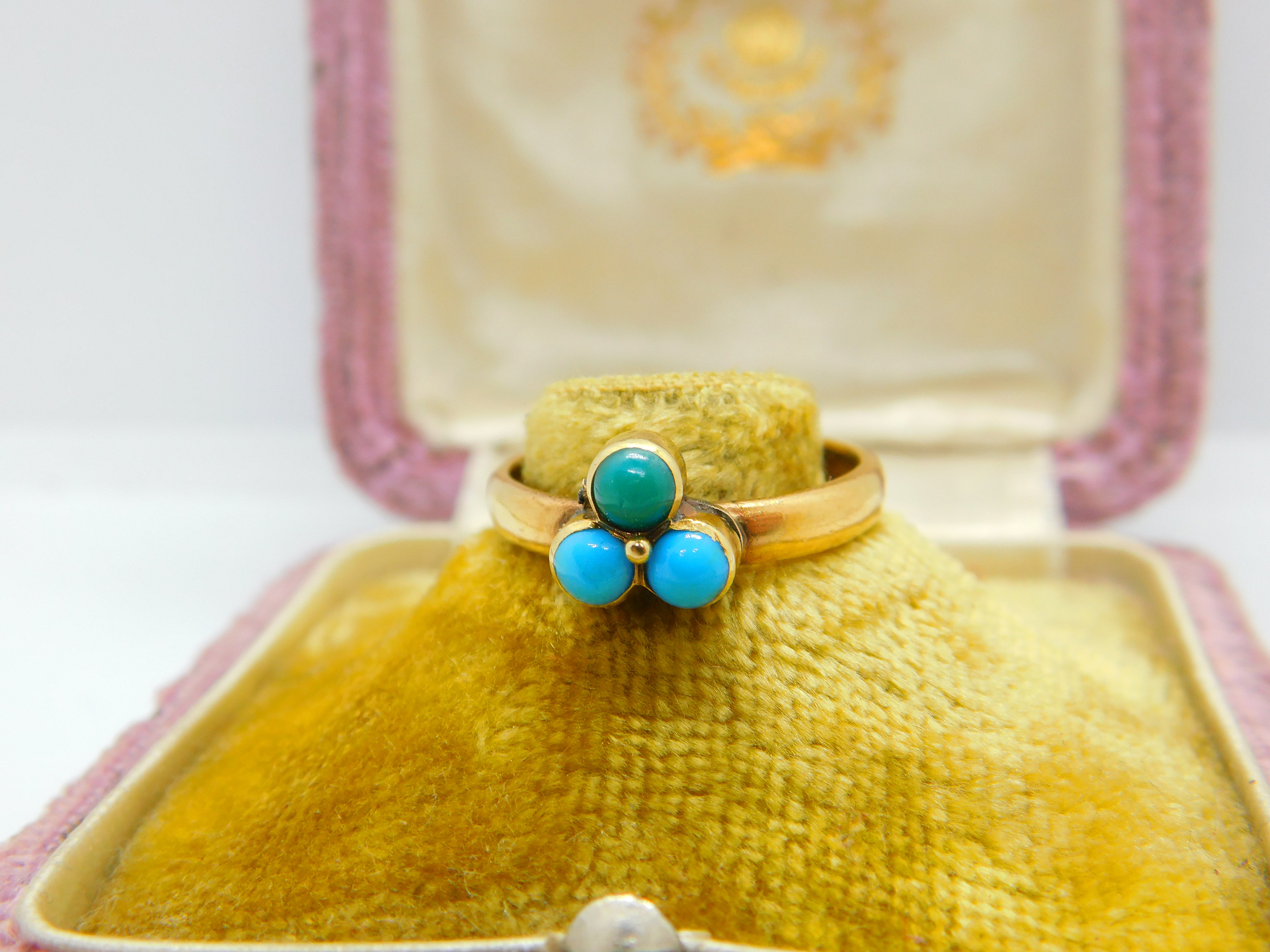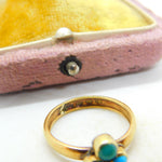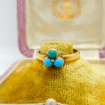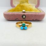 Victorian 22ct Yellow Gold & Turquoise Lucky Clover Ring Antique c1880 Sheffield