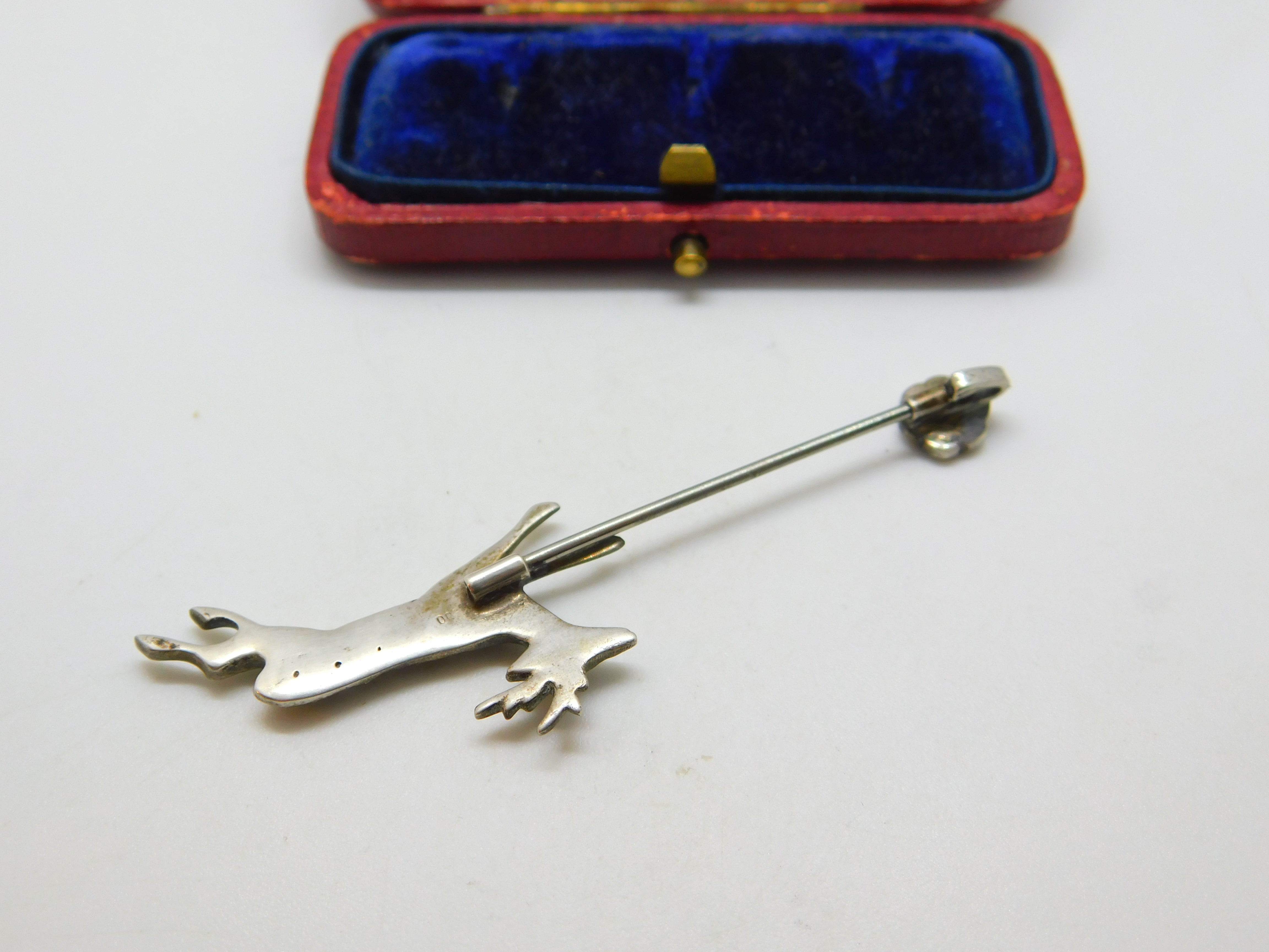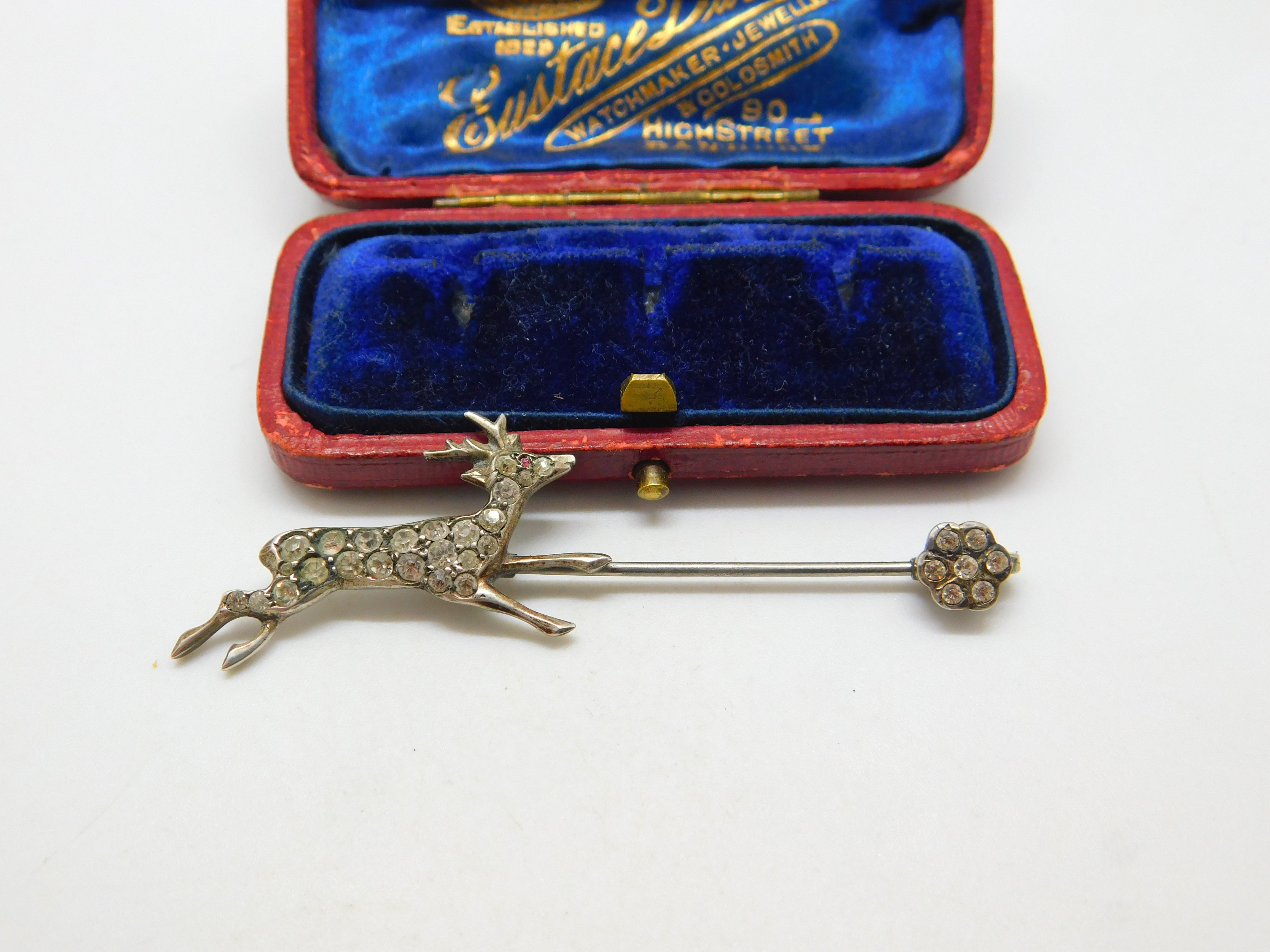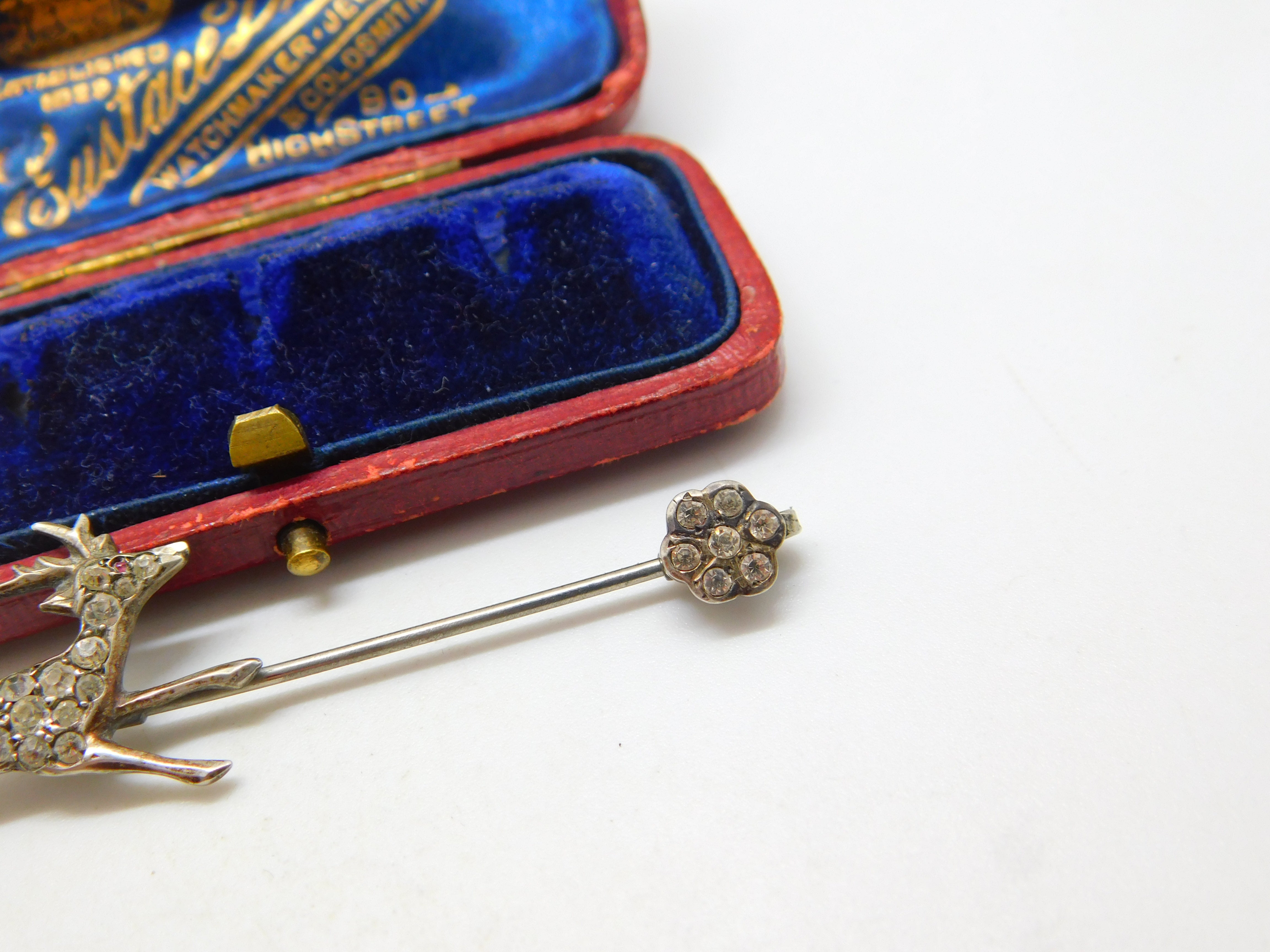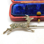 Details: A fantastic and wonderfully designed antique Victorian 900 grade silver and diamond paste brooch pin in the form of a deer running for a flower marked 900 to the reverse c1880. This is a wonderful item that would make a perfect gift or addition to any collection. The BOX pictured is for PRESENTATION ONLY and is NOT included in the listings but used to frame the pictures unless specifically stated otherwise.
