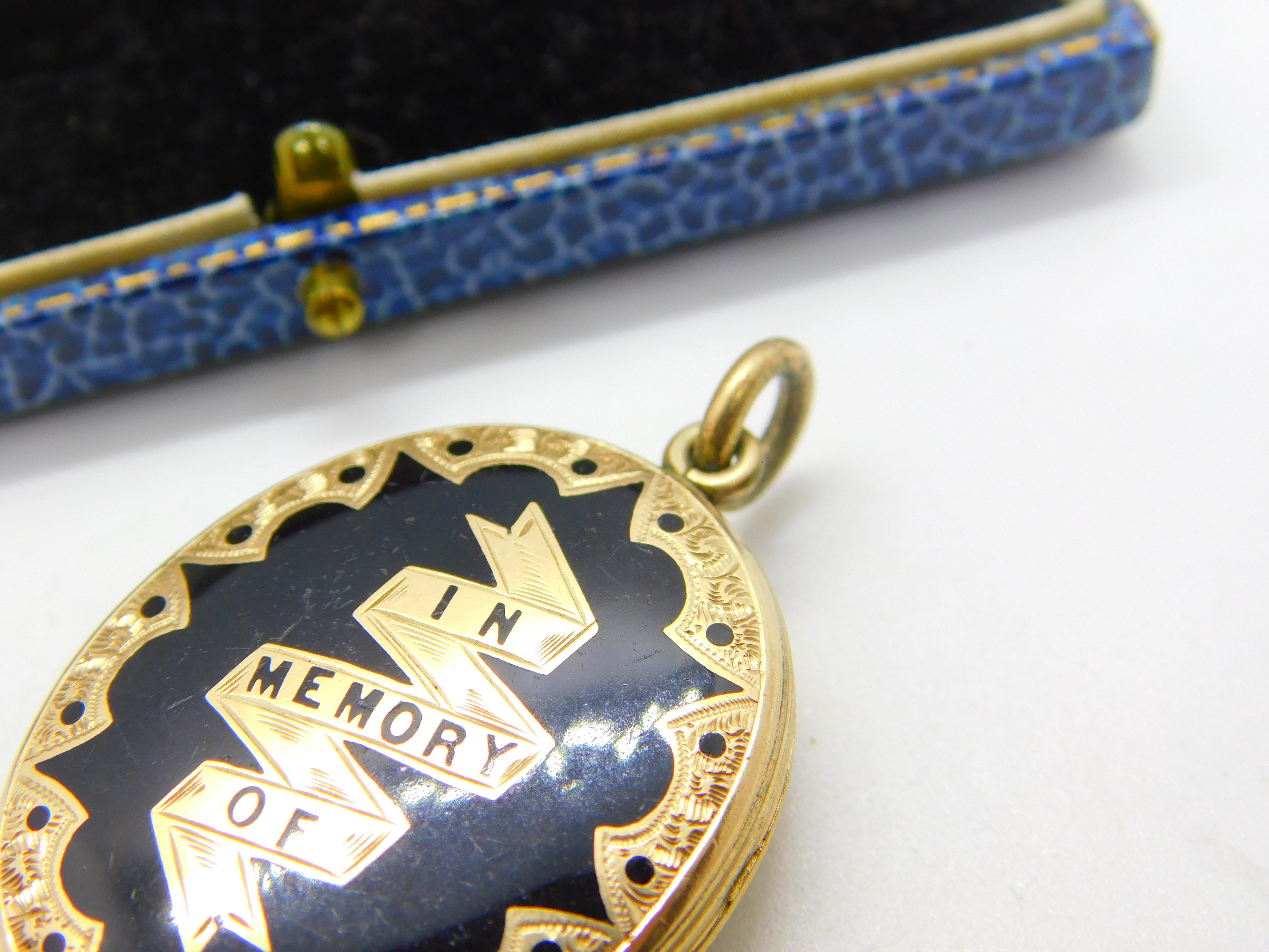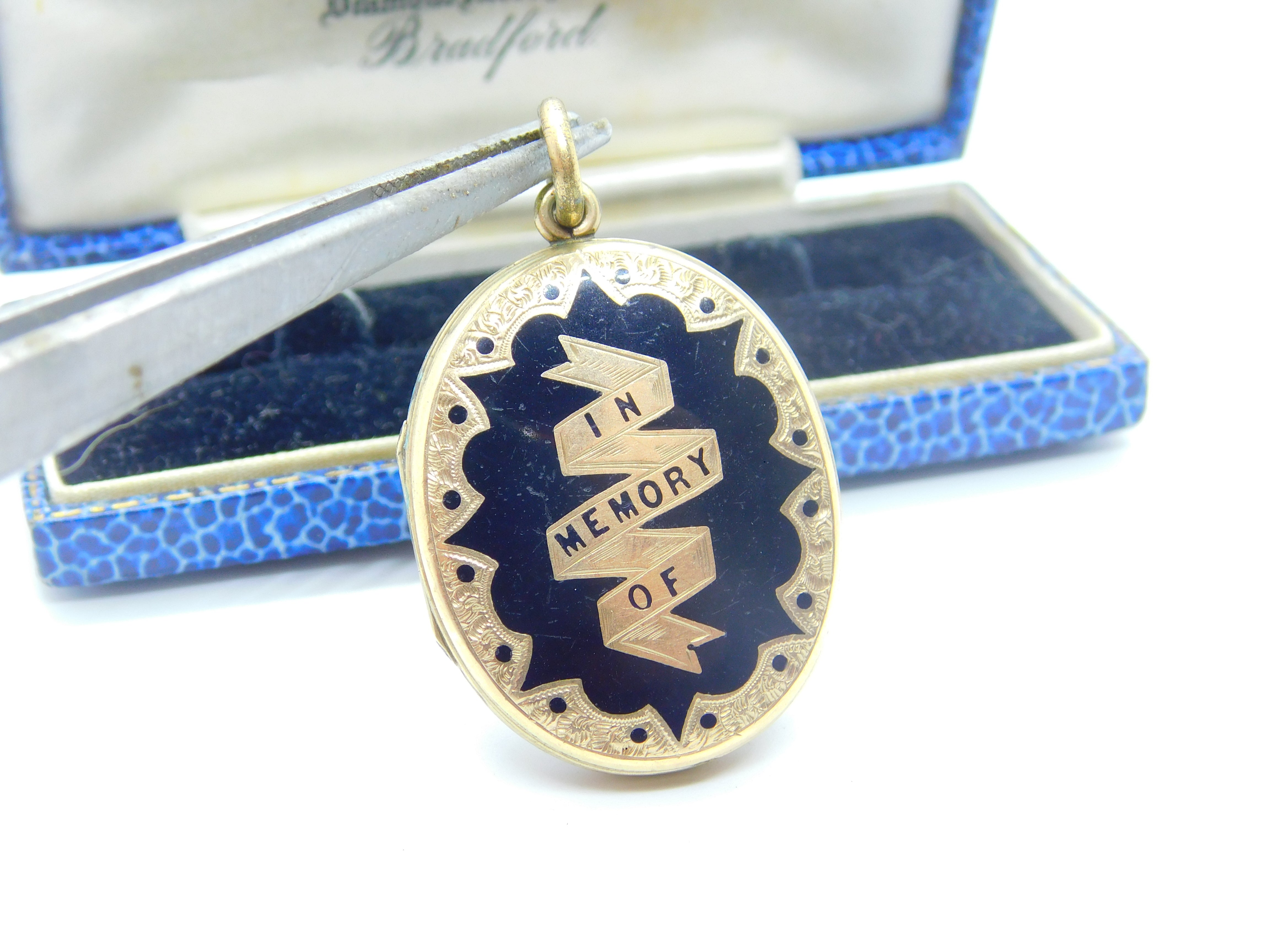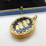 Victorian 9ct Gold Back & Front Black Enamel 'In Memory Of' Mourning Locket