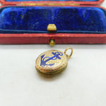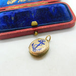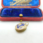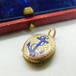 Victorian 9ct Gold Back & Front Blue Enamel Anchor Of Hope Mourning Locket c1880
