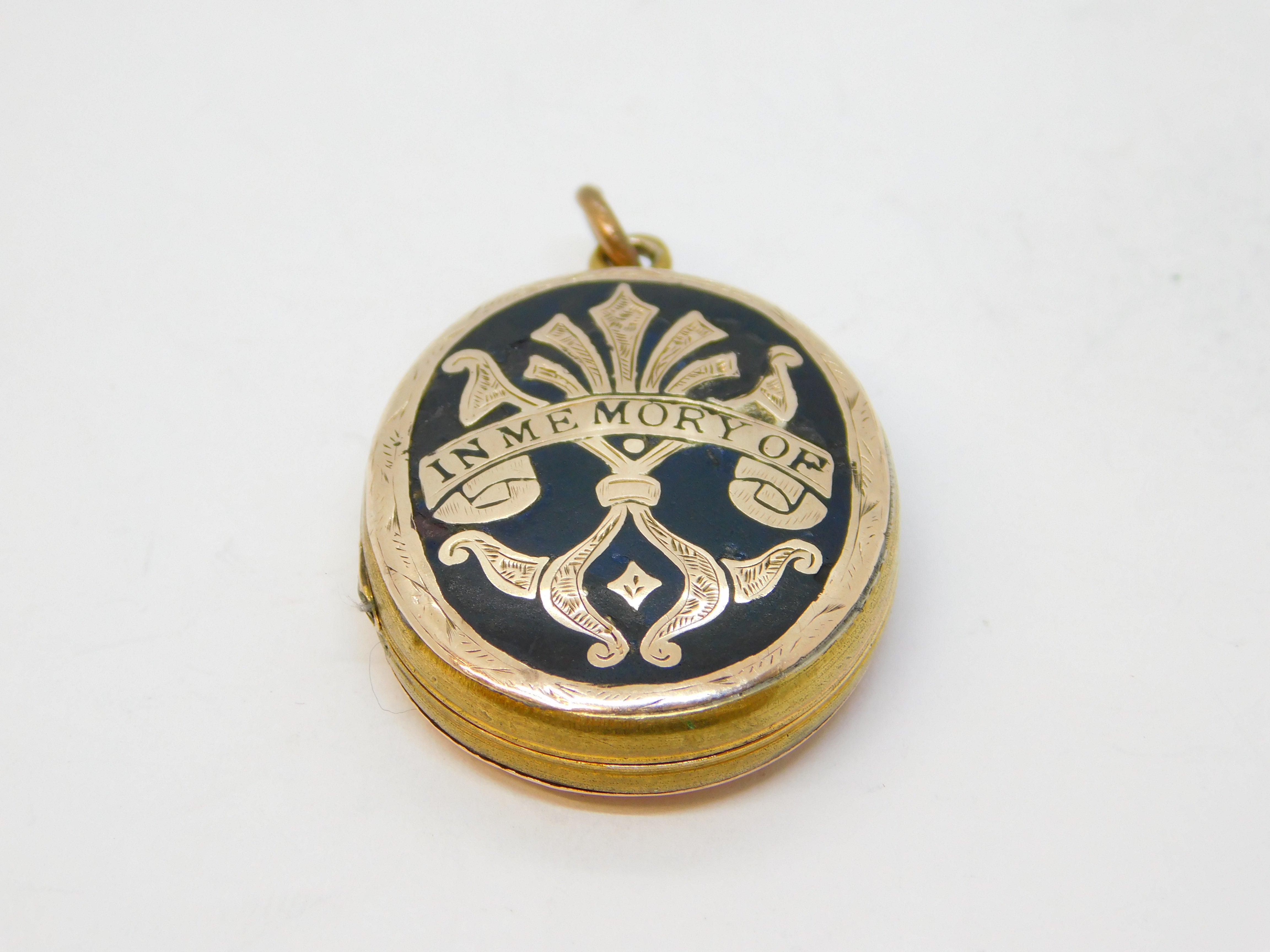 Victorian 9ct Gold Back & Front Enamel 'In Memory Of' Mourning Locket Antique