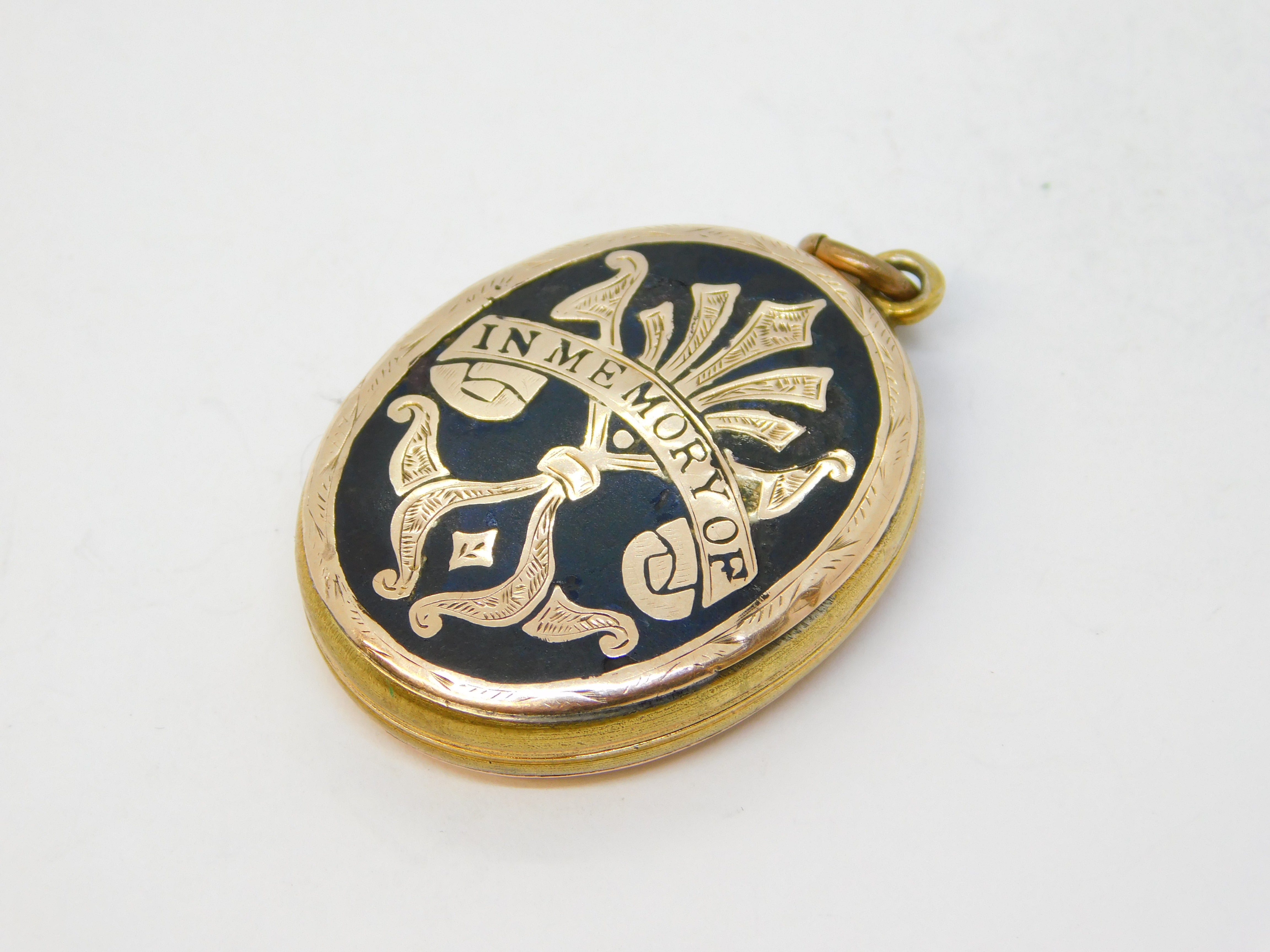 Details: A fantastic and wonderfully designed antique Victorian 9ct yellow gold back & front black enamel In Memory Of mourning locket pendant with lovely detailing c1860, the gold has been XRF tested as it is unmarked.This is a wonderful item that would make a perfect gift or addition to any collection. We are more than happy to provide XRF reports for items upon request.