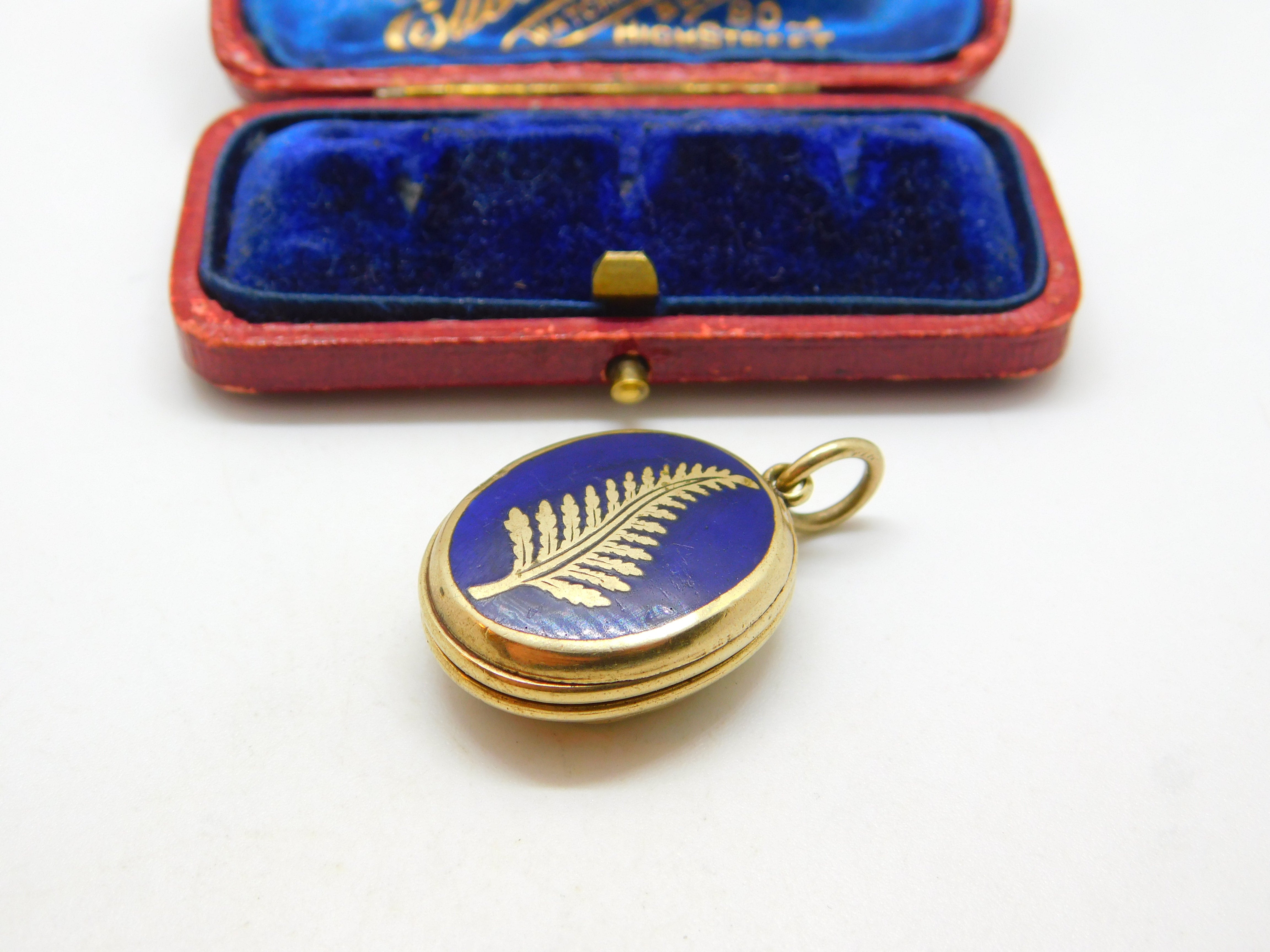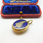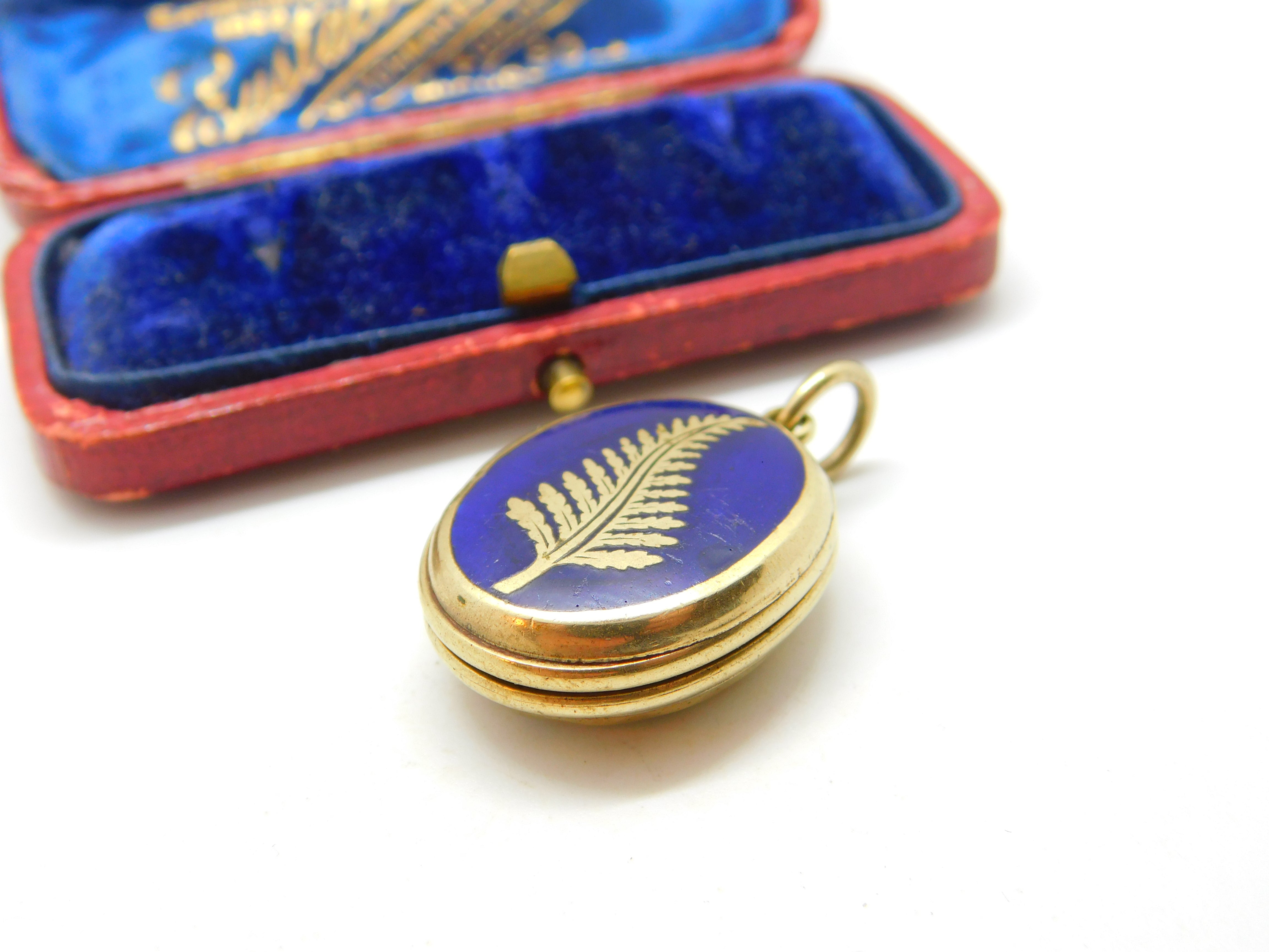 Victorian 9ct Gold Back & Front Fern Leaf Enamel Locket Antique c1890 Good Luck