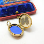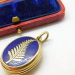 Details: A fantastic and wonderfully designed antique Victorian 9ct gold back and front double locket with charming blue enamel fern leaf to the front and good luck clover to the inside c1890 - the gold has been XRF tested. This is a wonderful item that would make a perfect gift or addition to any collection. The BOX pictured is for PRESENTATION ONLY and is NOT included in the listings but used to frame the pictures unless specifically stated otherwise.