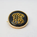 Victorian 9ct Gold, Black-White Enamel, Diamond Set Mourning Brooch Antique c1890