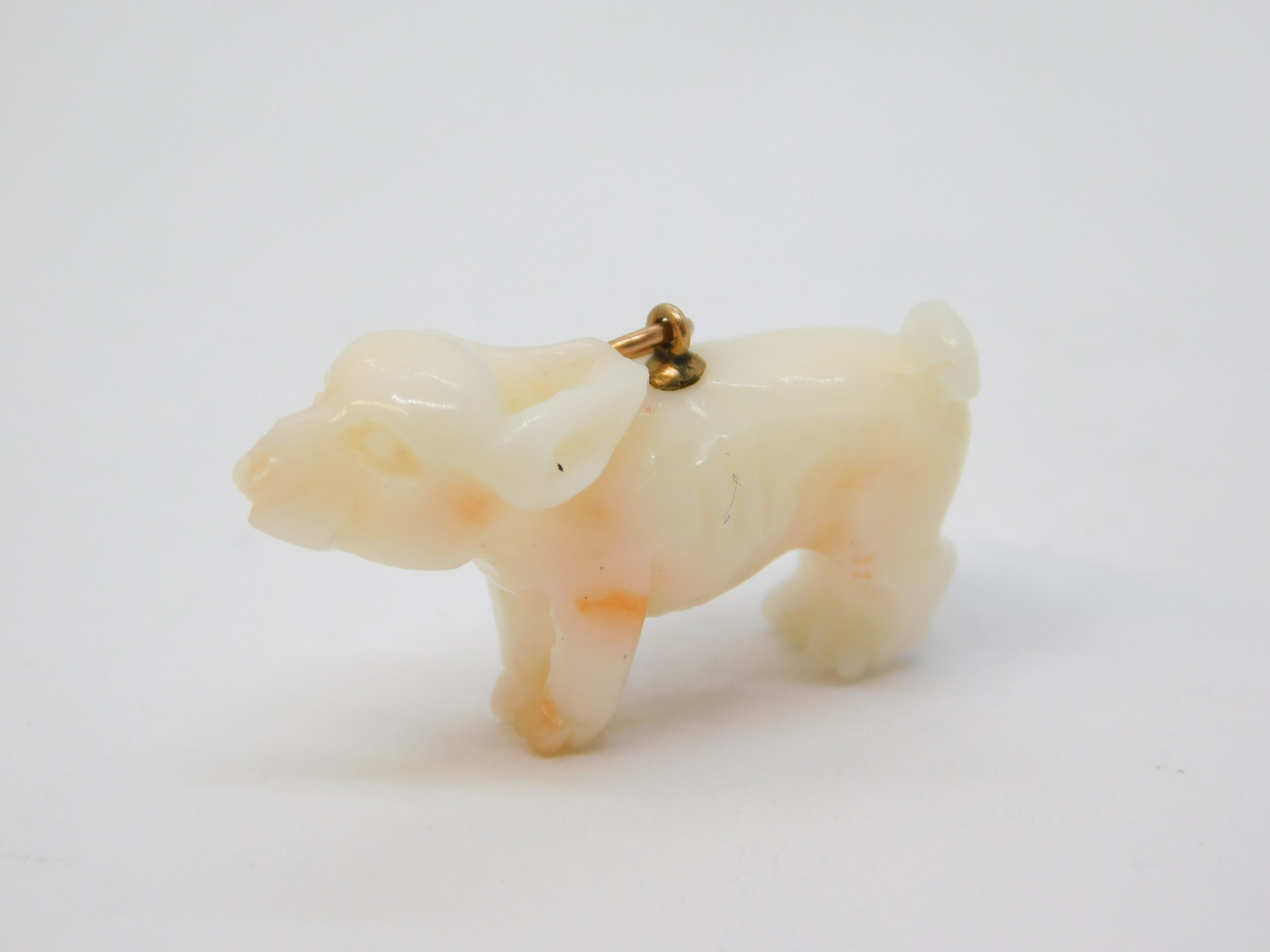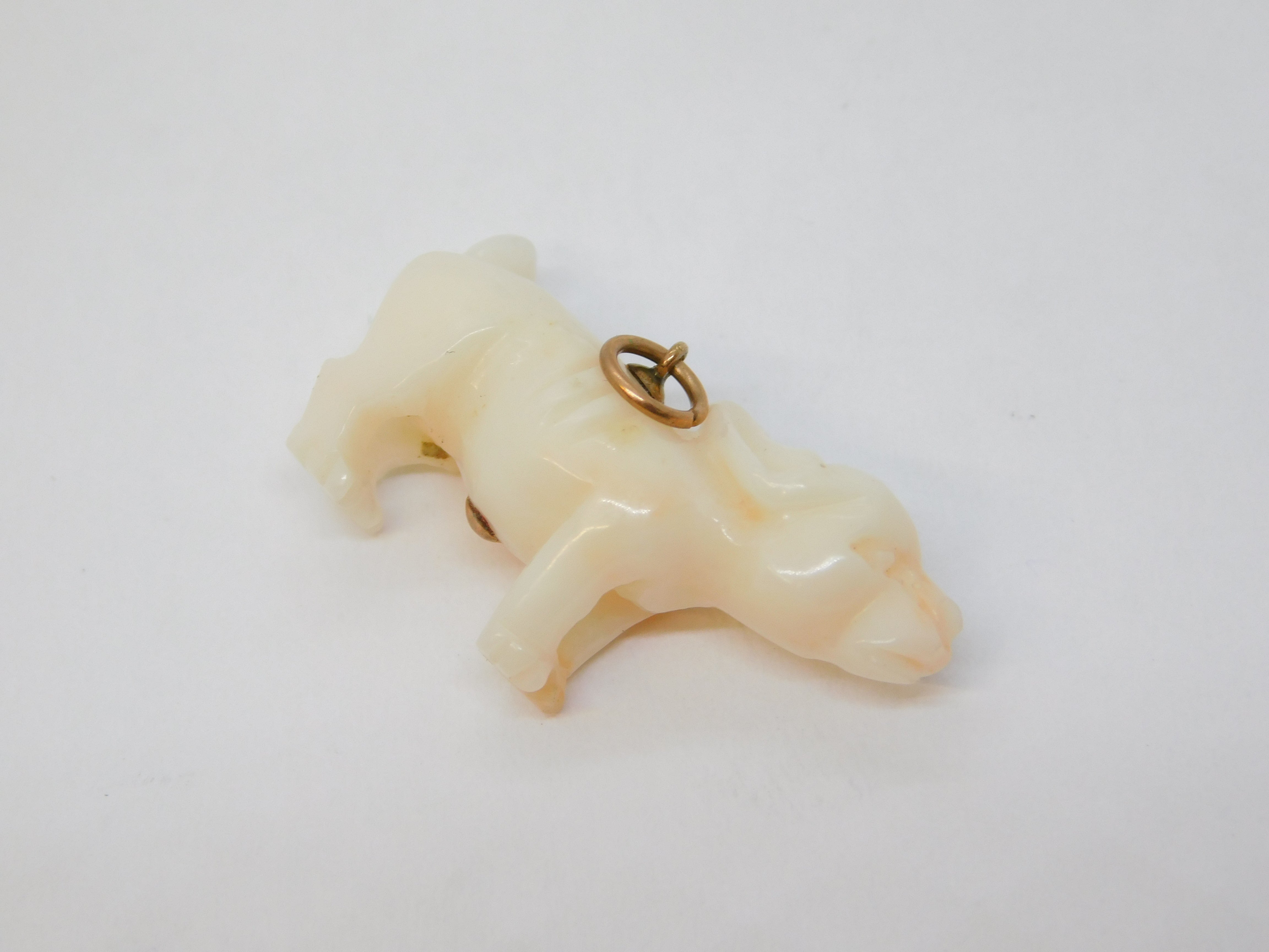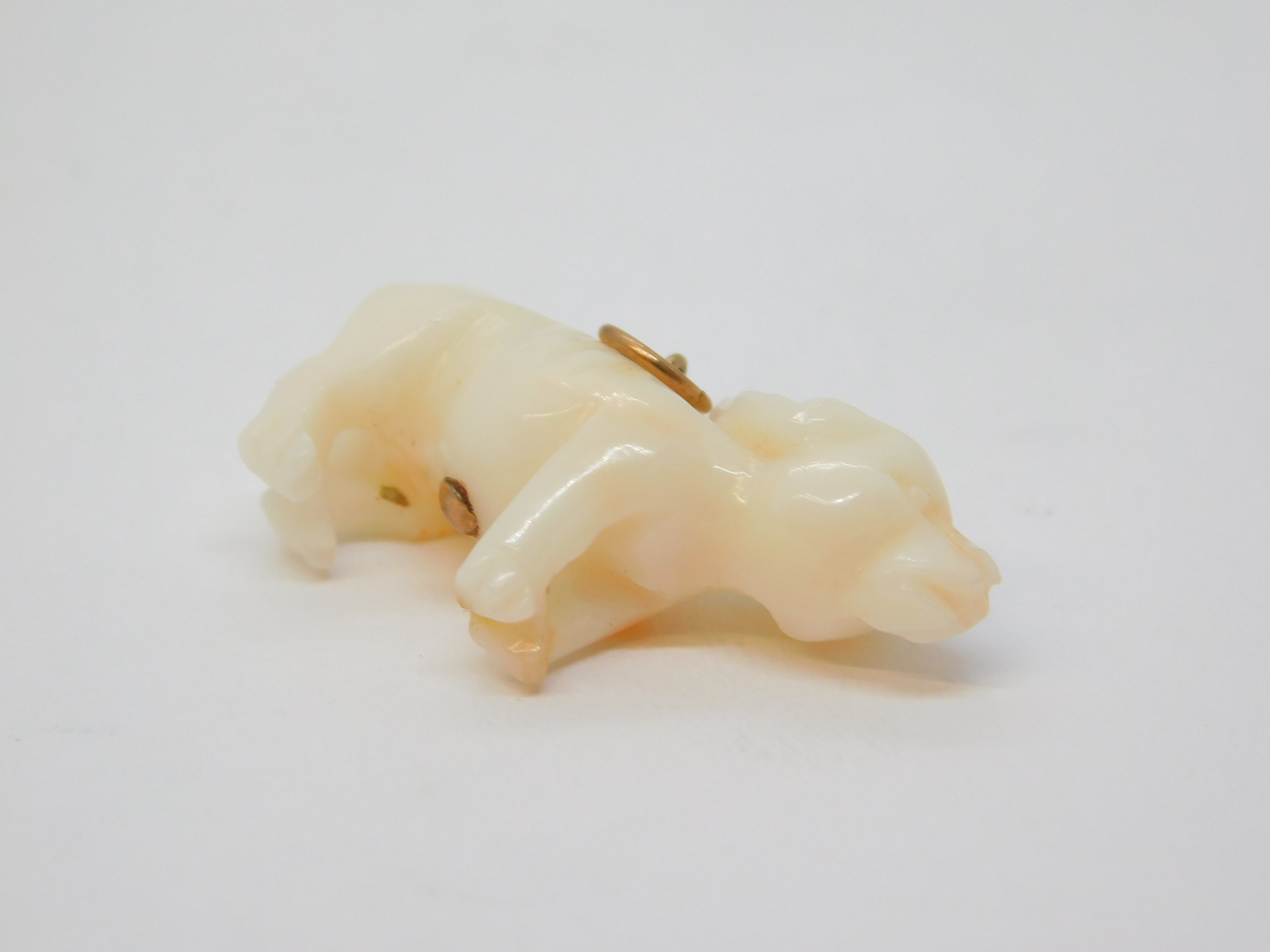Victorian 9ct Gold & Carved Angel-Skin Coral Dog Charm Pendant Antique c1890