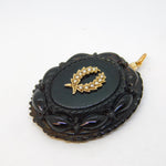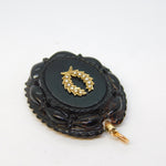 Victorian 9ct Gold Carved Whitby Jet Mourning Locket Pendant Antique c1860