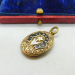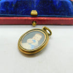 Victorian 9ct Gold & Enamel 'In Memory Of' Watercolour Miniature Locket Antique