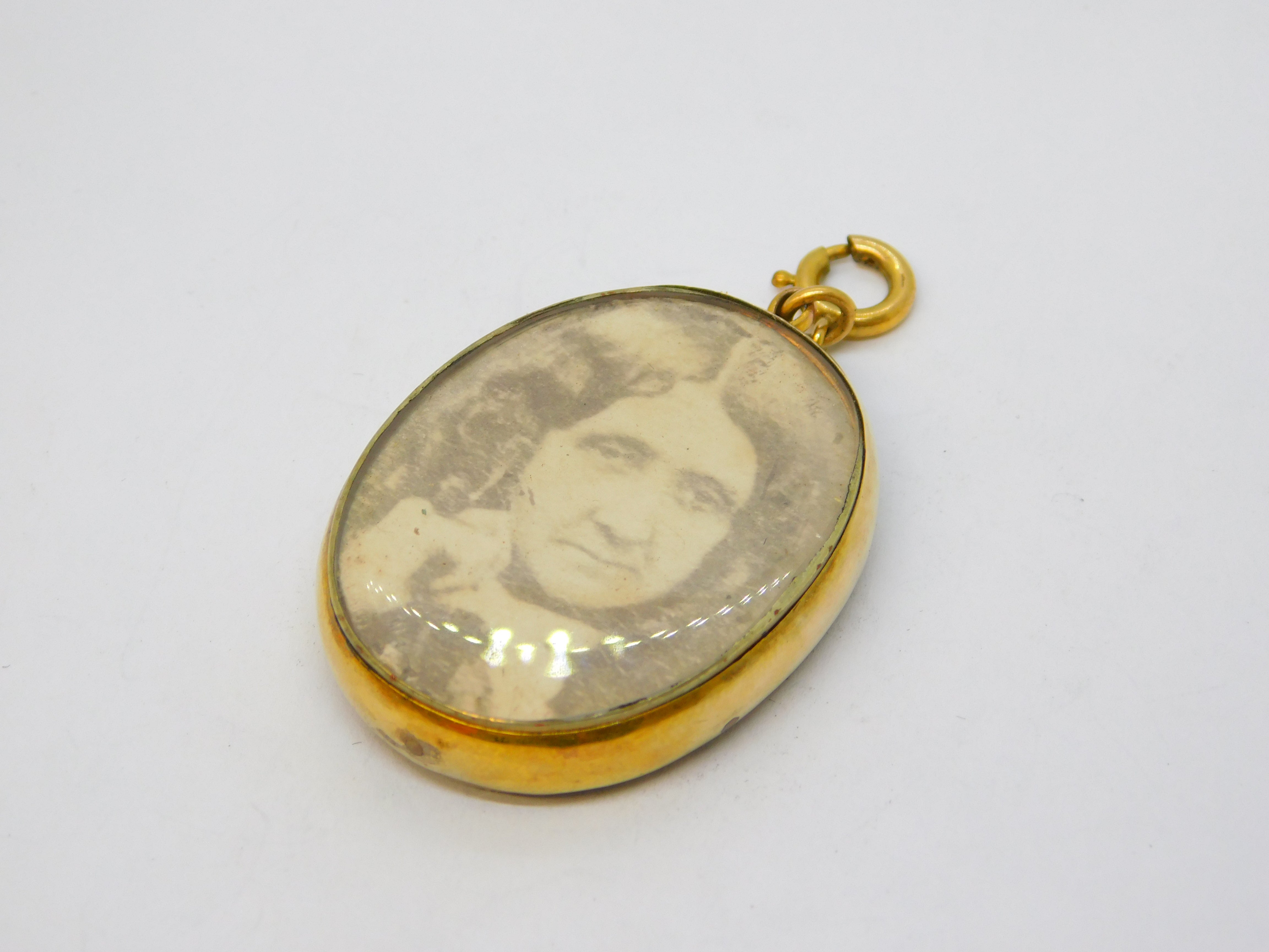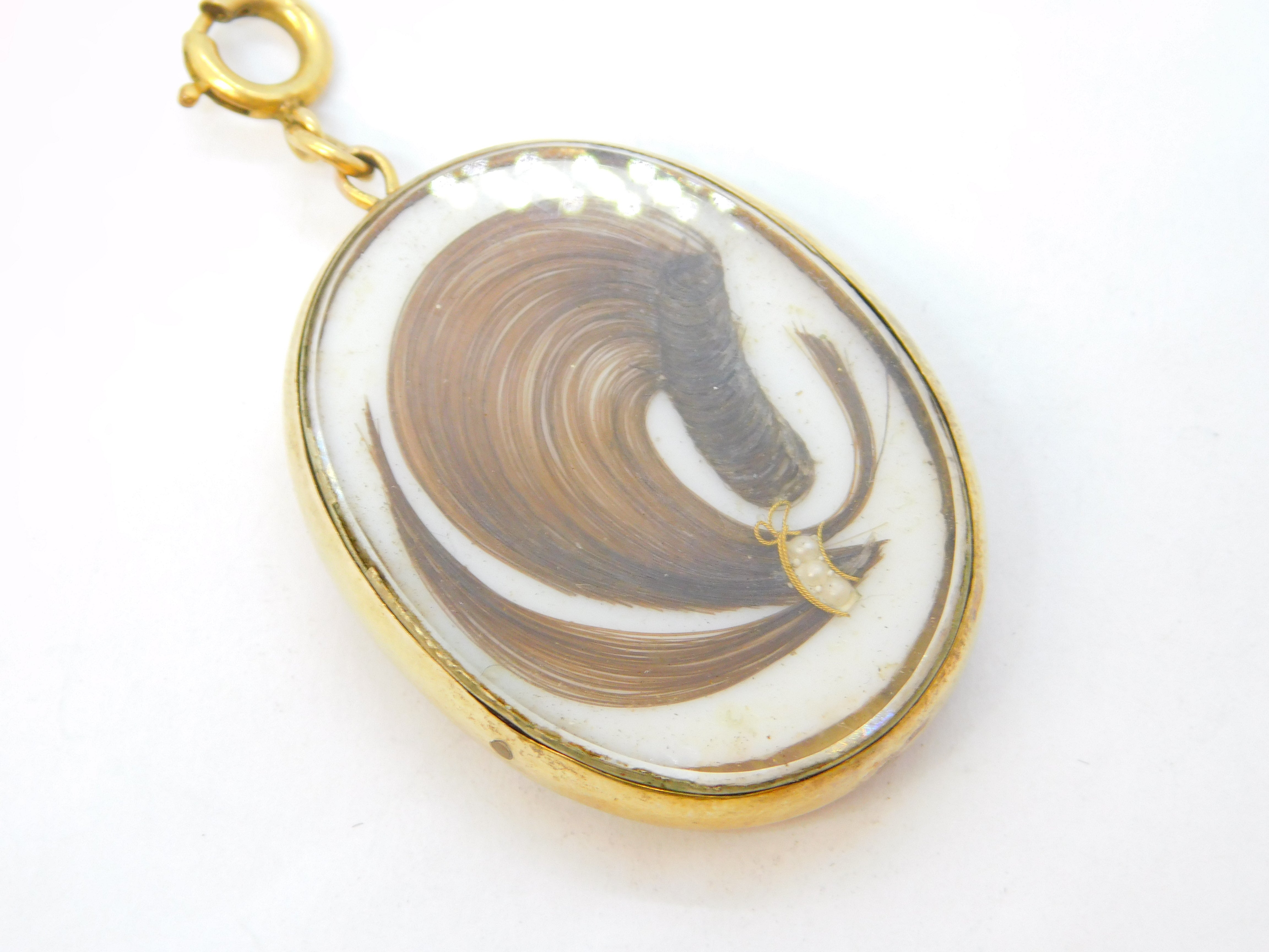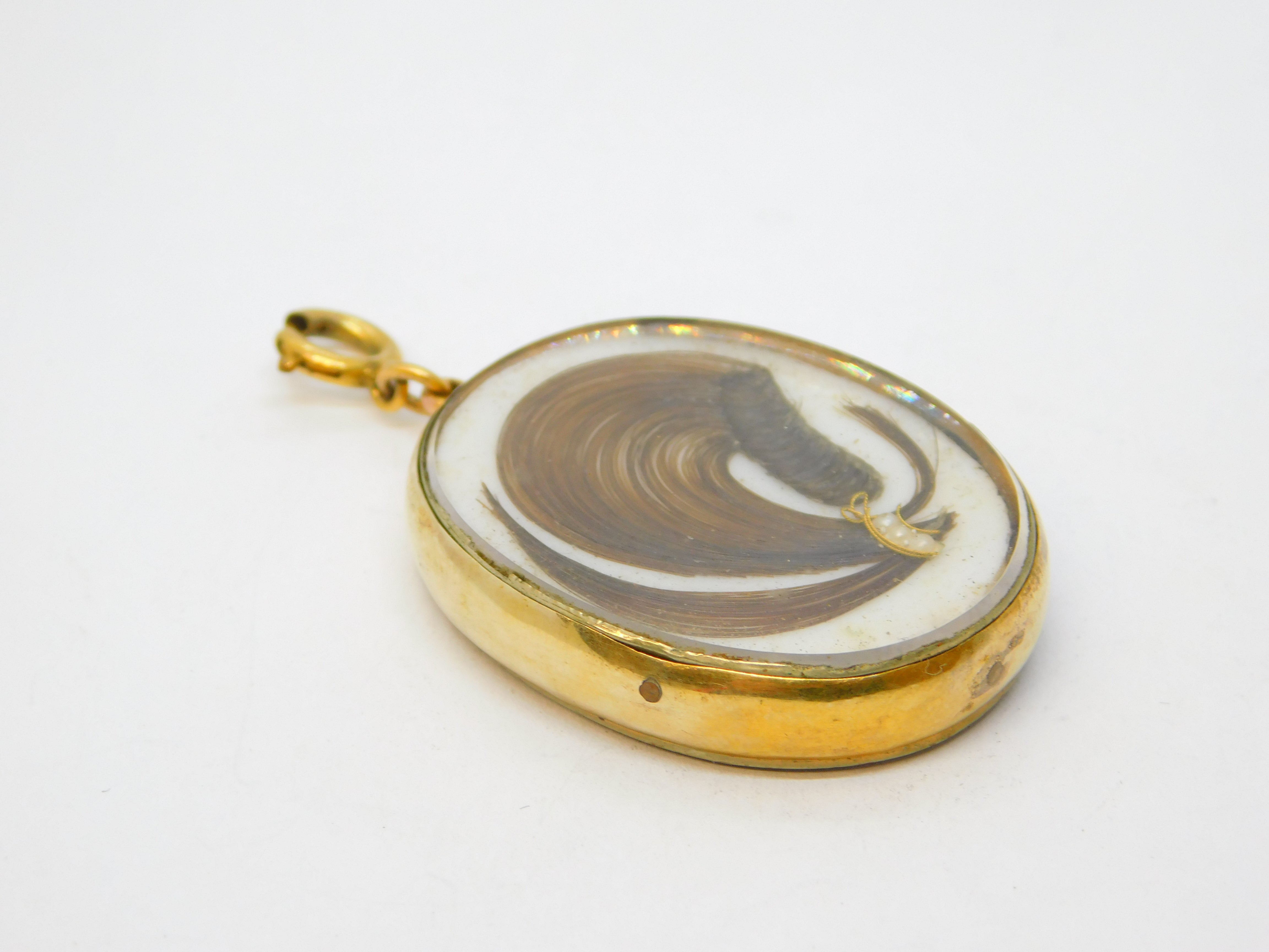 Victorian 9ct Gold Mounted Large Hair Set Portrait Mourning Pendant Antique c1880