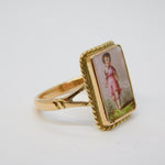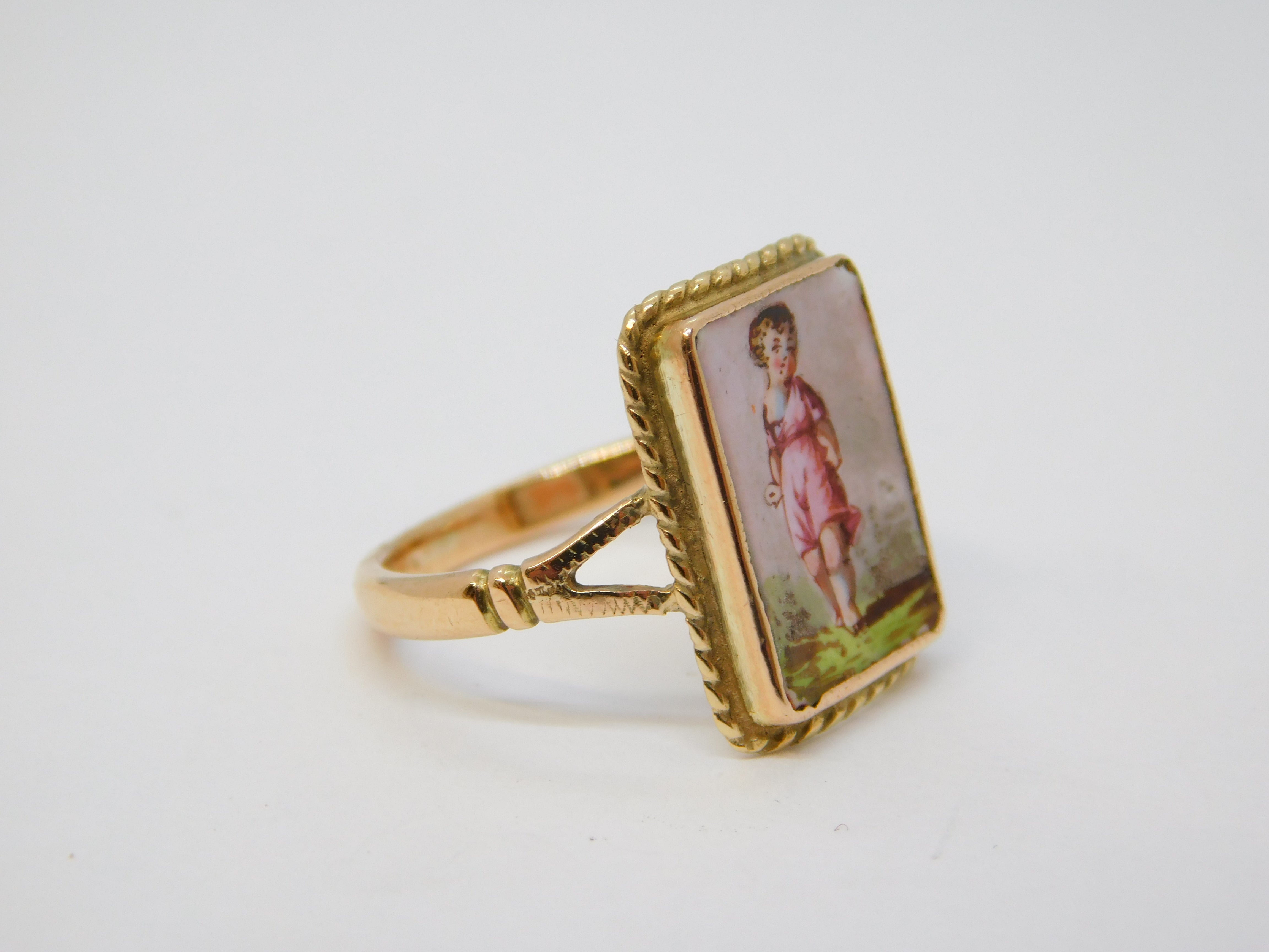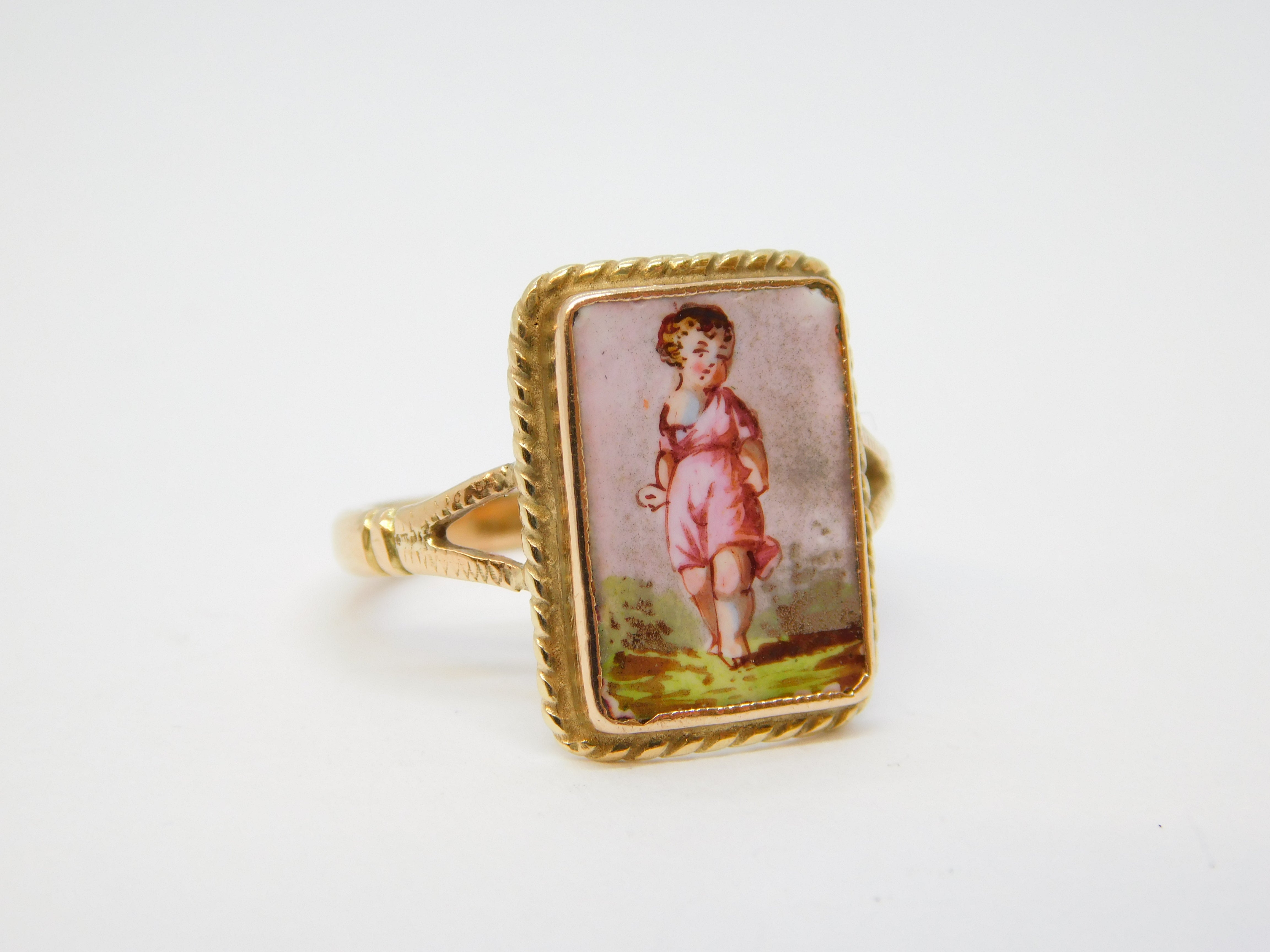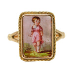 Details: A fantastic and wonderfully designed antique Victorian 9ct rose gold dress ring set with section of wonderful colourful enamel cherub hallmarked to the interior c1890. This is a wonderful item that would make a perfect gift or addition to any collection. We are more than happy to provide XRF reports for items upon request.