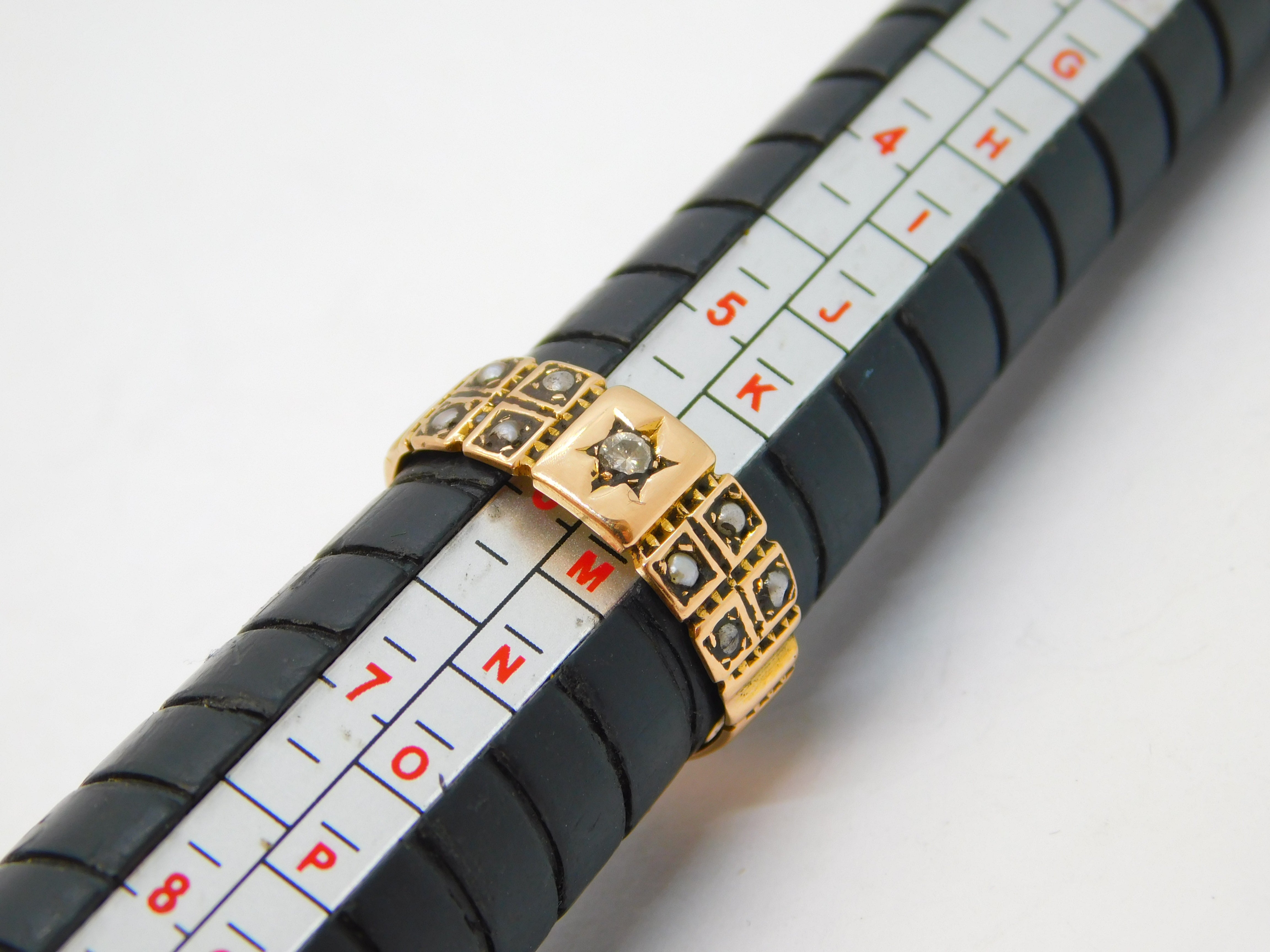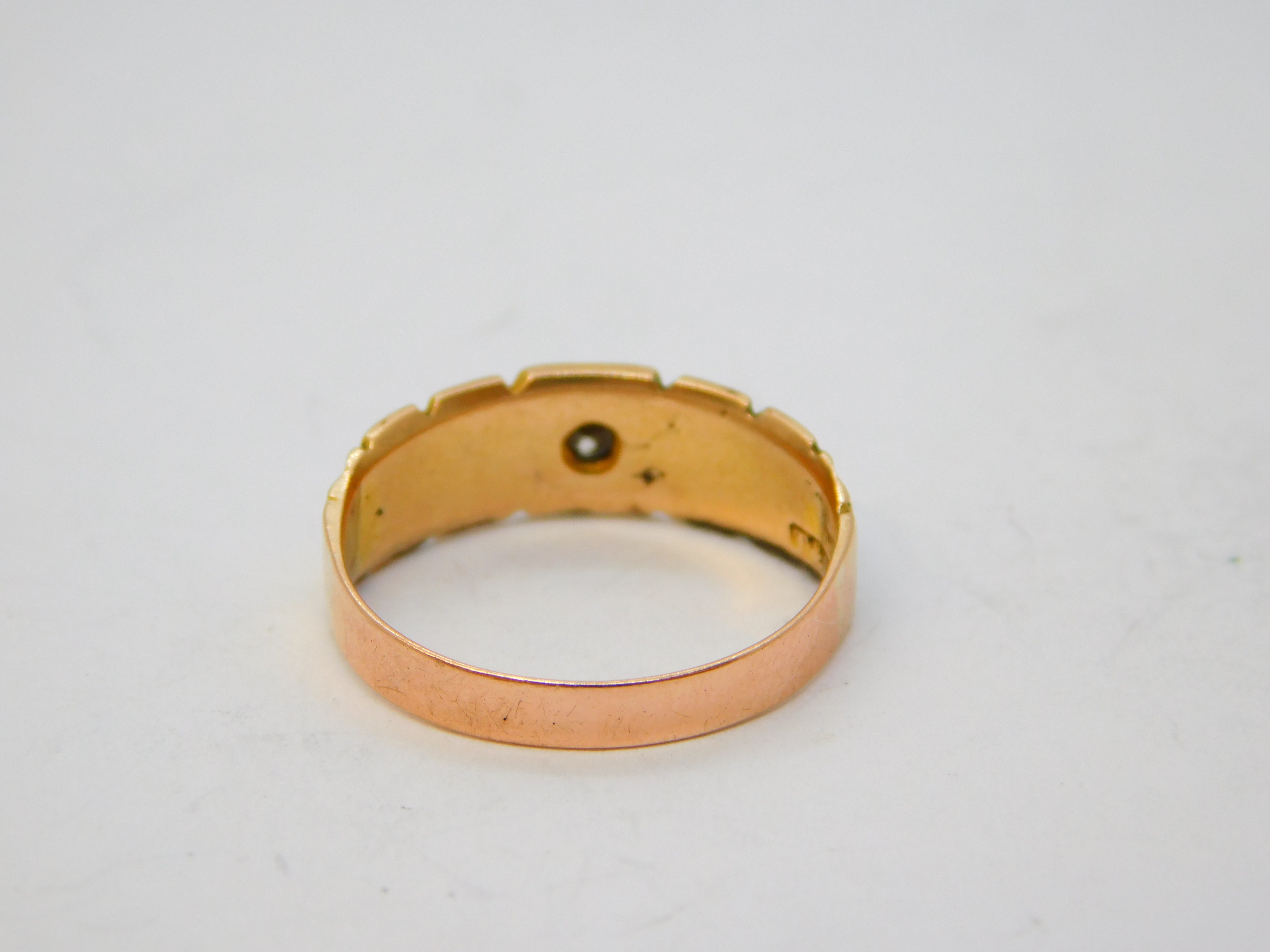 Details: A fantastic and wonderfully designed antique Victorian 9ct rose gold mourning ring set with central diamond flanked by seed pearls c1880, the gold has been XRF tested. This is a wonderful item that would make a perfect gift or addition to any collection. We are more than happy to provide XRF reports for items upon request.