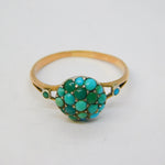 Victorian 9ct Rose Gold Pave-Set Turquoise Shield Dress Ring Antique c1880