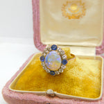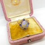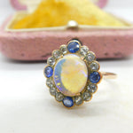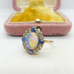 Victorian 9ct Rose Gold, Water Opal & Two-Tone Sapphire Dress Ring Antique c1850