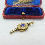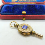 Victorian 9ct Yellow Gold Back & Watch Key Locket Blue Enamel Antique c1880
